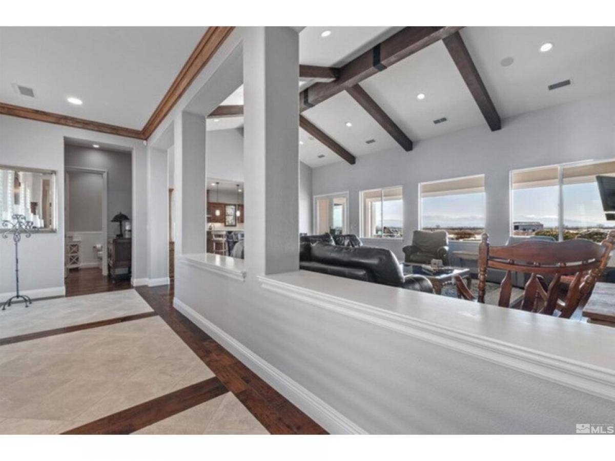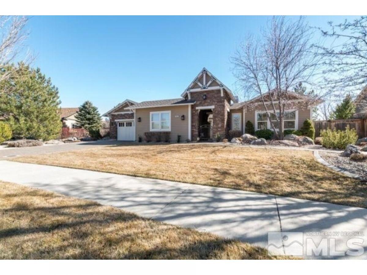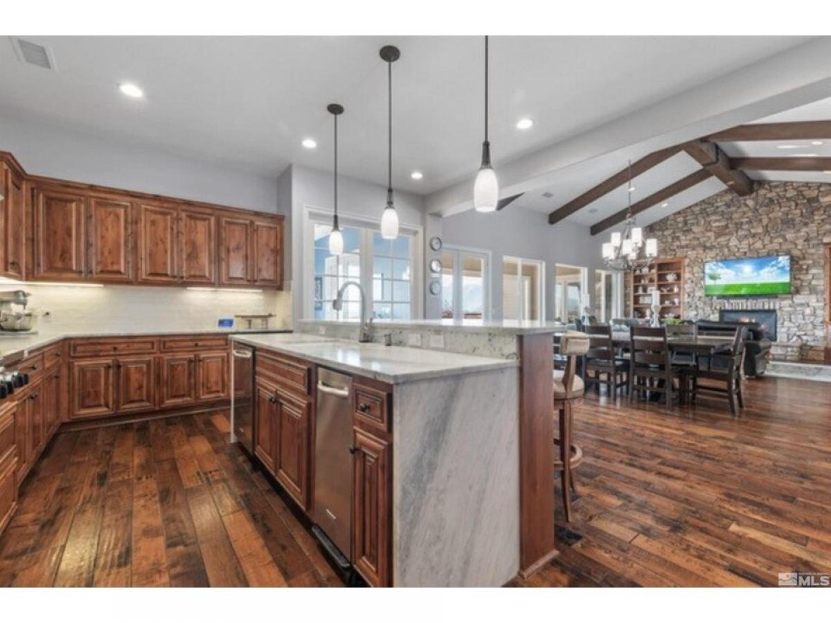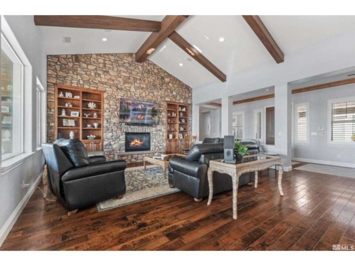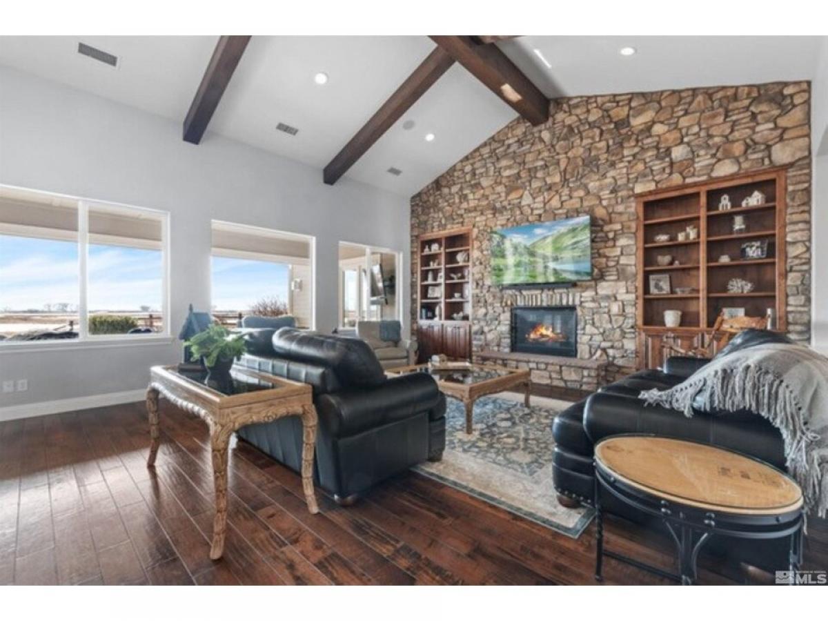 Nestled in the charming and picturesque town of Genoa, this elegant single-level home offers a perfect blend of comfort, style and breathtaking natural beauty. Situated on a .50 acre lot on the 4th fairway of Genoa Lakes Ranch Course, this home is full of character and boasts sweeping, unobstructed views of Jobs Peak and the Sierra Nevadas. This former model home features an open-concept living area with soaring wood beamed ceilings and an exposed rock wall with a fireplace that serves as a statement piece.