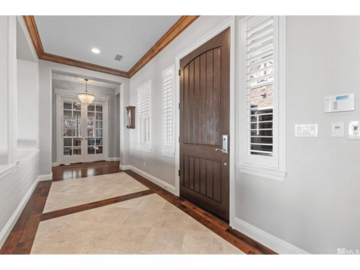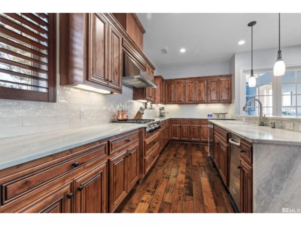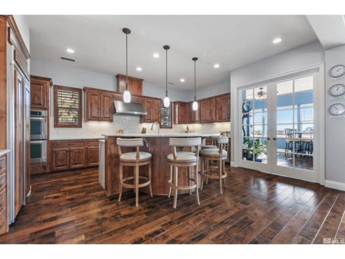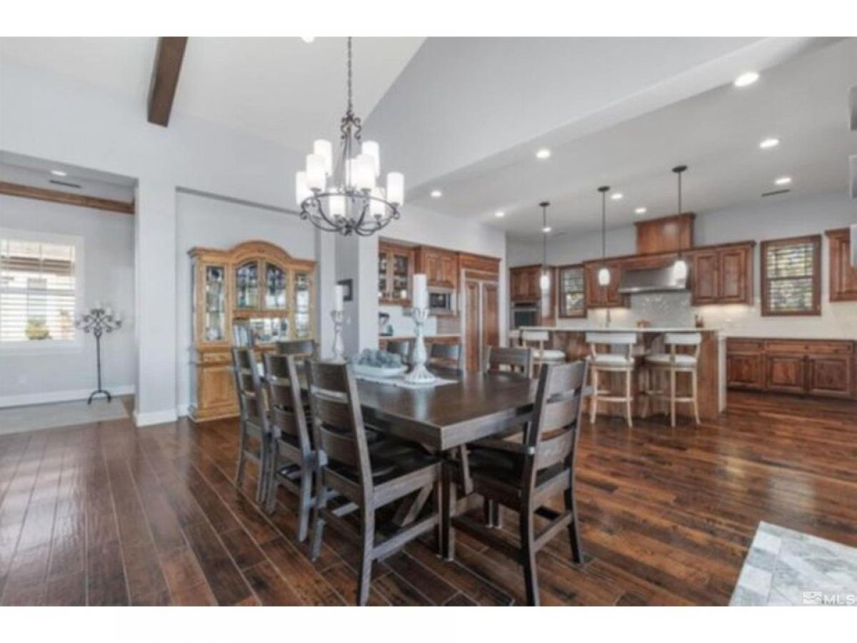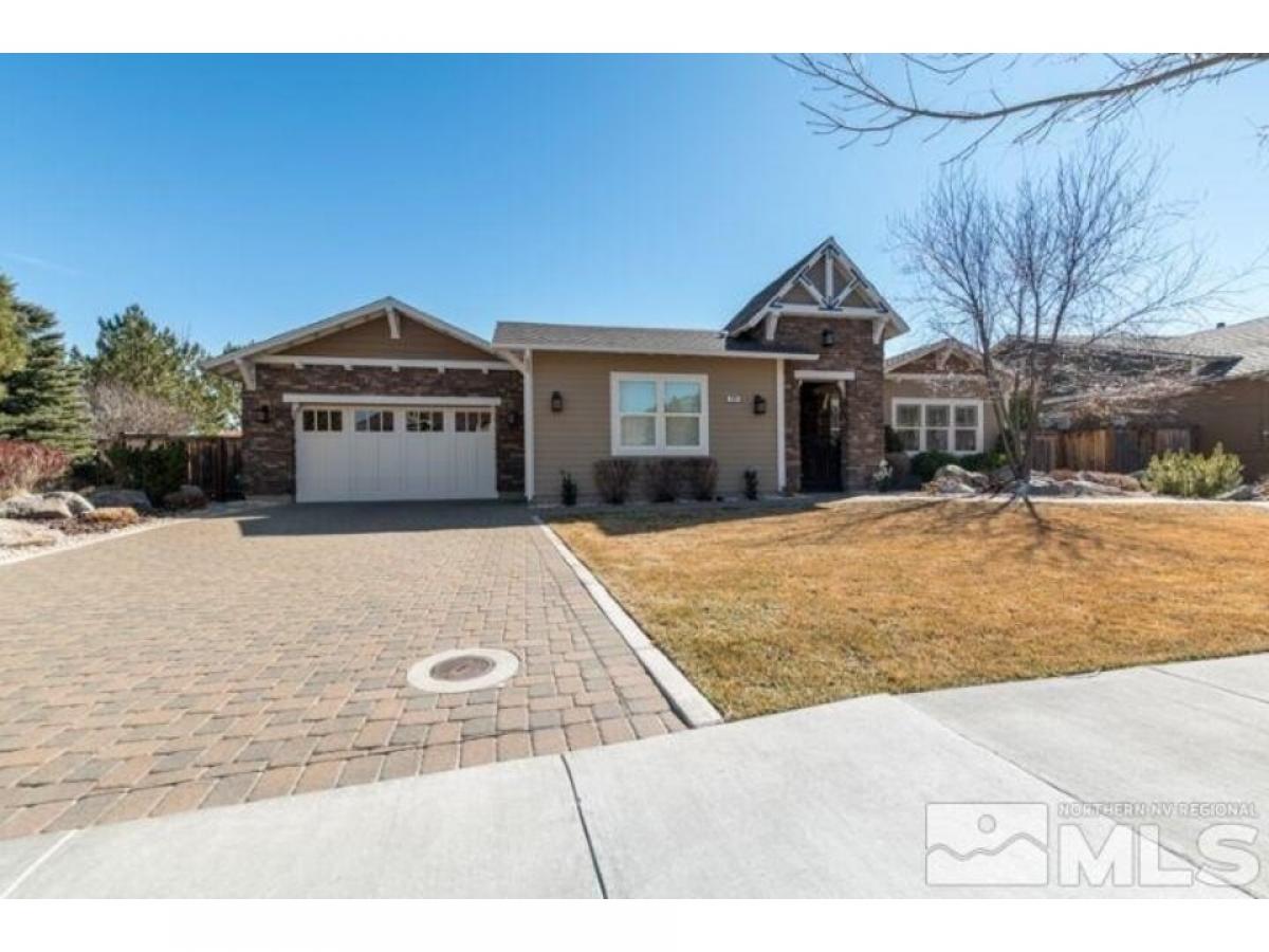 Nestled in the charming and picturesque town of Genoa, this elegant single-level home offers a perfect blend of comfort, style and breathtaking natural beauty. Situated on a .50 acre lot on the 4th fairway of Genoa Lakes Ranch Course, this home is full of character and boasts sweeping, unobstructed views of Jobs Peak and the Sierra Nevadas. This former model home features an open-concept living area with soaring wood beamed ceilings and an exposed rock wall with a fireplace that serves as a statement piece.