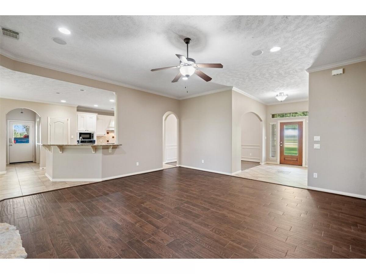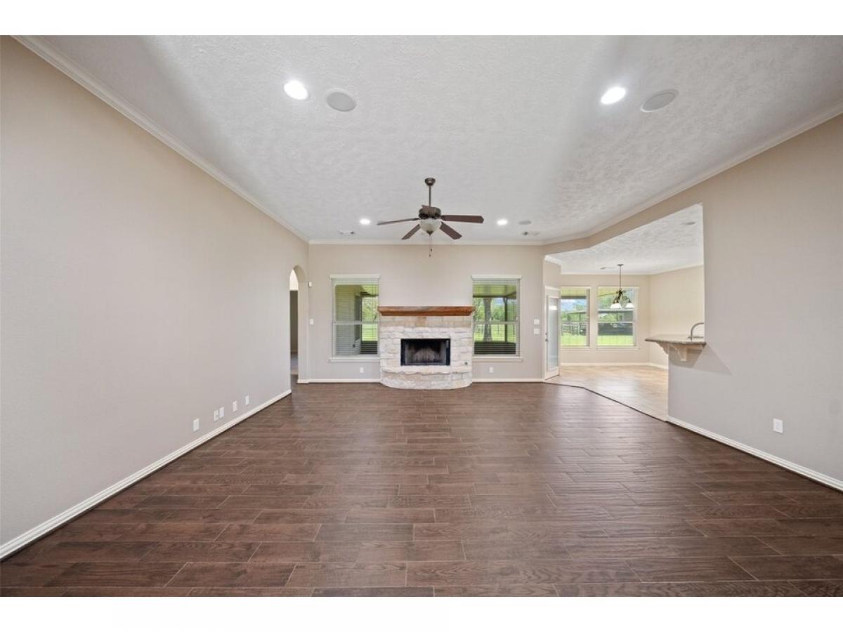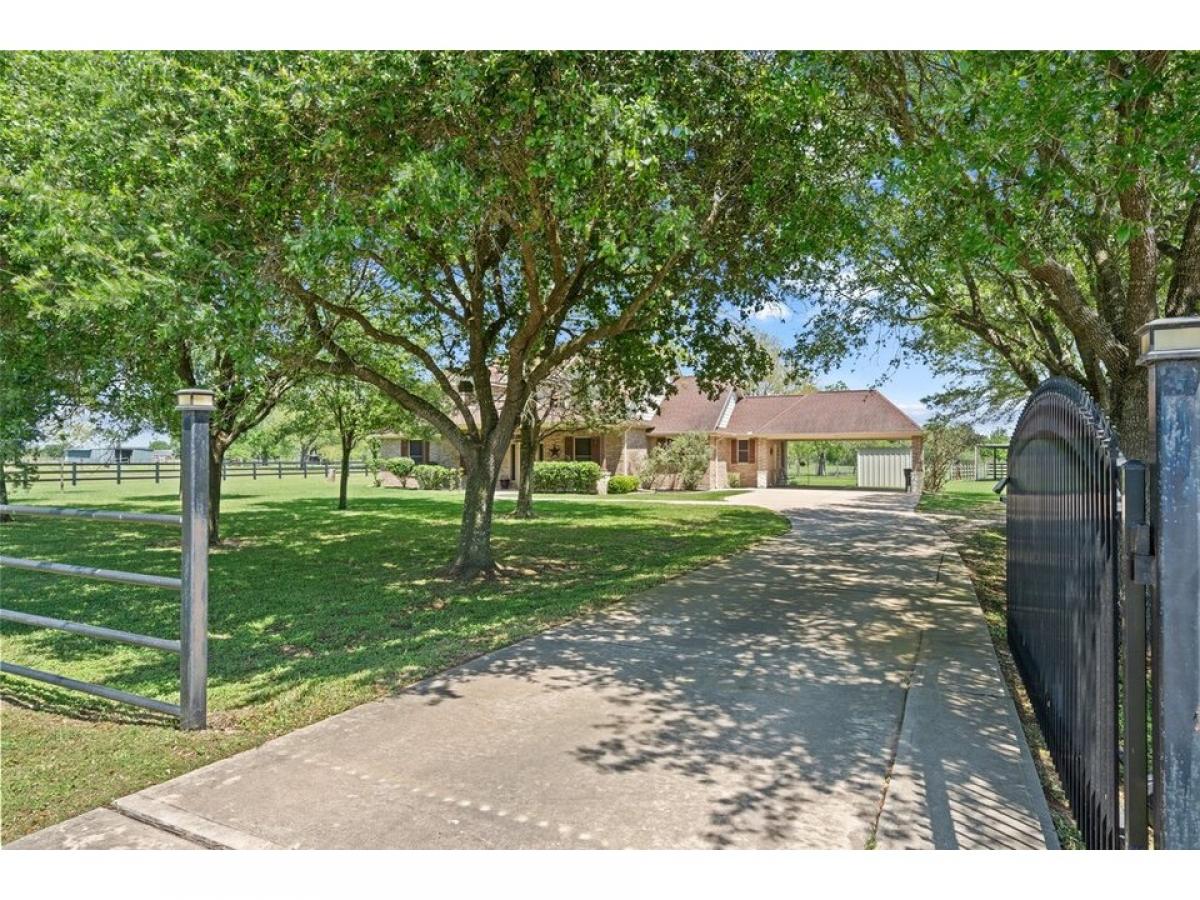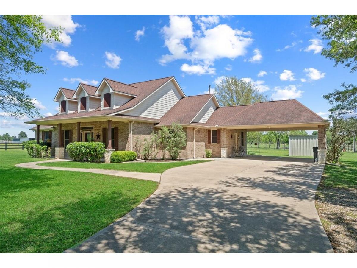 Welcome to your private country haven in Hockley! This beautifully maintained 3-bedroom custom built home with dedicated study sits on 5.34 fenced acres dotted with majestic oak trees. Inside, enjoy crown molding, recessed lighting, wood-look tile, granite counters, and an Austin stone gas fireplace. The spacious kitchen features tile backsplash, breakfast nook, and bar seating for casual meals or entertaining. Unwind on the screened-in patio with epoxy flooring, or retreat to the barn with concrete flooring, tack room, wash rack, and space for 4 stalls. A 22kW Generac generator powers the home and well. Property includes two 24x48 overhangs, electric gate with solar panel, water softener, sprinkler system, carport, and more. A rare blend of comfort, function, and stylemdash;ideal for equestrian use or serene country living.