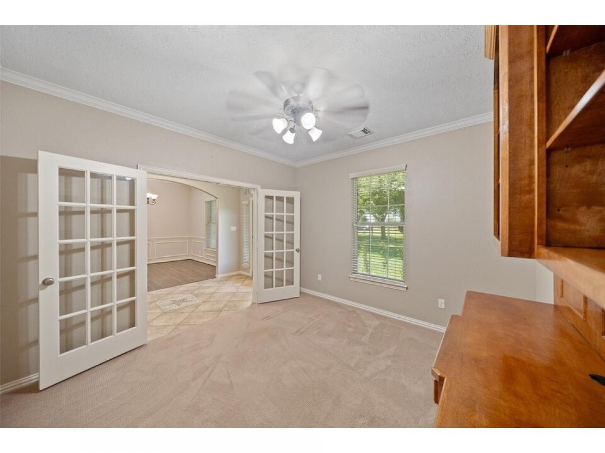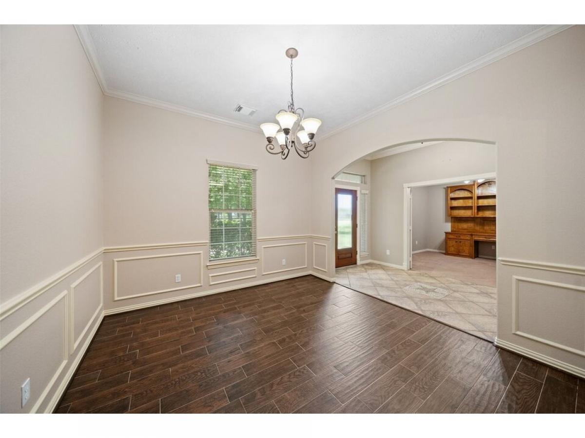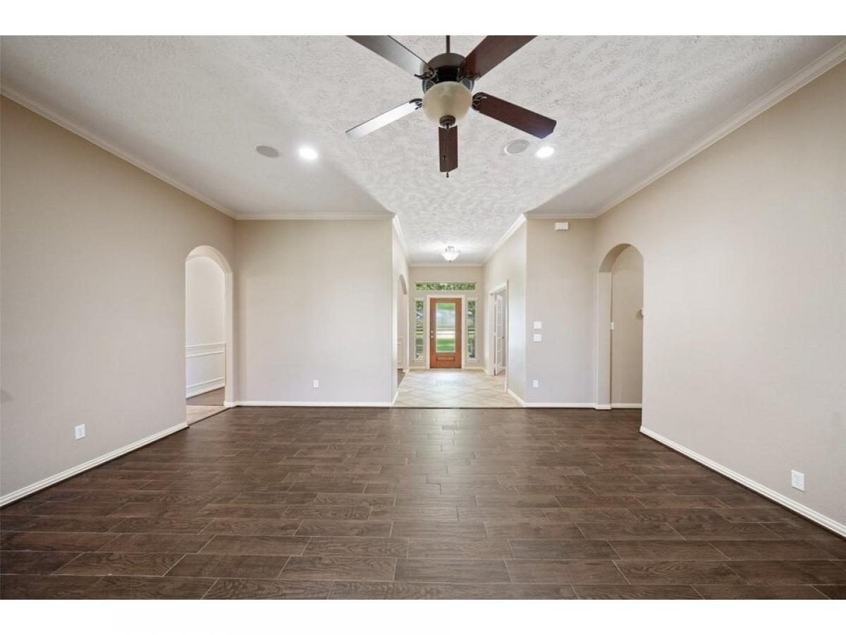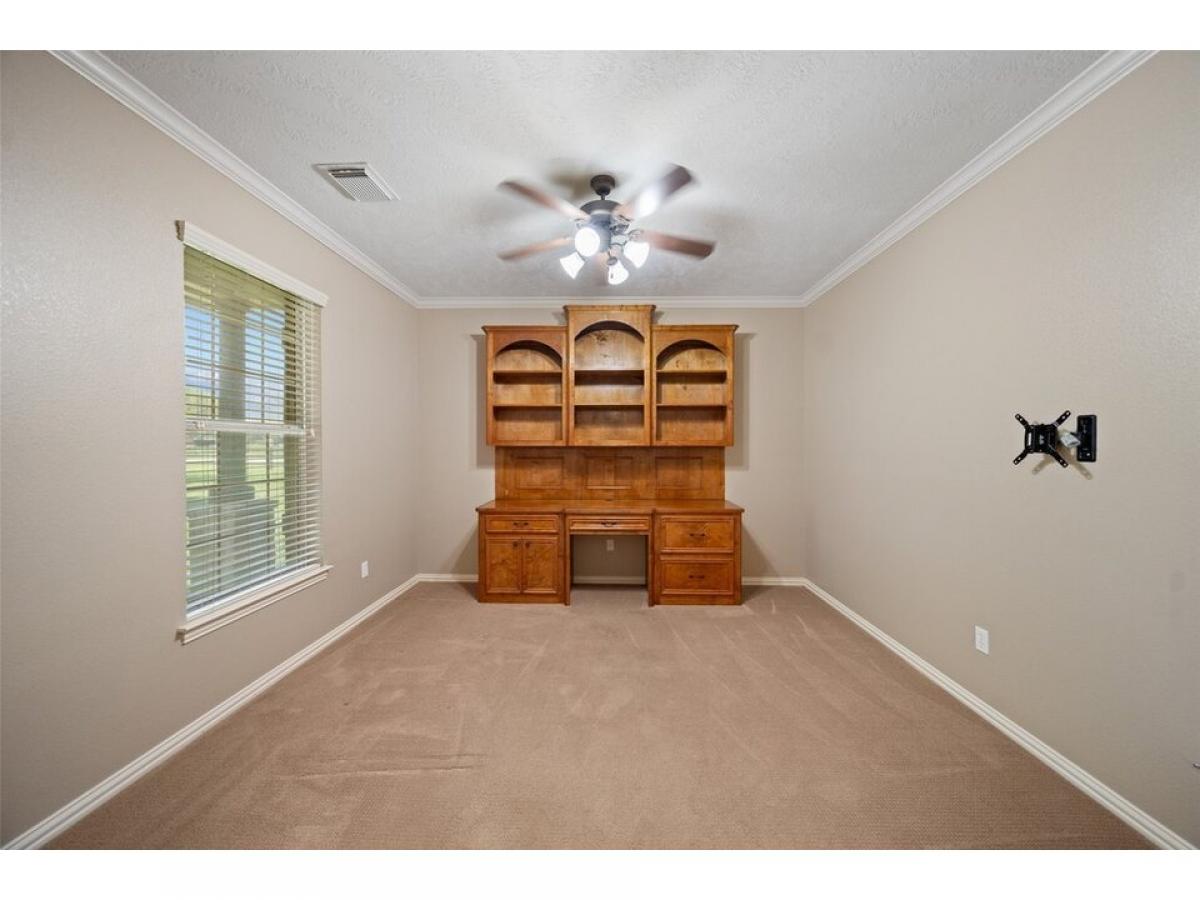 Welcome to your private country haven in Hockley! This beautifully maintained 3-bedroom custom built home with dedicated study sits on 5.34 fenced acres dotted with majestic oak trees. Inside, enjoy crown molding, recessed lighting, wood-look tile, granite counters, and an Austin stone gas fireplace. The spacious kitchen features tile backsplash, breakfast nook, and bar seating for casual meals or entertaining. Unwind on the screened-in patio with epoxy flooring, or retreat to the barn with concrete flooring, tack room, wash rack, and space for 4 stalls. A 22kW Generac generator powers the home and well. Property includes two 24x48 overhangs, electric gate with solar panel, water softener, sprinkler system, carport, and more. A rare blend of comfort, function, and stylemdash;ideal for equestrian use or serene country living.
