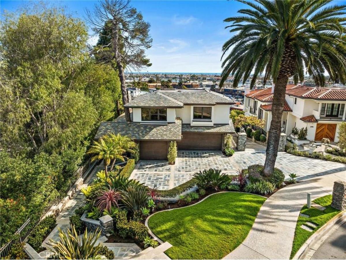 Nestled on a coveted corner lot, this exceptional estate sits beside Cliff Drive Park on one side and just steps away from a lush greenbelt on the other, creating a unique blend of privacy, beauty, and convenience. With sweeping views of the ocean, harbor, and Catalina Island, this property is a true masterpiece of coastal living. Spanning over 5,000 square feet, this five-bedroom (optional sixth) home, with five-and-a-half baths, offers a seamless fusion of luxury, design, and natural surroundings. The entry is framed by a serene walkway with water features leading to double doors. Inside, the open foyer with soaring ceilings, a central fireplace, and expansive Marvin windows create a bright, welcoming atmosphere. Wood and stone flooring and custom millwork add a refined touch, while sunken common areas enhance the sense of space. On the main level, you'll find two spacious en suite bedrooms, a formal living room, a wine room, and an open-concept dining area that flows into a gourmet kitchen and family room. The kitchen features Thermador appliances, a 13-foot Bistro-style island, quartz countertops, and custom cabinetry. Glass doors open to a covered terrace, offering sweeping harbor views. The private wing is home to the primary suite, which includes a fireplace, private balcony, a large walk-in closet, and a spa-like bath. On the same level, a media room, library, office, two additional en suite bedrooms with built-in study areas, and an upstairs family room complete the living spaces. Outside, the backyard is an entertainer's dream, featuring a saltwater pool, built-in BBQ, and plenty of space for al fresco dining, all framed by breathtaking coastal views. Other highlights include a Vantage lighting system, a laundry room, and a sweeping driveway leading to a three-car garage, all set amidst beautifully manicured landscaping. Located just minutes from shopping, dining, and the Balboa Peninsula, this home offers the perfect combination of privacy, luxury, and convenience. 3/8/2025 1:00PM - 4:30PM PST 3/9/2025 1:00PM - 4:30PM PDT