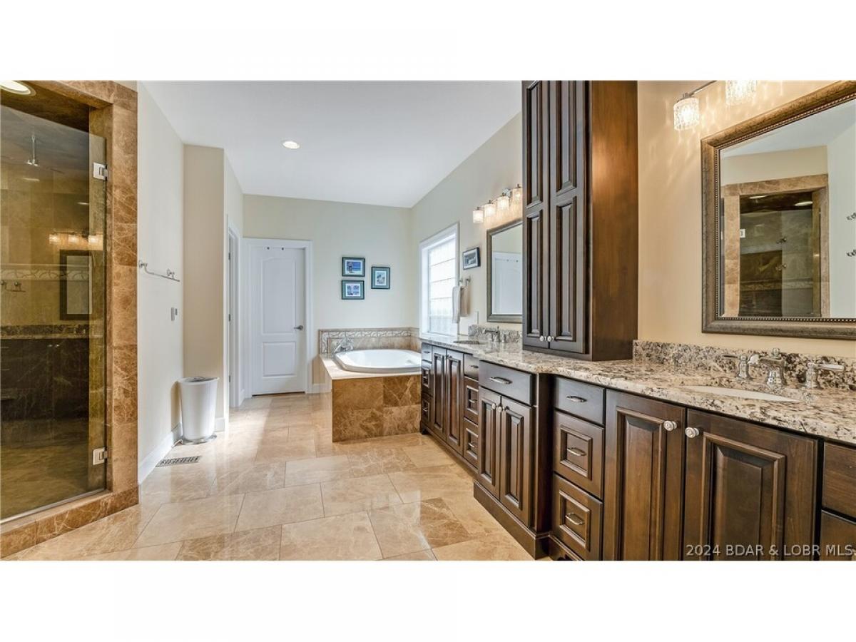 Welcome to your private lakefront retreat! This luxury estate offers 5 spacious bedrooms and 5 baths with a quiet side and a fun side for all your entertaining needs. Gourmet kitchen has gas cooktop, double oven, and hidden pantry. Spa-like main suite has expansive vanity space, jetted tub and walk-in shower. So many features to delight your guests. Indulge your senses in the wine cellar. Play a game of pool or entertain guests at the well-equipped bar. Experience the ultimate spa oasis - relax in the sauna, soak in the hot tub, or dive into your private saltwater pool. Finish out your day with a meal cooked in the outdoor kitchen, sit by the stone fireplace, or refresh in the outdoor shower. Drive your cart to your dock located in a no-wake cove. Car enthusiasts will delight in the 2-3 car garages and underground storage, providing ample space for vehicles and hobbies. This lakefront gem combines luxury, comfort, and entertainment. Don't miss the chance to own your slice of paradise! Rentals are allowed