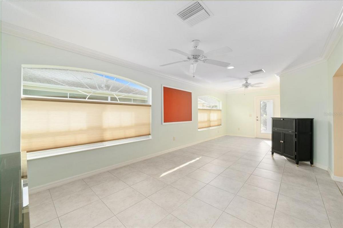 Under contract-accepting backup offers. One or more photo(s) has been virtually staged. Time to Get This Home Sold! $30k Price Improvement! – Location, Location, Location - Highly Desirable Village of Sanibel! BOND PAID – Iris Model with Golf Cart Garage - A Great Home Starts with Road Appeal. A beautifully expanded paver driveway, walkway and a patio entertainment area with power awning! There is even a power screen on the main garage door. Step inside on the 24 neutral tile laid on the diagonal. The Iris features a front hall closet as you enter this open concept home. You have a dining area to the right and large main living area with a ceiling fan as you proceed. Kitchen features stainless Bosch dishwasher, microwave and newer GE refrigerator, solid surface countertops with breakfast bar, and cabinets with pullout shelves. The laundry is just off the kitchen and has storage cabinets, plus a built-in planning desk. There is also a dinette area for added eating space. The lanai floor has raised, patio doors removed, and large permanent windows added to give you a true spacious Florida room! The primary bedroom is large in an Iris with a coved ceiling ensuite bath featuring a Roman shower, dual sinks with separate vanities and a large linen closet. The oversized walk-in closet has custom organizer shelving including a jewelry drawer which will impress you! Back to front of the home, you’ll find two bedrooms with closets. One of the bedrooms is set up as a hobby room with added storage cabinets, desk space, laminate flooring, ceiling fan with a light kit and a Murphy bed. The other bedroom is carpeted and has a ceiling fan. The garage with plenty of space for your golf cart has a painted floor, Nova Triple Filter System plus a real bonus with MAGIC STAIRS that allow you to safely access your added storage above the garage. Silk Tree Terrace is minutes to The Bonifay Championship 27 Hole Golf course plus its fabulous restaurant. In addition, you are a short cart ride to the Walmart Neighborhood Store, Colony Plaza with Publix with its many shops, restaurants, medical facilities, and gas station. You are also close to Lowes, Target, Home Depot, Starbucks and many other establishments with a ten-minute car ride if you choose. Drive up this street of quality Designer homes and you will want to make this your home!