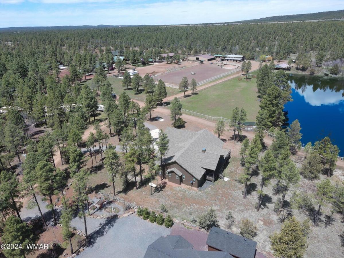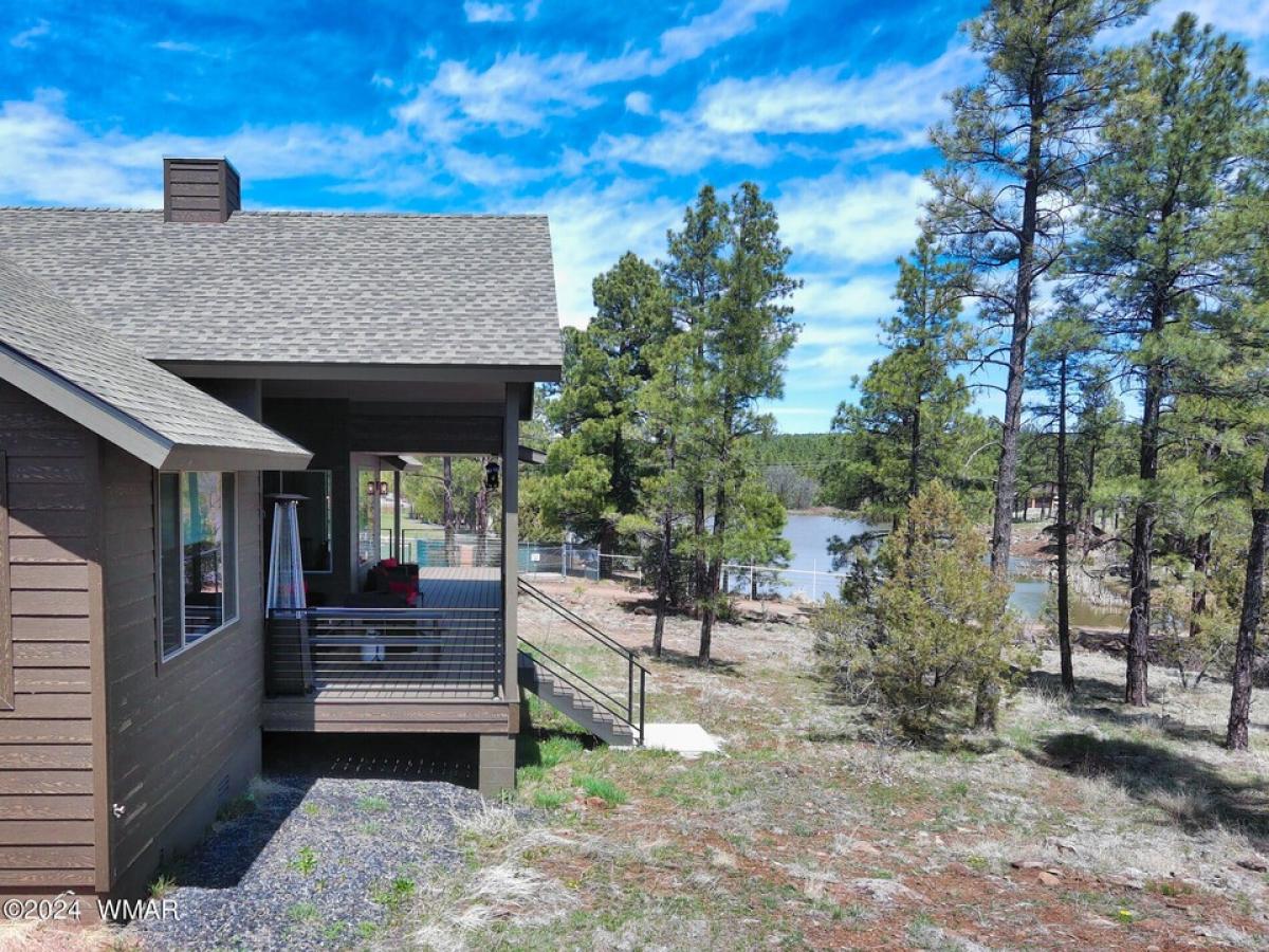 This home has it all! In the heart of Lakeside comes this beautiful property to market with an amazing WATERFRONT lake view and wildlife to enjoy. Built in 2022 with 2250 sq. ft., 1100 sq. ft. 3 car garage on 1.06 acres. Three master suites with en-suite baths, plus additional powder room. Stunning kitchen boasts stainless steel appliances, Alder cabinetry and Leather marble countertops in kitchen and entertainment bar. This lovely home comes completely turn-key furnished. City sewer, NO HOA, horses ok. RV hookup with water, electric & sewer. Porter Mountain Stables is on the other side of the lake for you and/or your guests to enjoy all the fun that come with horses or fishing! Shared well with great water pressure and City water right across the street. (continued) Floor to ceiling stone gas fireplace and TREX decking on front and rear decks. Covered back deck runs the length of the cabin to enjoy the forest and wildlife. Oversized 3 car garage will hold your large truck and/or toys comfortably. Don't miss the opportunity to view this stunning property.