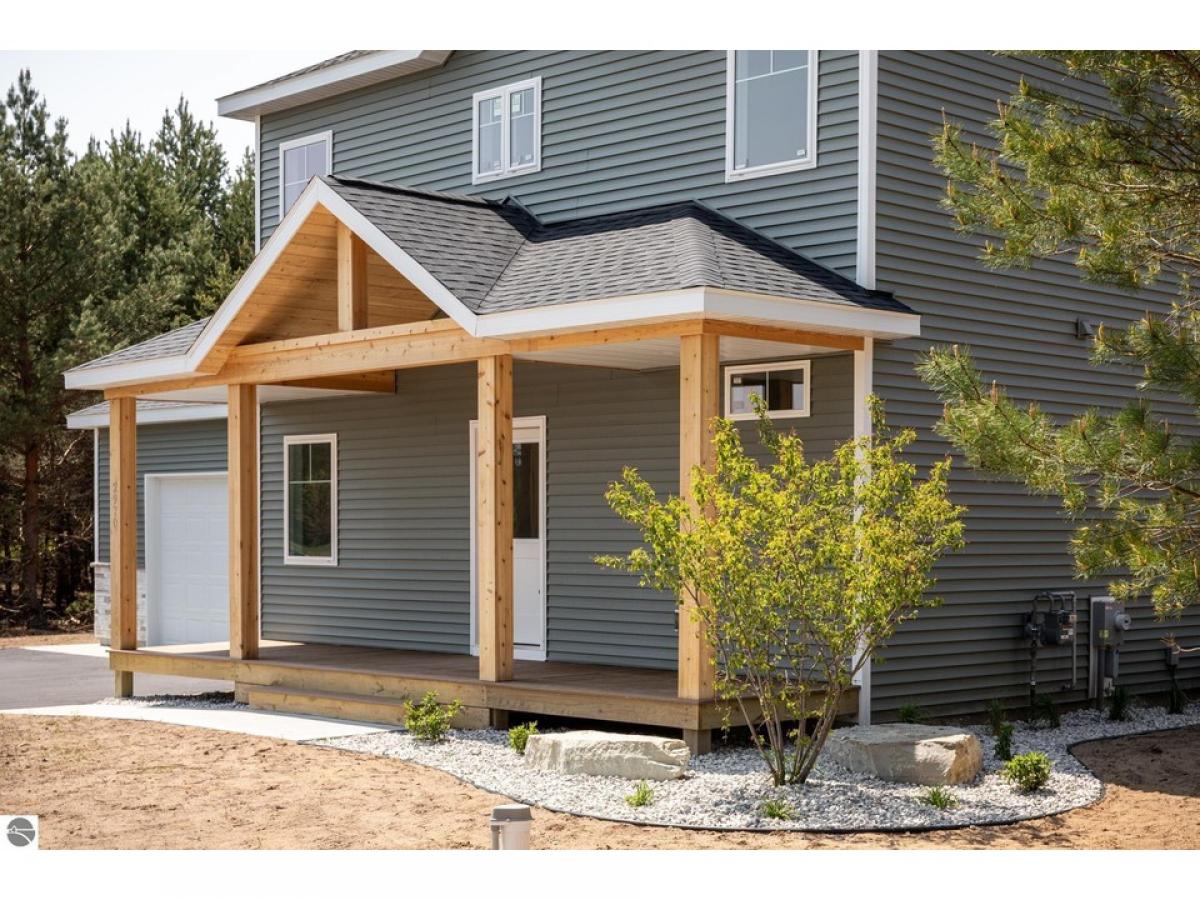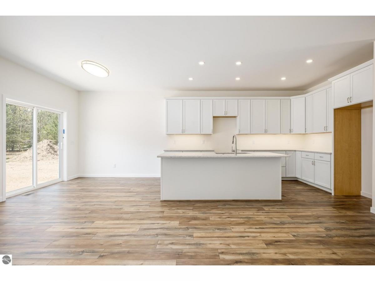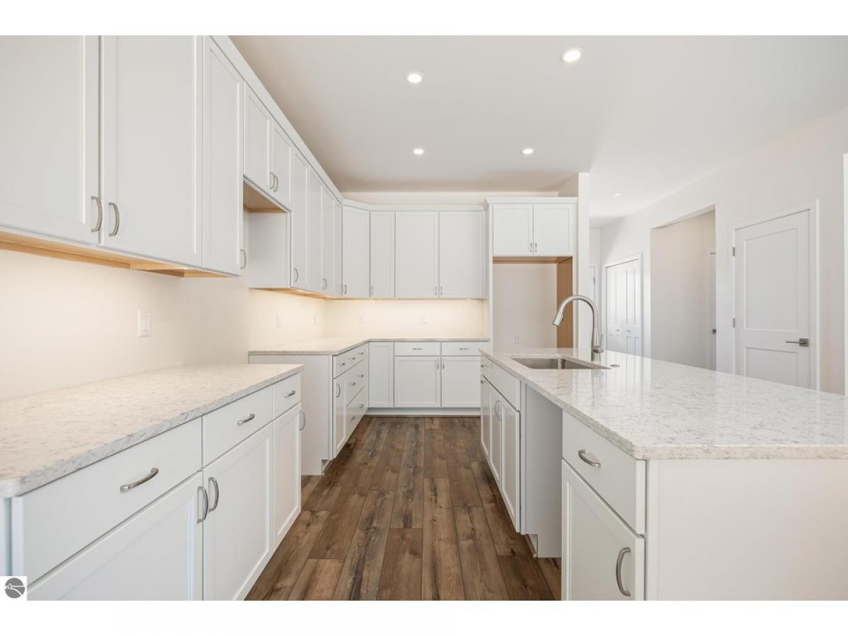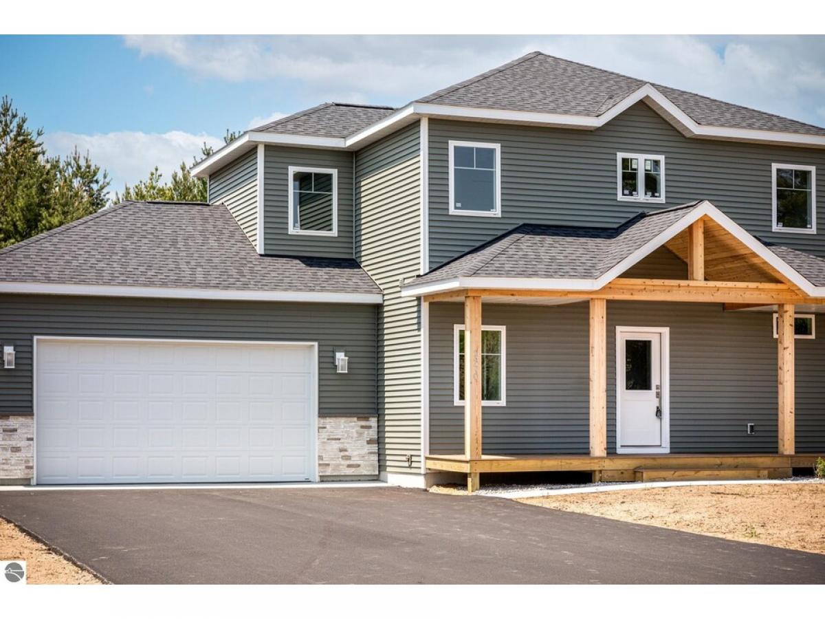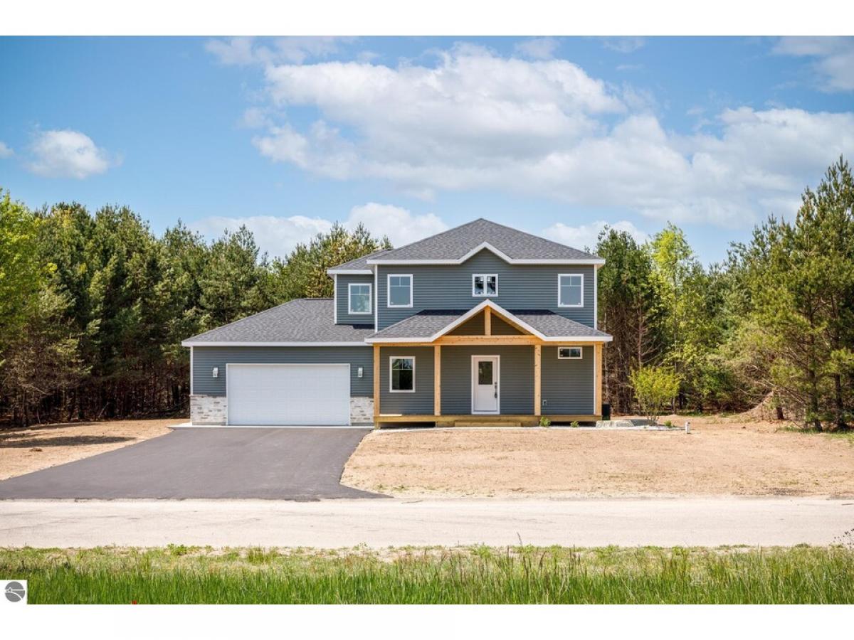 Welcome home to this exquisite, brand new 3 bedroom 2.5 bathroom build nestled on a .69-acre wooded lot, just a short 11-mile drive from the heart of downtown Traverse City. Step inside and be greeted by the spacious first floor, featuring a chef's dream kitchen boasting a large island, awaiting the delivery of high-end stainless steel appliances. With quartz countertops, abundant cabinetry, and under-mount cabinet lighting, this kitchen is as stylish as it is functional. The open concept floor plan floods the space with natural light, creating an inviting atmosphere for entertaining or simply enjoying everyday life. Two walk-in pantries offer ample storage, while a secluded half bathroom and built-in mudroom cubbies provide convenience and organization. Ascending to the second floor, you'll find two oversized bedrooms, each offering comfort and tranquility. A large full-size bathroom, complete with quartz countertops, serves these bedrooms, along with a laundry room for added convenience. The stately primary bedroom awaits, boasting an attached ensuite with dual vanity quartz countertops, a tiled shower, and a spacious walk-in closet, providing a luxurious retreat at the end of the day. While the basement remains unfinished, the potential is endless with an egress window ready to accommodate a fourth bedroom and rough plumbing in place for a third bathroom. Abundant storage ensures there's space for everything, while a 24x24 garage provides shelter for vehicles and belongings. Outside, the possibilities continue with the association allowing outbuildings and privacy fences, allowing you to customize your outdoor space to suit your needs and preferences. With its move-in ready status and prime location, this home is ready to welcome its new owner. Don't miss your chance to make it yours and start enjoying the unparalleled beauty and convenience of Traverse City living.