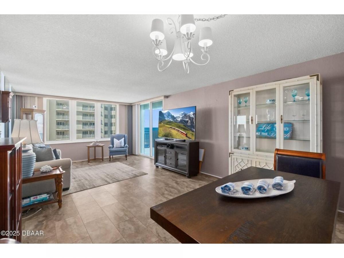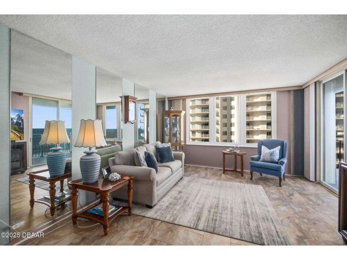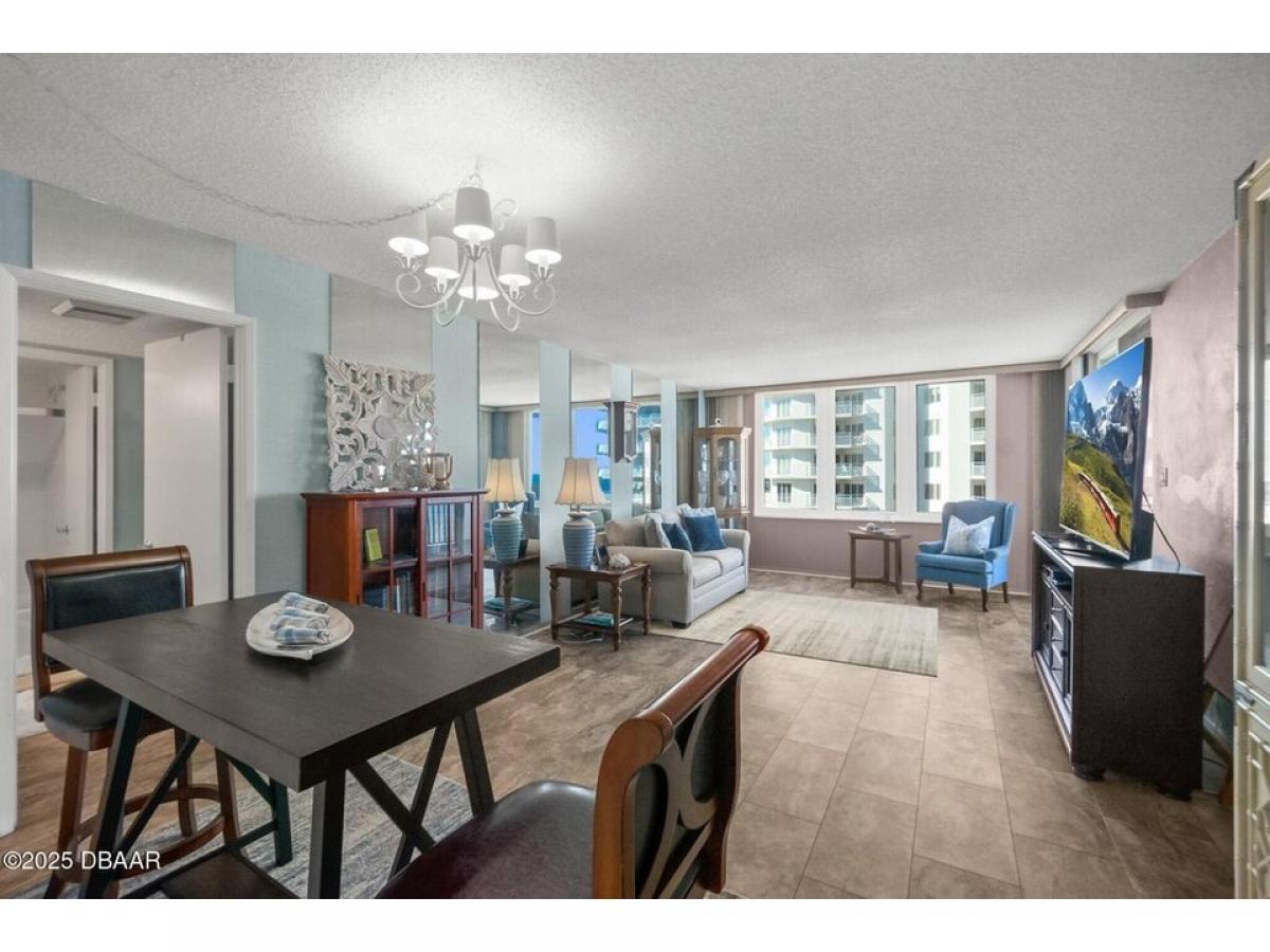 WELCOME TO YOUR COASTAL PARADISE RETREAT AND EMBRACE AN EASY-BREEZE LIFESTYLE! OCEAN FIVE HAS UNDERGONE A STUNNING RENOVATION, MAKING THIS THE IDEAL OPPORTUNITY TO ACQUIRE YOUR BEACHFRONT ESCAPE. THIS EXQUISITE 2-BEDROOM SPLIT FLOOR PLAN OFFERS CAPTIVATING OCEAN AND RIVER VIEWS. THE KITCHEN FEATURES RAISED PANEL CABINETS IN A NEUTRAL BEIGE TONE, BEAUTIFULLY COMPLEMENTING THE STAINLESS-STEEL APPLIANCES (brand new refrigerator) AND THE LIVING ROOM/DINING ROOM IS FILLED WITH NATURAL LIGHT AND BREATHTAKING VIEWS IN EVERY DIRECTION. DELIVERED FURNISHED, START A NEW CHAPTER AND EMBRACE A BEACH LIFESTYLE. ELECTRIC HURRICANE SHUTTERS AND NICELY UPDATED FLOORING IN THE LIVING ROOM/DINING ROOM MAKES BEACHFRONT LIVING A BREEZE. THE TRUE HIGHLIGHT OF THIS CONDO IS ITS STUNNING CRISS-CROSS BALCONY, WHICH PROVIDES BREATHTAKING OCEAN VIEWS FROM THE 8TH FLOOR. EQUALLY INSPIRING ARE THE VIEWS OF THE RIVER TO THE WEST, MAKING THIS A TRULY REMARKABLE FEATURE. ENJOY THE PERKS OF A WONDERFUL BUILDING RESTORATION INCLUDING ALL NEW COMMON AREA WINDOWS, RESURFACED POOL, EXTERIOR RESTORATION, AND SO MUCH MORE. (to be completed soon). THE MOTTO IS, LIFE IS BETTER IN DAYTONA BEACH SHORES! Oceans Five offers some of the best amenities in the Shores: heated outdoor pool with large sun deck, BBQ station, Saunas, social room, Fitness Center, Library with sophisticated furnishings, Pool Table Lounge, Ample private storage, Underground Parking and DIRECT BEACH ENTRY! Pet friendly, 1 pet under 30 pounds. This home is in a sought-after location close to Publix, restaurants, shopping, minutes to Ponce Inlet Historic Lighthouse, just over an hour to Disney/Orlando and three-and-a-half hours to Miami.