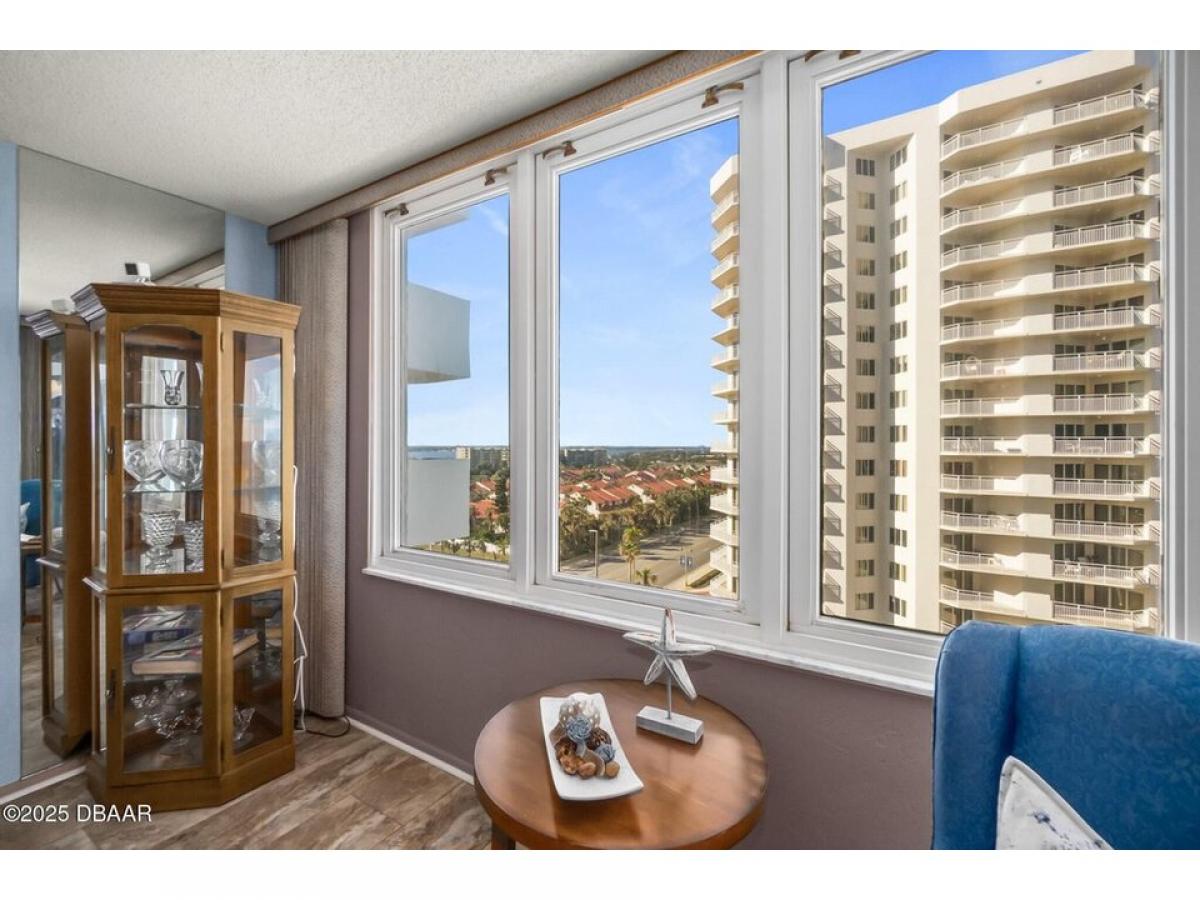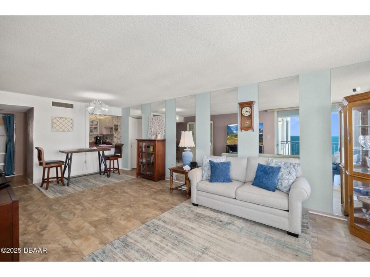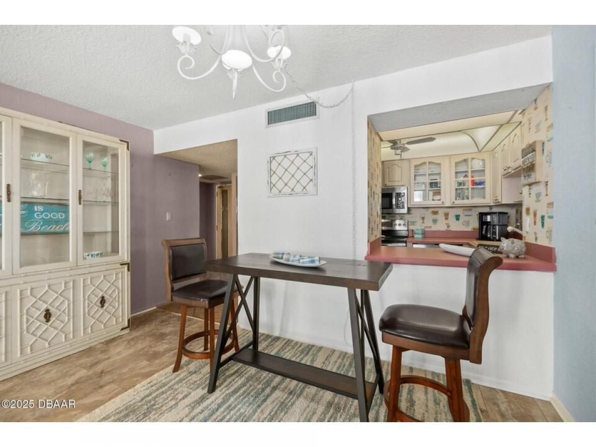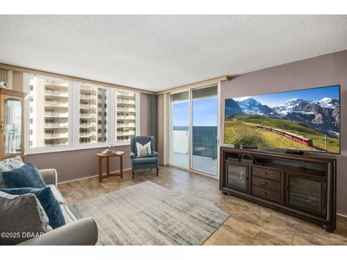 WELCOME TO YOUR COASTAL PARADISE RETREAT AND EMBRACE AN EASY-BREEZE LIFESTYLE! OCEAN FIVE HAS UNDERGONE A STUNNING RENOVATION, MAKING THIS THE IDEAL OPPORTUNITY TO ACQUIRE YOUR BEACHFRONT ESCAPE. THIS EXQUISITE 2-BEDROOM SPLIT FLOOR PLAN OFFERS CAPTIVATING OCEAN AND RIVER VIEWS. THE KITCHEN FEATURES RAISED PANEL CABINETS IN A NEUTRAL BEIGE TONE, BEAUTIFULLY COMPLEMENTING THE STAINLESS-STEEL APPLIANCES (brand new refrigerator) AND THE LIVING ROOM/DINING ROOM IS FILLED WITH NATURAL LIGHT AND BREATHTAKING VIEWS IN EVERY DIRECTION. DELIVERED FURNISHED, START A NEW CHAPTER AND EMBRACE A BEACH LIFESTYLE. ELECTRIC HURRICANE SHUTTERS AND NICELY UPDATED FLOORING IN THE LIVING ROOM/DINING ROOM MAKES BEACHFRONT LIVING A BREEZE. THE TRUE HIGHLIGHT OF THIS CONDO IS ITS STUNNING CRISS-CROSS BALCONY, WHICH PROVIDES BREATHTAKING OCEAN VIEWS FROM THE 8TH FLOOR. EQUALLY INSPIRING ARE THE VIEWS OF THE RIVER TO THE WEST, MAKING THIS A TRULY REMARKABLE FEATURE. ENJOY THE PERKS OF A WONDERFUL BUILDING RESTORATION INCLUDING ALL NEW COMMON AREA WINDOWS, RESURFACED POOL, EXTERIOR RESTORATION, AND SO MUCH MORE. (to be completed soon). THE MOTTO IS, LIFE IS BETTER IN DAYTONA BEACH SHORES! Oceans Five offers some of the best amenities in the Shores: heated outdoor pool with large sun deck, BBQ station, Saunas, social room, Fitness Center, Library with sophisticated furnishings, Pool Table Lounge, Ample private storage, Underground Parking and DIRECT BEACH ENTRY! Pet friendly, 1 pet under 30 pounds. This home is in a sought-after location close to Publix, restaurants, shopping, minutes to Ponce Inlet Historic Lighthouse, just over an hour to Disney/Orlando and three-and-a-half hours to Miami.