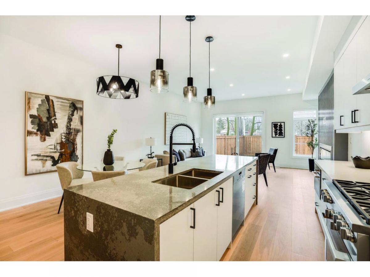 Welcome to this exquisite newly constructed semi-detached residence nestled in the prestigious Port Credit community, steps from picturesque waterfront trails, parks and a plethora of amenities including well-established public and private schools. The modern interior boasts refined craftsmanship with 10ft ceilings, gleaming hardwood floors, expansive windows and LED pot lights throughout. At the heart of this home is where you will locate the gourmet kitchen with panoramic views of the living and dining spaces that is designed with a large centre island, stone countertops, Miele stainless steel appliances and ample cabinetry space. The lovely living room with an electric linear fireplace seamlessly transitions to the great size backyard creating an indoor/outdoor entertainment space for guests. Above is where you will locate 4 spacious bedrooms including a serene primary suite with an elegant 4-piece ensuite and walk-in closet for your most prized possessions. The balance of the bedrooms boast their own charming details with ensuites/semi-ensuites. The basement completes this home with a guest/nanny suite, a large rec room and the laundry room. This home also comes with the added assurance of Tarion warranty. Don't miss this rare opportunity to own a piece of Port Credit paradise. Close proximity to Port Credit GO Station & QEW ensures seamless access to downtown Toronto. All existing electrical Light fixtures, window blinds, Miele appliances: 36" stainless steel gas range, fridge, dishwasher, built-in black microwave, washer and dryer, all bathroom mirrors.