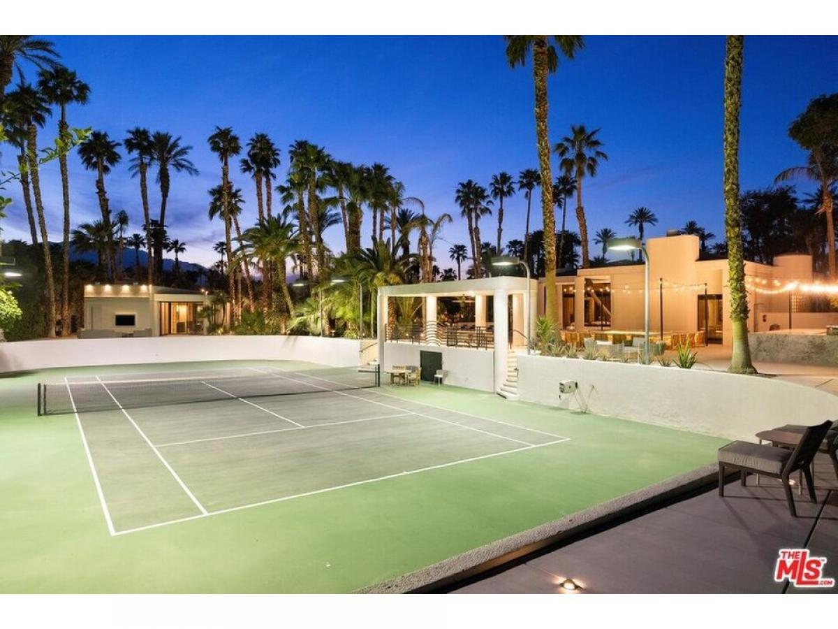 Designed by Narendra Patel, a protege of Donald Wexler, and transformed by a meticulous $2.5 million renovation, this 2.4-acre estate in Rancho Mirage#039;s exclusive Clancy Lane enclave is a true architectural masterpiece. Set on two expansive lots with the potential to increase its square footage, the property offers both immediate luxury and future possibilities. Spanning 8,800 square feet, it includes a main residence and two detached guest houses, offering a total of seven bedrooms and nine bathrooms. Every detail of the renovation was thoughtfully executed, from new travertine flooring and state-of-the-art HVAC systems to a cutting-edge security network with 24 cameras. The interiors boast soaring vaulted ceilings and floor-to-ceiling glass, filling the home with natural light. The great roomwhere Sonny Bono received Gerald Ford#039;s endorsementfeatures a sleek wet bar, while the chef#039;s kitchen is equipped with top-tier appliances and a massive island.Steeped in history, this estate has hosted U.S. Presidents, celebrities, and dignitaries. The outdoor space is equally spectacular, featuring a fully reimagined zero-edge infinity pool framed by Turkish white limestone. Adjacent to the 18-seat sunken Hibachi bar, a 450-square-foot outdoor kitchen includes a Forno Piombo wood-fired pizza oven, smoker, fryer, and more.Additional highlights include a professional tennis court, tranquil koi ponds, and a hidden 5,000-bottle wine cellar with a private dining room. It is ideally located less than five minutes from El Paseo#039;s designer boutiques Louis Vuitton, Tiffany, Gucci, Bottega Veneta, Apple, and the desert#039;s finest restaurants. A sanctuary of modern luxury and timeless elegance, this estate is a masterful blend of architectural brilliance, resort-style amenities, and storied history.