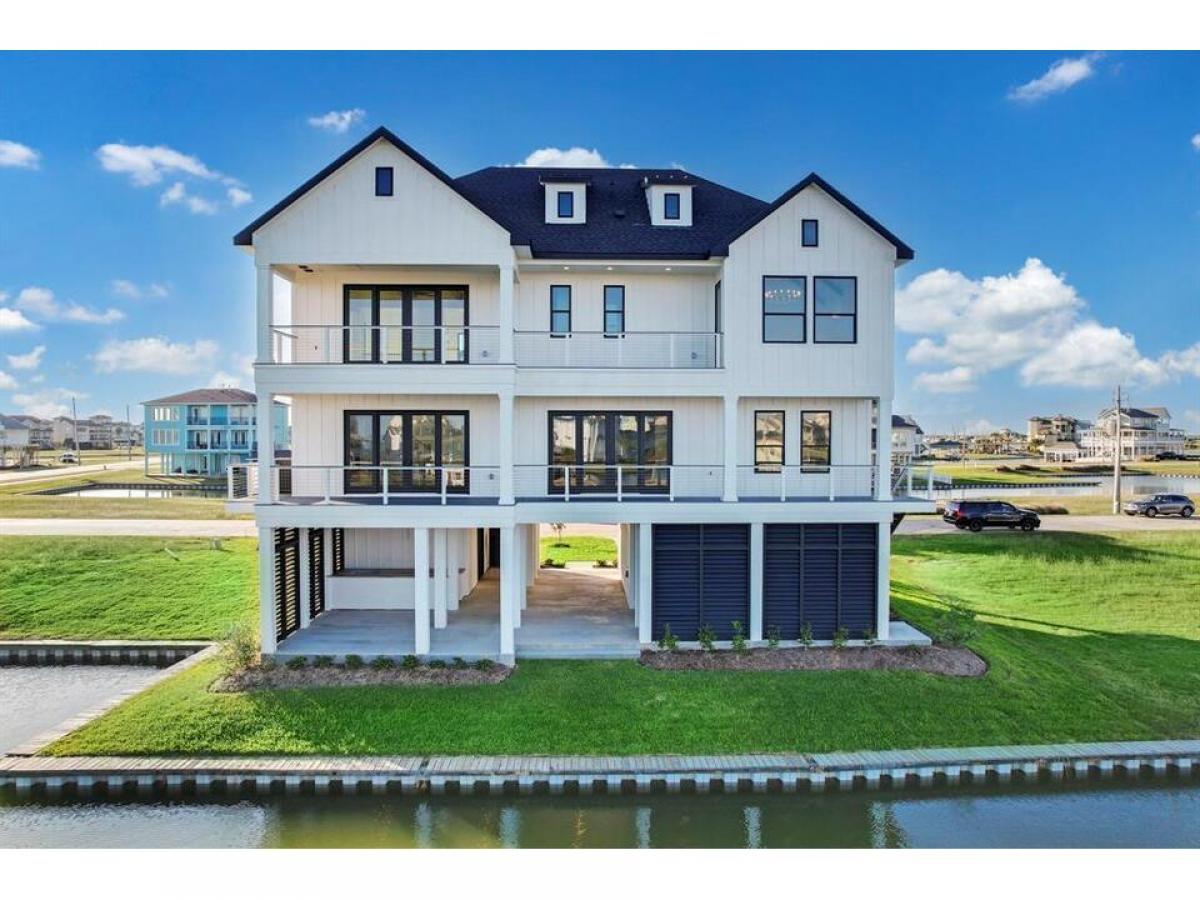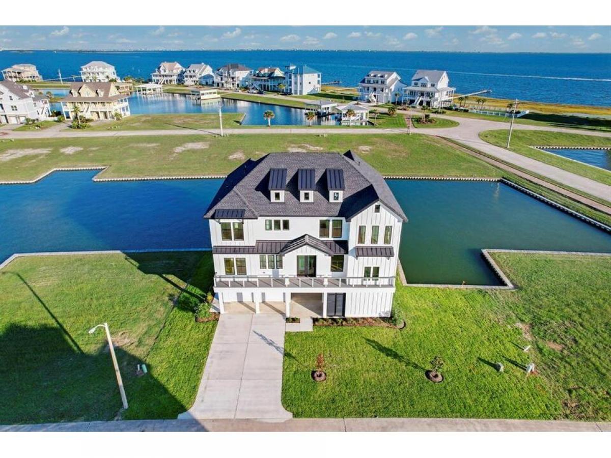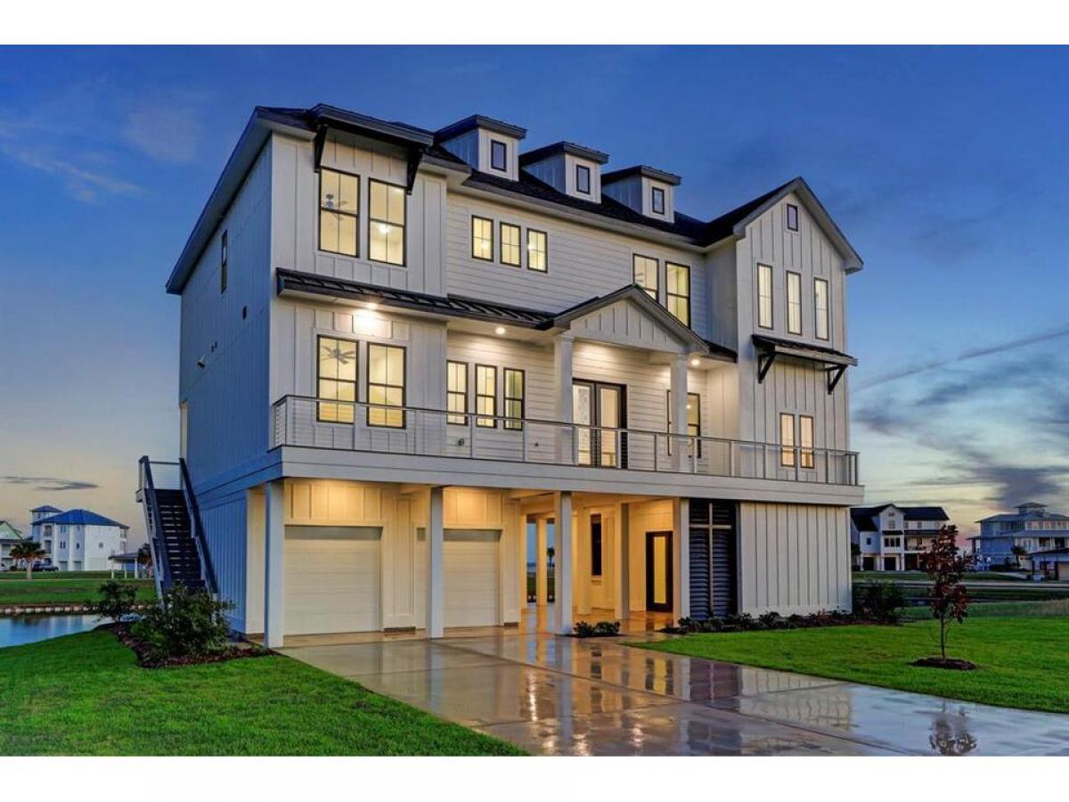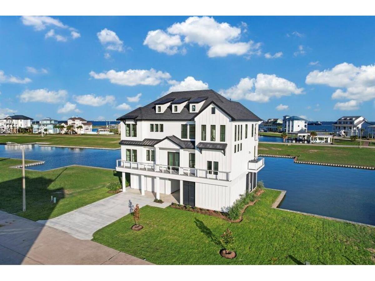 An elegant coastal style built by AB Homes and designed by Patrick Berrios. This 4 bedroom, 3.5 bath luxury hideaway is constructed with extravagant coastal features, including: An elevator to all floors, concrete pilings, impact windows doors, Trex decking, 2 Trane HVAC units 16 SEER 2ton on 1st level 3ton on 2nd level, whole home dehumidifier, spray foam insulation, tankless water heater, LED lighting, engineered hardwood flooring, 48 Wolf gas range with 6 burners griddle, pot filler, KitchenAid refrigerator, under counter microwave dishwasher, Coyote beverage center in kitchen, Coyote grill beverage center in outdoor kitchen, open concept living, solid core interior doors throughout, beamed cathedral ceilings, see attachments for details. Boat-slip will accommodate a 30' boathouse. YOU WILL LOVE THE VIEWS THE OUTDOOR LIVING SPACE! Exclusive gated waterfront community on West Galveston Bay without the Island traffic - HARBORWALK! List agent available anytime to show!