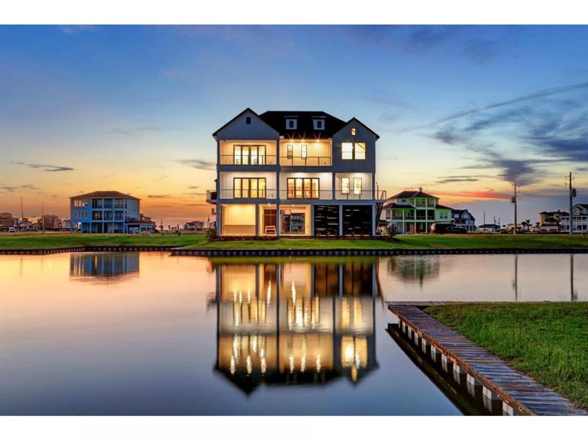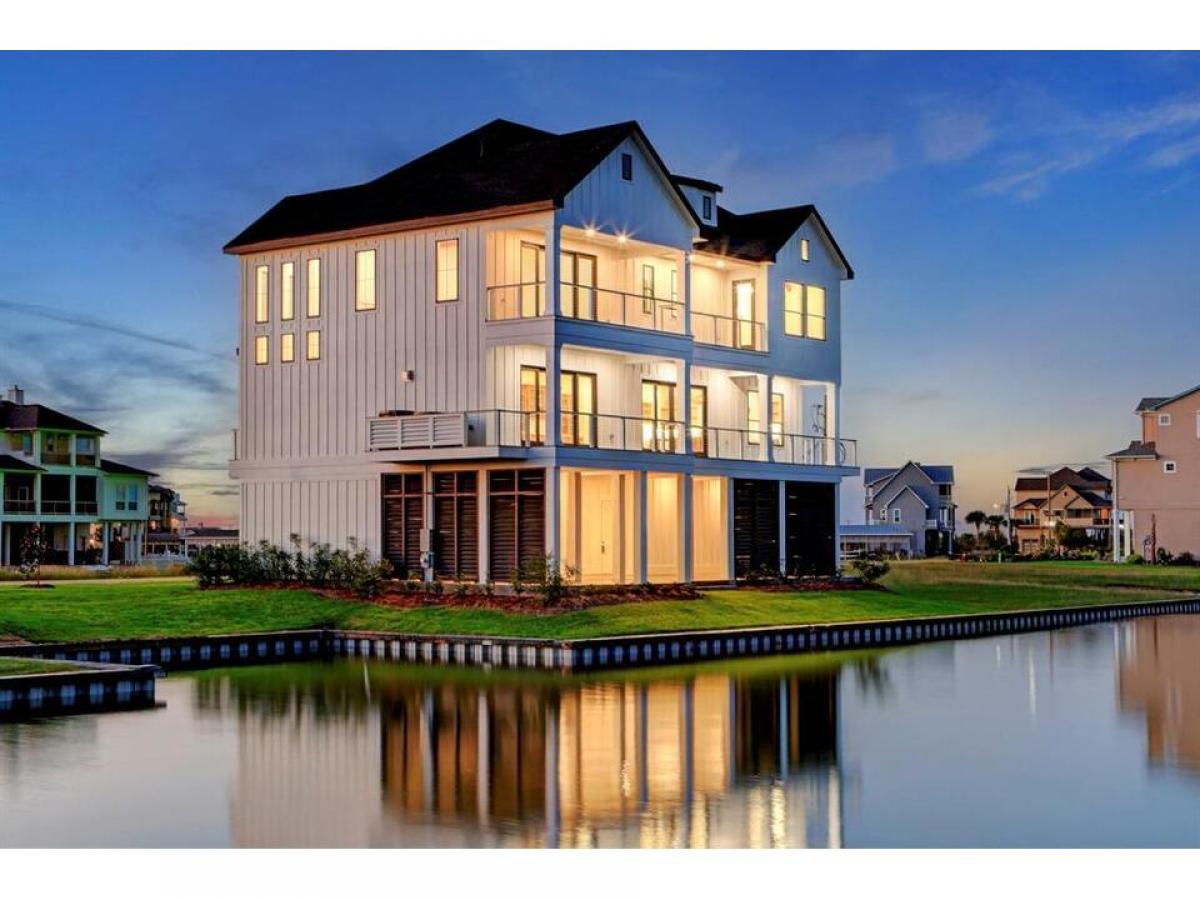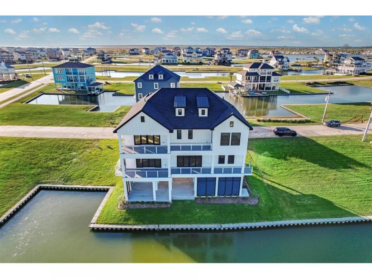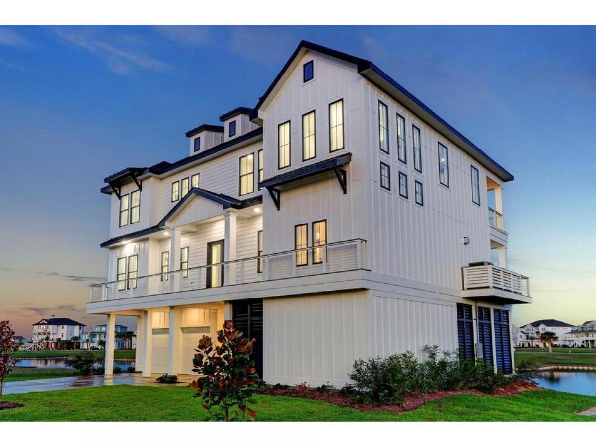 An elegant coastal style built by AB Homes and designed by Patrick Berrios. This 4 bedroom, 3.5 bath luxury hideaway is constructed with extravagant coastal features, including: An elevator to all floors, concrete pilings, impact windows doors, Trex decking, 2 Trane HVAC units 16 SEER 2ton on 1st level 3ton on 2nd level, whole home dehumidifier, spray foam insulation, tankless water heater, LED lighting, engineered hardwood flooring, 48 Wolf gas range with 6 burners griddle, pot filler, KitchenAid refrigerator, under counter microwave dishwasher, Coyote beverage center in kitchen, Coyote grill beverage center in outdoor kitchen, open concept living, solid core interior doors throughout, beamed cathedral ceilings, see attachments for details. Boat-slip will accommodate a 30' boathouse. YOU WILL LOVE THE VIEWS THE OUTDOOR LIVING SPACE! Exclusive gated waterfront community on West Galveston Bay without the Island traffic - HARBORWALK! List agent available anytime to show!