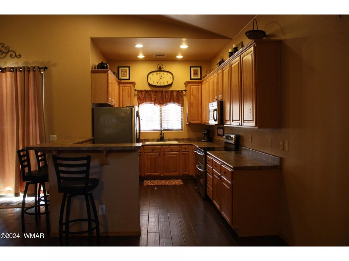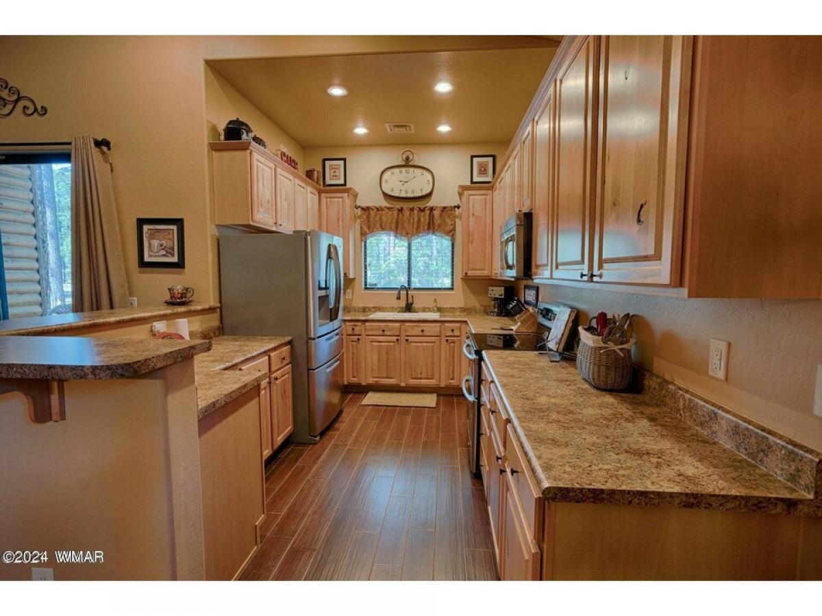 Don't miss this amazing FURNISHED cabin in this highly desired, gated community, in Pinetop CC. This home is a single level site built home. Open floor plan and beautifully furnished. Primary bedroom is a true retreat with all the luxury you'd expect. Custom kitchen has lots of counterspace, and SS appliances & double oven. Flooring is easy to maintain w Wood grained tile throughout. Large great room with a gas fireplace. Patio is fenced for your fur babies. Lots of majestic, tall pines on the lot also. This home is turn key and move in ready. Being sold fully furnished.