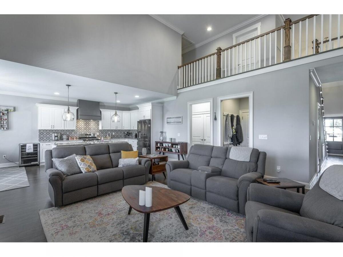 Spacious move-in ready American modern farmhouse on a beautiful level property with a fenced yard. This Apison community has amazing schools close by. The home features five bedrooms and 4 1/2 baths with a large primary bedroom suite on the main level. There is also a good size guest bedroom with en suite on the main level. This home has an open floor plan with high ceilings, beautiful wood floors, gas log fireplace, kitchen with large island, pantry, and gas stove. The primary bedroom features a bathroom with a soaking tub and large tile shower. Upstairs has three more bedrooms and two full bathrooms with large closets. There is a partially covered deck that overlooks the fenced backyard. The home stands out in this cul-de-sac street with its beautifully manicured, lawn and landscaping.