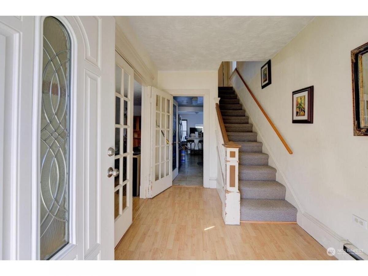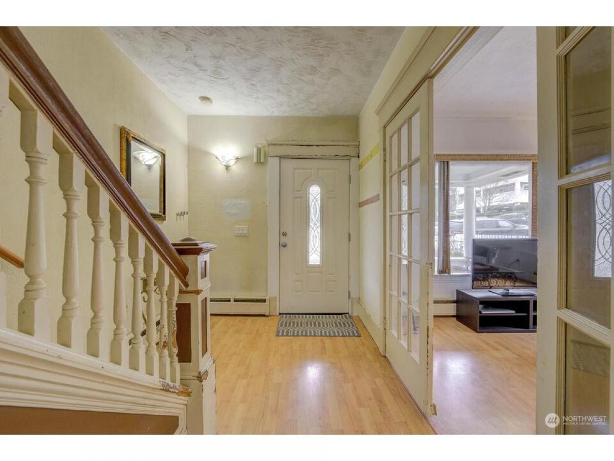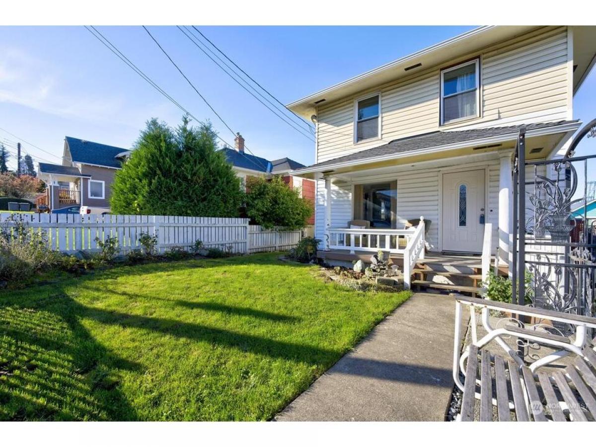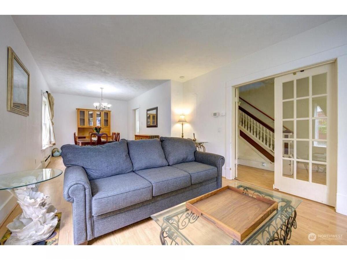 Partial Sound and waterfront view from this vintage home with high ceilings, wood trim and hardwood and laminate hardwood floors. Sitting porch, 4 BD/1.75 BA and partially finished basement. Country kitchen with view nook and breakfast bar. Great room LR/DR. Primary and 2 additional BD up and full BA. Small BD and 3/4 BA on main. Fully fenced yard. Located minutes to downtown shops and restaurants, waterfront, Naval Station, Boeing, freeways and parks. Detached one car carport and off street parking. Fenced yard. New roof, furnace boiler and tankless hot water heater. Home sold as is and ready for your designer touches. See today - won't last! $555,000
