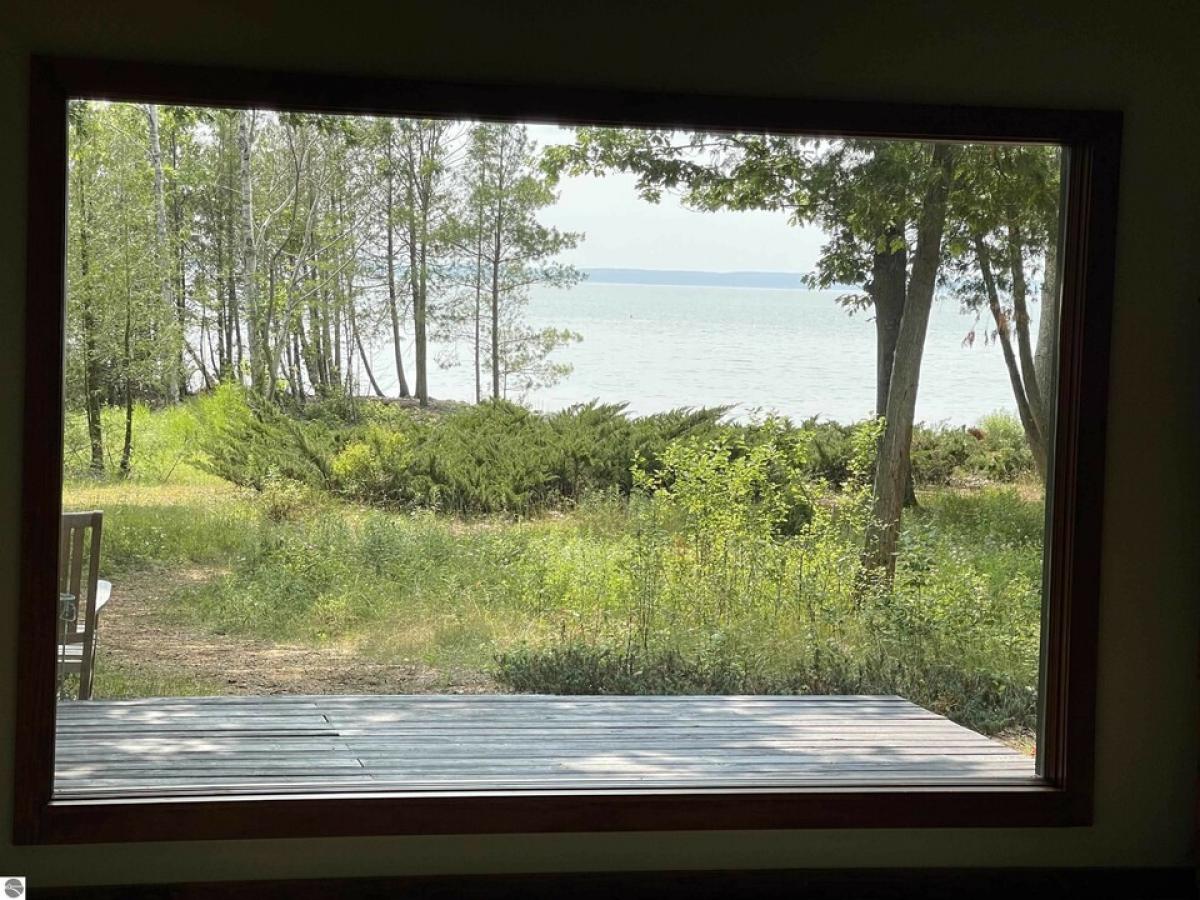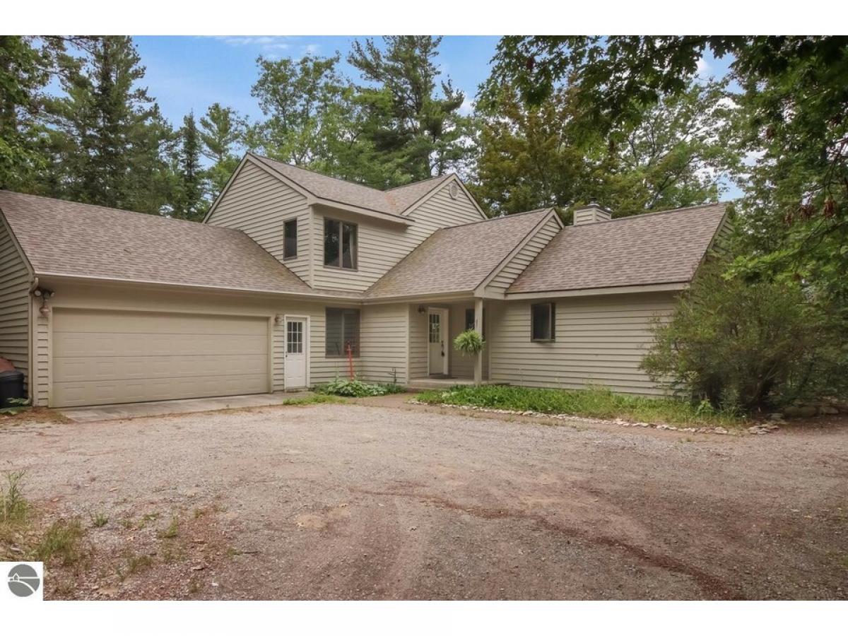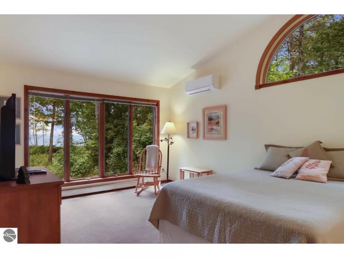 400' GRAND TRAVERSE BAY FRONTAGE! ENJOY THE WILDERNESS AND SUNSETS OVER GRAND TRAVERSE BAY will entertain you every night from this gorgeous home. The living room is enhanced by a fireplace, wood paneled vaulted ceiling and a floor to ceiling picture window overlooking your 400 feet of frontage. Enjoy your meals in the sun filled dining area with gorgeous views from expansive windows and head outside to the deck for dining al fresco through the french doors. Well equipped kitchen with double wall ovens, beautiful cabinetry, tile flooring and built ins. Wake up to gorgeous views and the sounds of waves lapping the shoreline from the primary suite on the main level with dual closets and private bath. The sauna will feel wonderful after a day at the beach. Grab your favorite game and head to the sunroom for lively conversation and friendly competition with family and friends. Accented by 6 bedrooms, 3 ½ baths; natural light from the skylights; air conditioning; main floor laundry room; 2-car attached garage; back-up generator included; and so much more. The 13.89 wooded acres give you privacy and room to roam the natural setting. Imagine gathering around the firepit on the lakeshore for stories and s’mores. You will love the beachside deck where you can soak up the sun, read a book and appreciate the natural beauty of your surroundings. Backup generator included. This is the place you have been looking for to relax, rejuvenate and rest. Adjoins 37 acres of nature preserve.
