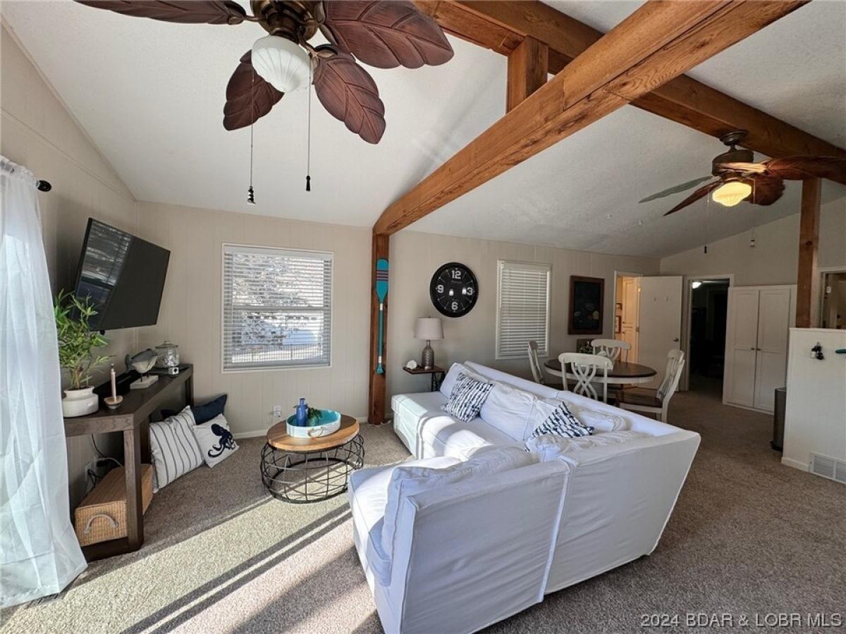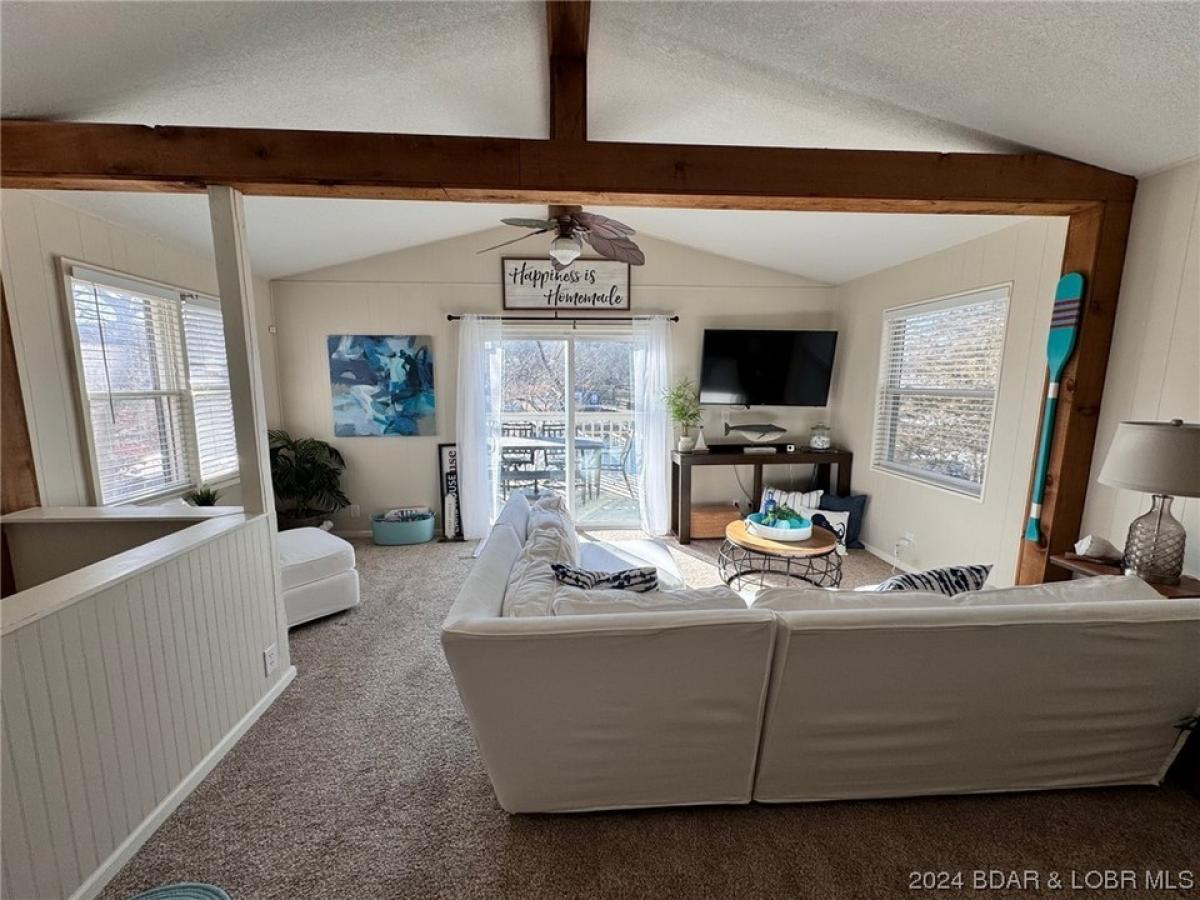 STEP INTO YOUR NEW LAKEFRONT OASIS! This adorable home boasts of a harmonious blend of comfort and stylish charm. The vaulted ceilings and wood beams immediately catch your eye! An open concept living area with a nice size deck that creates a seamless connection between the indoor and outdoor space. Located on the lower level the master bedroom suite offers a peaceful retreat with an impressive view of the lake. On those cooler nights invite everyone around the firepit to share some spooky tales. Grab a chair and your favorite beverage, take a casual stroll down to the lake, relax on the lake side deck, catch some rays on the swim platform or on those hot days slide right down into the lake. A true hidden gem with a beautiful backdrop making it unique & a special find! Pack your clothes and toothbrush cause that is all you will need! Home is located in a quiet cove, comes completely furnished, dock w/hoist, dock furniture and dock locker are all included! Added BONUS there is a 220 volt outlet up by the parking area for your electric vehicle or RV. ALSO-Perfect home for a vacation rental if you desire. What more could you want? The perfect way to start enjoying the lake lifestyle!