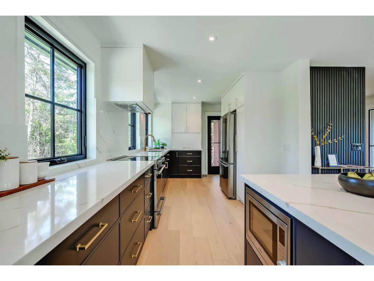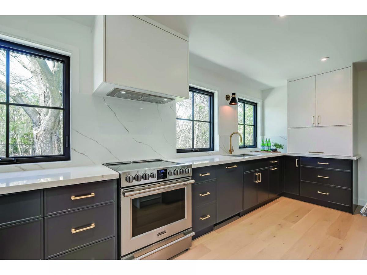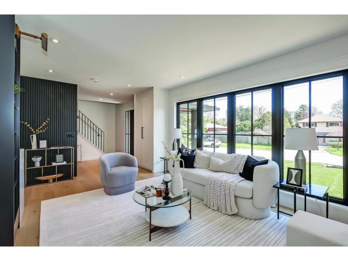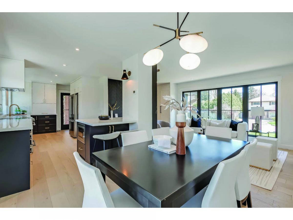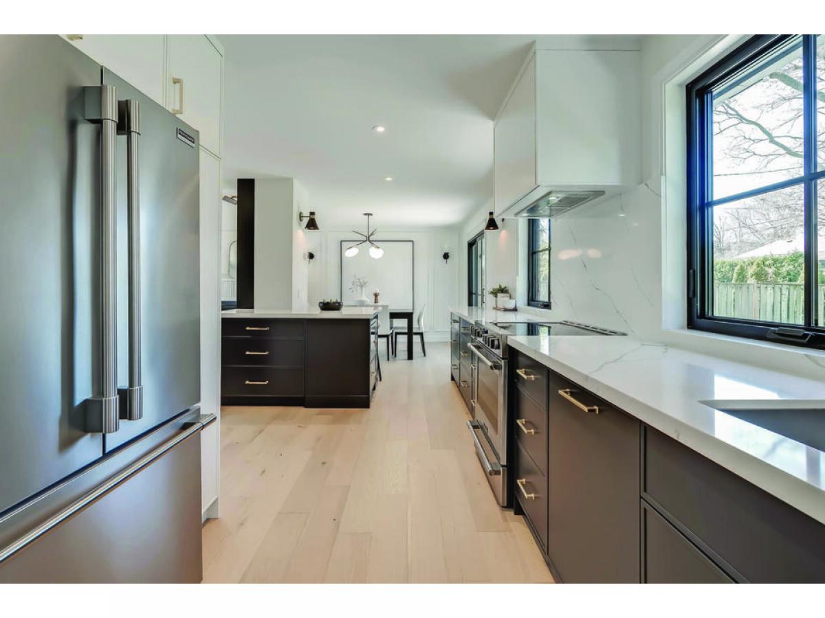 Very stylish and great attention to detail. Engineered white oak flooring throughout main and upper levels. Beautiful electrical fixtures and loads of LED pot lights. Stunning custom kitchen with shaker style cabinets, quartz countertops, soft close doors, gold hardware and faucet, breakfast bar on island and quality appliances, all tastefully co-ordinated. Kitchen is open to the dining and living areas, ideal for entertaining. Luxurious primary bedroom with walk-in closet and built-in organizers, unique sliding door entry, and gorgeous ensuite. The 5 piece primary bath features a separate tub with Riobel tub filler, glass shower enclosure and 2 sinks. Finished basement has plush new berber carpet, neatly tucked away office and large laundry room with LG washer and dryer and custom cabinetry with lots of counter space. All new Ridley windows and doors, Ostaco line. All new grass, driveway, stone window wells and flagstone walkways. Updated HVAC and new electrical. All renovations done with permits. Move in and enjoy.