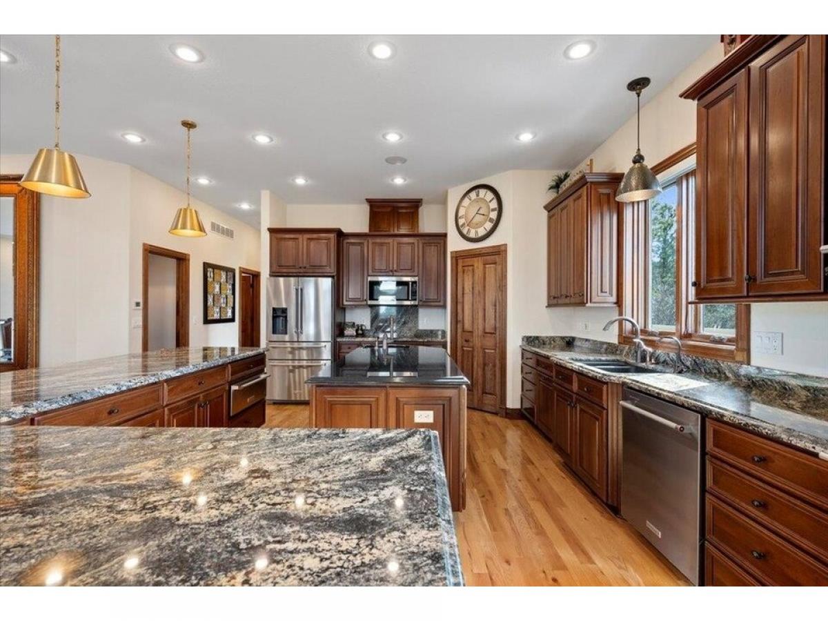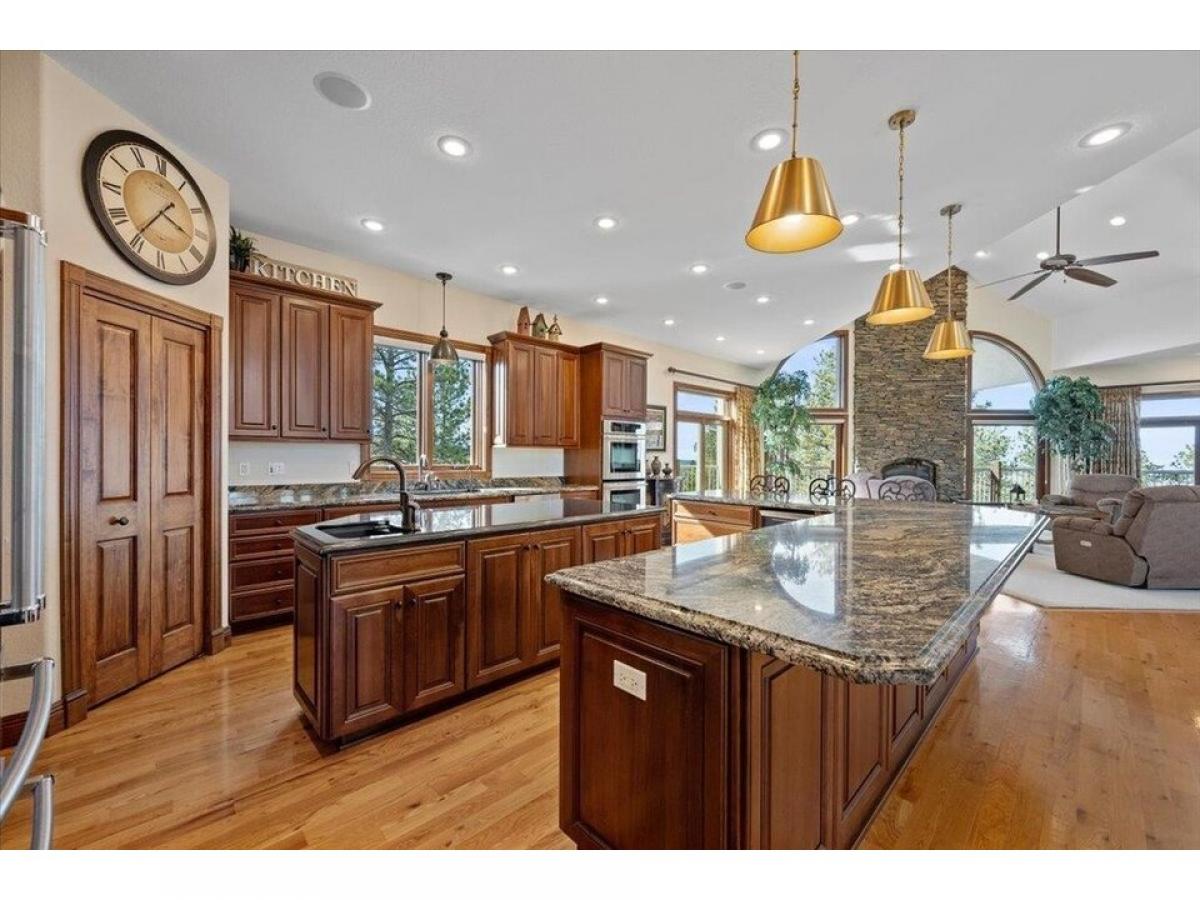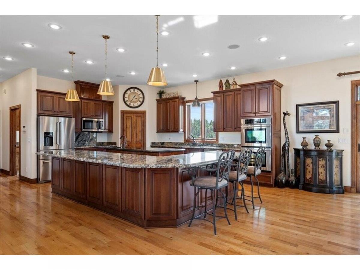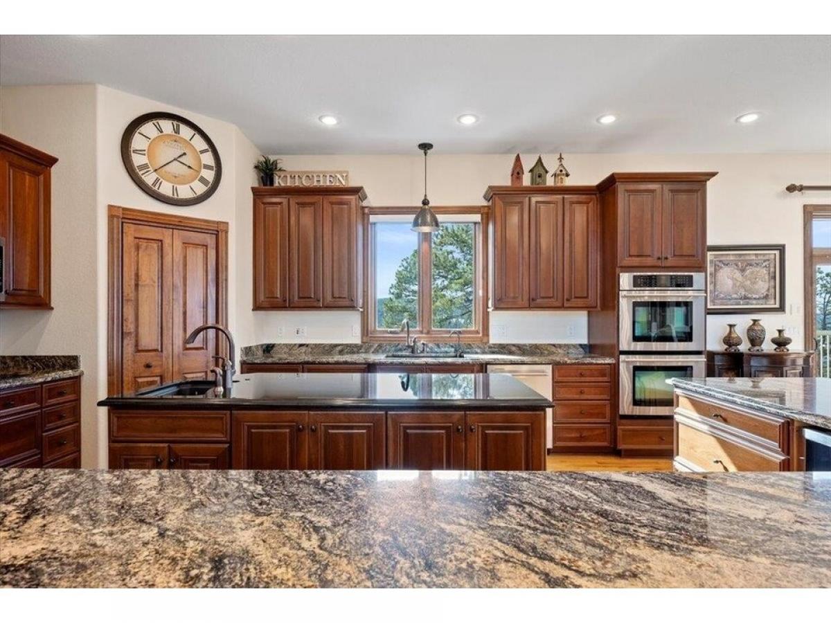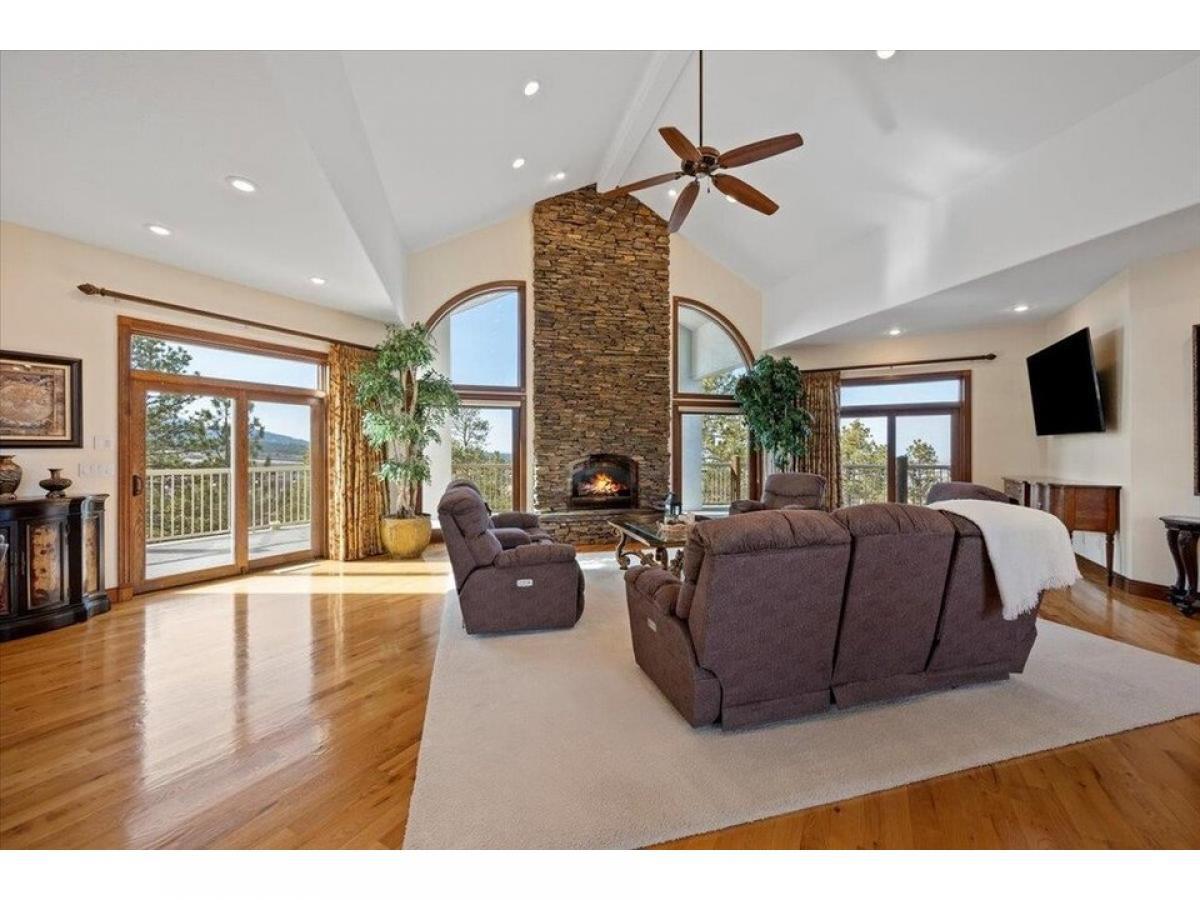 For more information, please contact listing agents Heath Gran 605-209-2052 or Scot Munro 605-641-6482 with Great Peaks Realty. This truly one-of-a-kind custom home boasts intricate architecture amp; design, with unmatched views of Spearfish and beyond, you will find privacy and peace here - perched at the top of Mountain Plains II Subdivision on 4.58-acres! Welcome home through the grand entrance boasting hardwood floors, stone gas fireplace, large windows inviting in endless natural light, expansive kitchen featuring granite countertops, high-end appliances, prep sink, island and pantry. Primary ensuite on the main level offers a relaxing retreat - walkout access to the wrap around deck, custom Travertine walk-in shower, air bubble soaker tub, marble tile and his amp; hers walk-in closets. Main level also offers a spacious office with built-in shelves amp; deck access. Heated garage has 13#039; ceilings, epoxy floors, hot amp; cold-water hookups, floor drains amp; built-in cabinetry. There is more to love in the basement - custom wet bar, movie projector screen, gas fireplace, recreation/exercise room, 3 large bedrooms and 2 full bathrooms. Step outside to the patio and enjoy the Hot Spring hot tub while soaking up the views. There is much to appreciate about this property! Low maintenance, natural landscaping and wildlife abound! Breathe Right UV light filter on furnace, heated dog kennel, reverse osmosis system, new 75-gallon water heater, security system, surround sound amp; heated driveway!