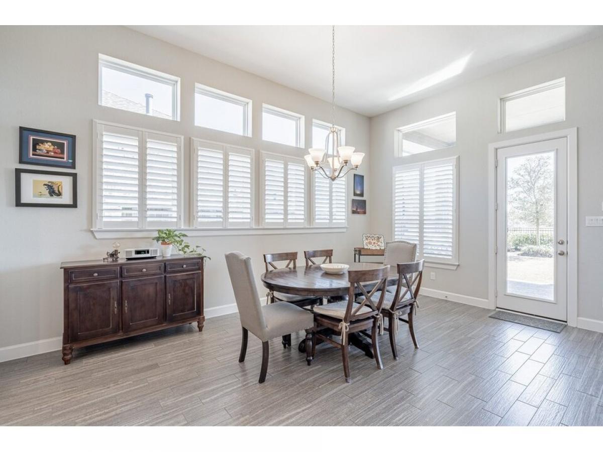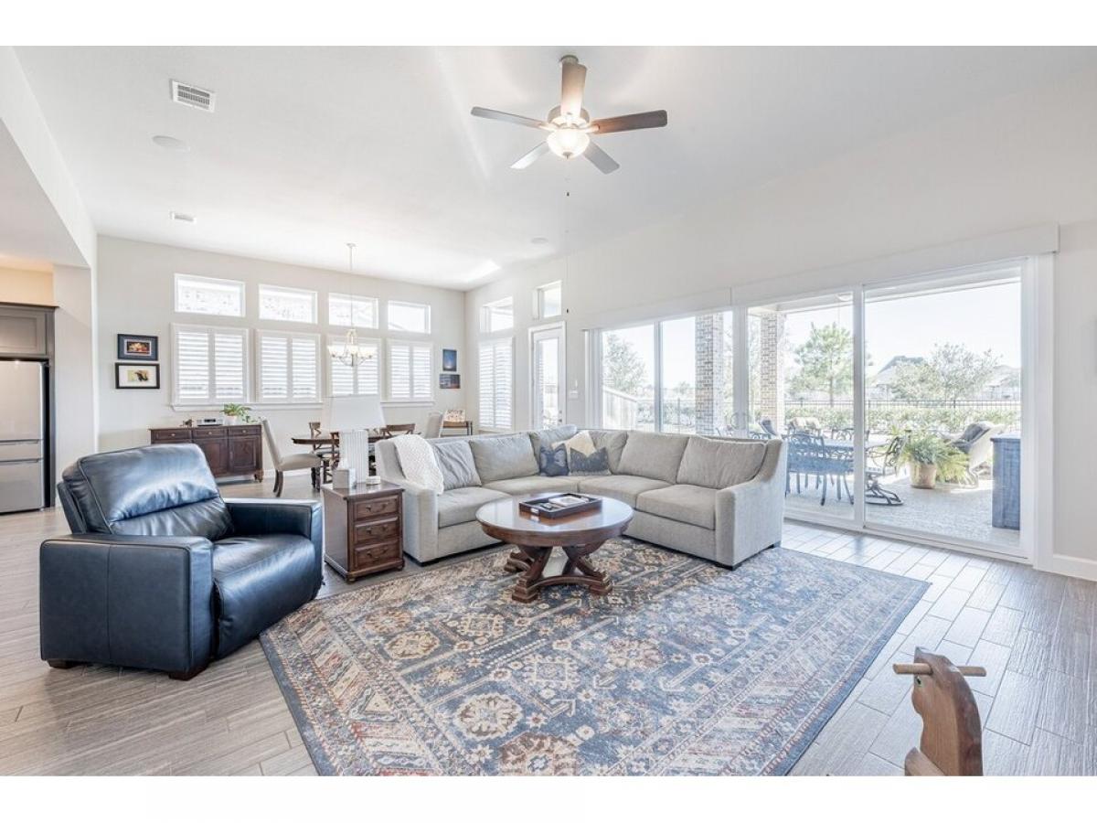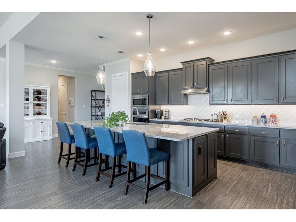 Better than new WATERFRONT David Weekley single story with four bedrooms, four full baths and a powder, study, and three-car garage. Open layout with massive windows and sliders overlooking oversized outdoor living and back yard with amazing southern exposure views of the lake with epic sunsets. Tall ceilings. Smart layout. Private study with glass doors. Amazing kitchen with huge command island and abundant cabinet and counterspace with walk-in pantry. Mud room with built-ins. Large laundry with built-ins and folding counter. EZ maintenance wood-look tile flooring throughout (minus bedrooms). On trend finishes with popular upgrades. Custom built-ins in the primary closet. Split plan layout with dedicated guest suites. All bedrooms feature large walk-in closets. Close to amenities including Sunset Farm, The Shed, pool, playgrounds and fitness center as well as the new elementary school. Miles of walking/running trails. All within the top rated master-planned community of Jordan Ranch.