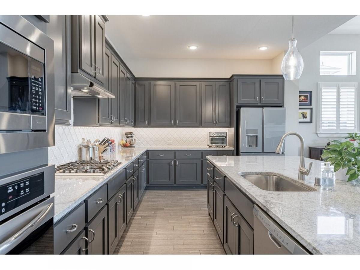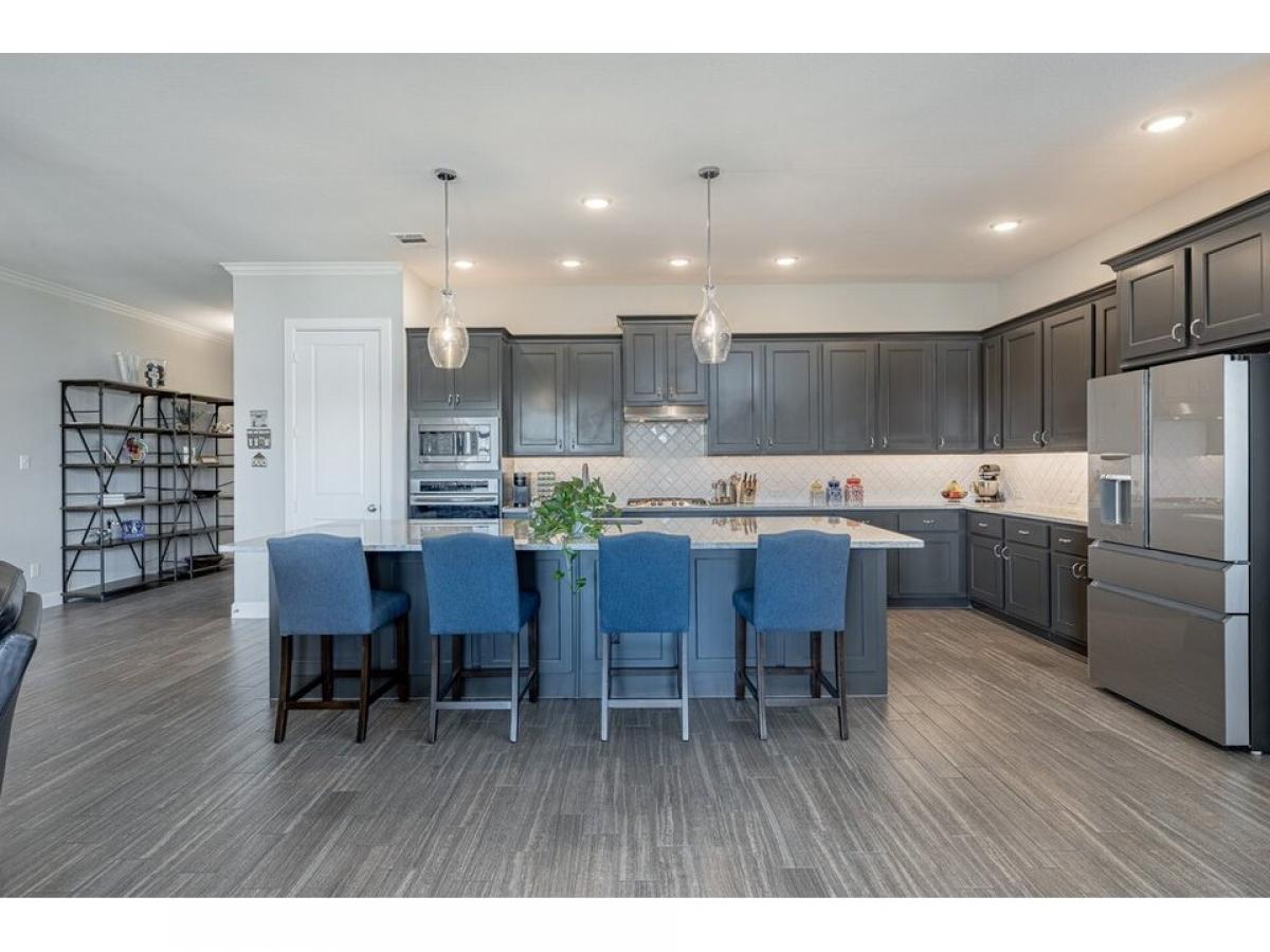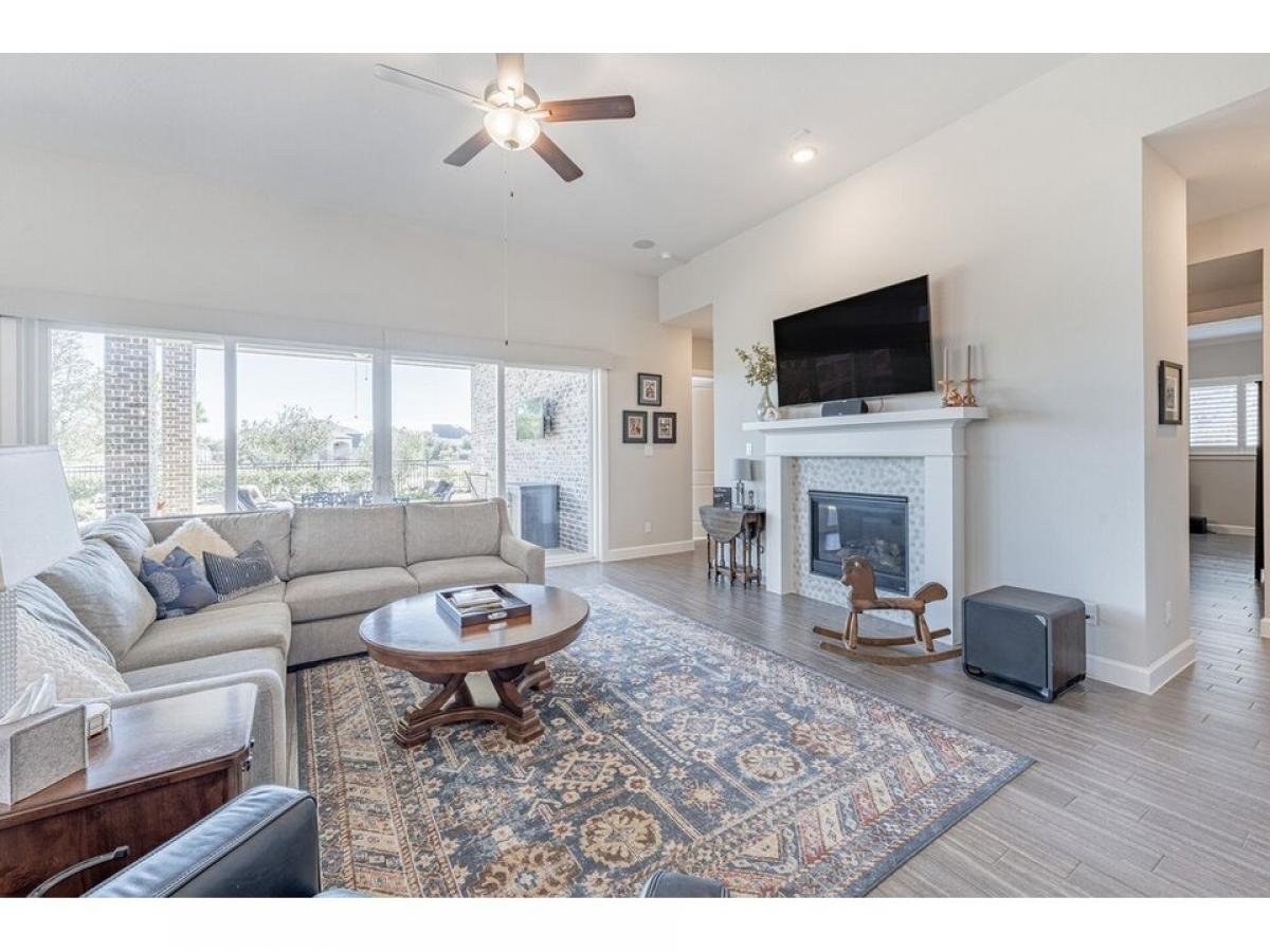 Better than new WATERFRONT David Weekley single story with four bedrooms, four full baths and a powder, study, and three-car garage. Open layout with massive windows and sliders overlooking oversized outdoor living and back yard with amazing southern exposure views of the lake with epic sunsets. Tall ceilings. Smart layout. Private study with glass doors. Amazing kitchen with huge command island and abundant cabinet and counterspace with walk-in pantry. Mud room with built-ins. Large laundry with built-ins and folding counter. EZ maintenance wood-look tile flooring throughout (minus bedrooms). On trend finishes with popular upgrades. Custom built-ins in the primary closet. Split plan layout with dedicated guest suites. All bedrooms feature large walk-in closets. Close to amenities including Sunset Farm, The Shed, pool, playgrounds and fitness center as well as the new elementary school. Miles of walking/running trails. All within the top rated master-planned community of Jordan Ranch.