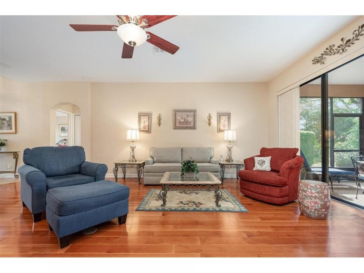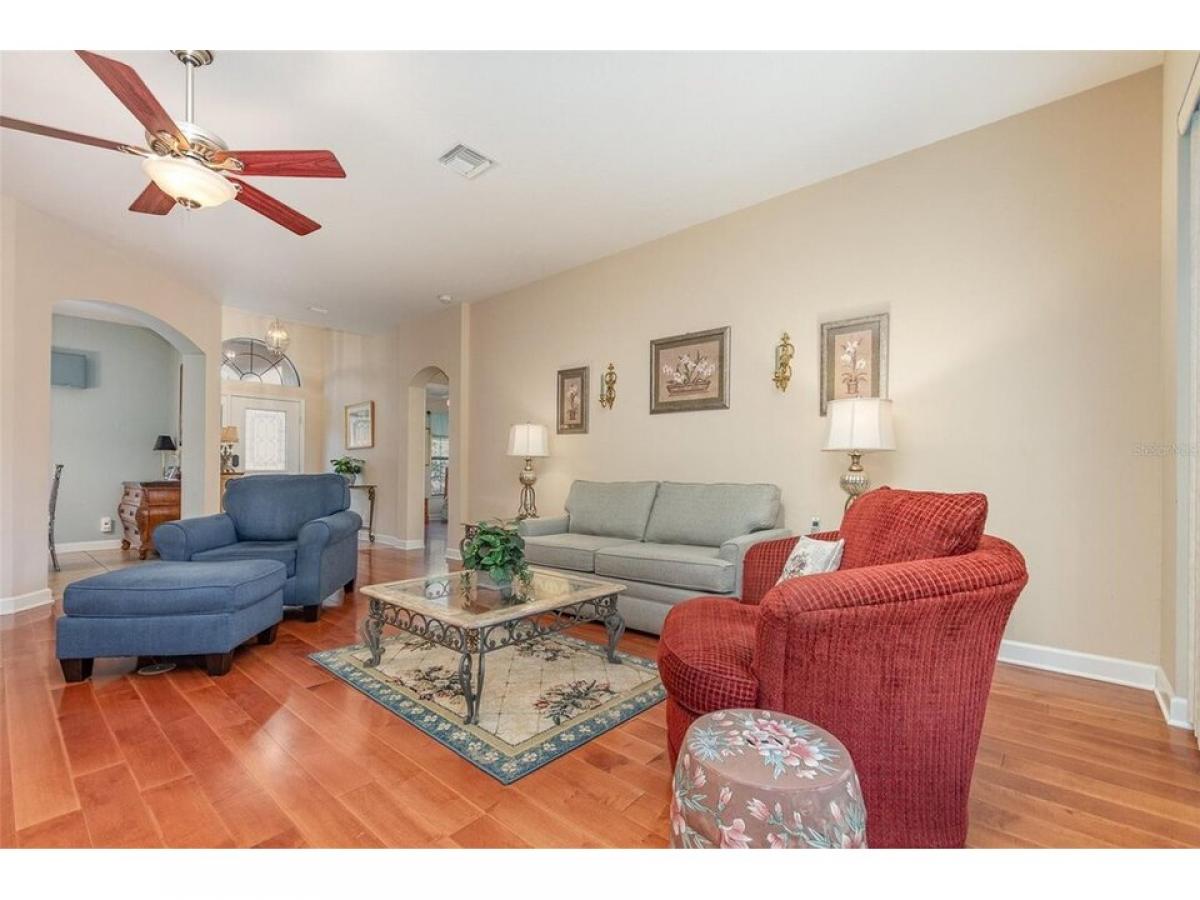 Tucked into a quiet side street, in the Lakes of Mount Dora, a 55+ community, this meticulously well-maintained home is Move-in Ready and awaits its new residents. The spacious 1,864 sq. ft. open floorplan offers 3bedrooms, 2 baths and a 2 frac12; car garage. Conveniently this home has recently replaced both the A/C and Roof in 2022. The front entrance has a secluded patio with French-door entry to the spacious kitchen, as well as a entry with fully view open floorplan and the lanai and landscaped yard. The modern appliances by Kenmore and Whirlpool and include an interior laundry room with washer and dryer. The Great Room, featuring wood flooring, offers ample space for relaxation and entertainment. The large Social Hall serves as the hub of social gatherings and events. With the Olympic size, community swimming pool residents can enjoy a refreshing swim or just relax by the poolside. The fitness center offers a convenient space for staying active and maintaining a healthy lifestyle. The communities many amenities and activities truly elevate the living experience here. Residents are treated to a wide range of options for leisure and recreation, including pickle ball, tennis, croquet and Bocci ball courts, billiards room, a well-stocked library, card room and quarter-mile paved walking path around the pool, and baseball field. Overall, the community amenities caters to a diverse range of interests and provide something for all. The Lakes of Mount Dora is located just miles from the downtown center of Mount Dora and its charming and quaint shops, restaurants and live entertainment. With convenient proximity to Orlandorsquo;s amusements, theme parks, theatre, local airports and both East and West coast beaches, all accessible by local highways and toll roads. This is a must-see home, in a beautiful, friendly neighborhoodhellip;Welcome Home to the Lakes of Mount Dora.