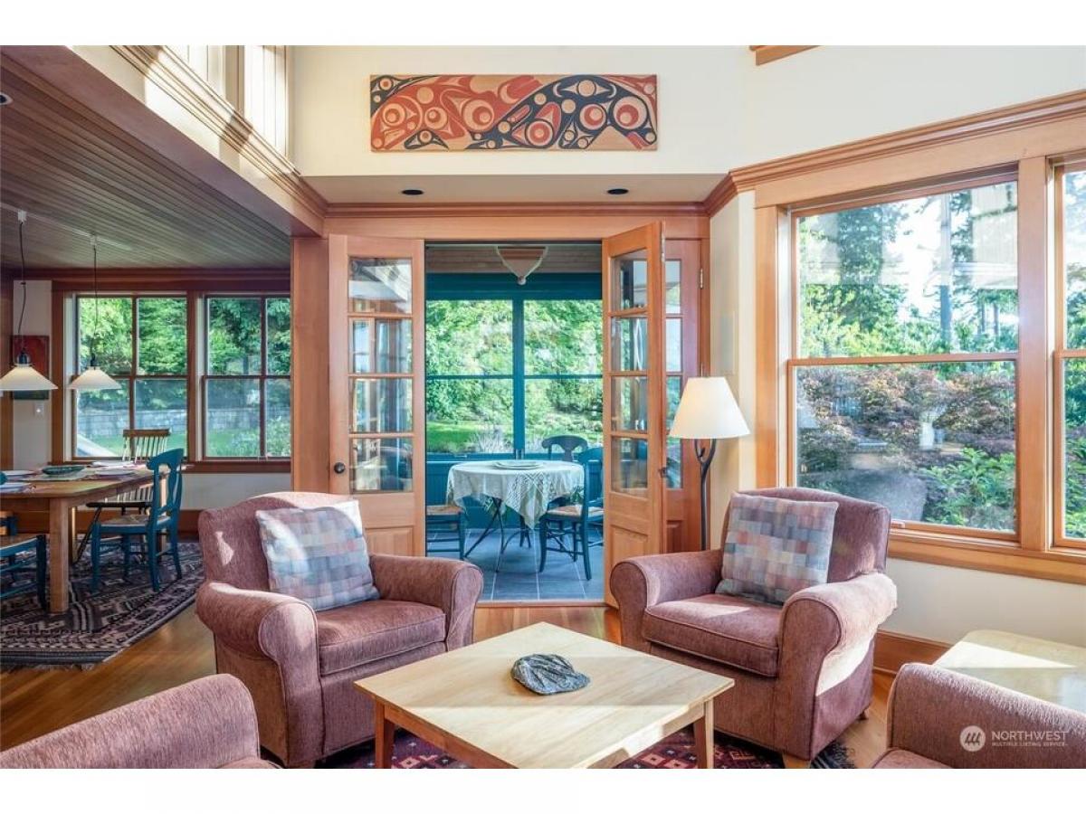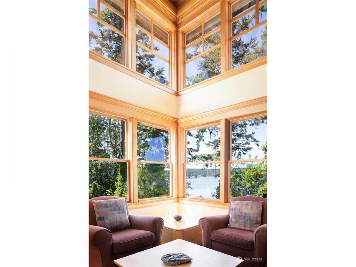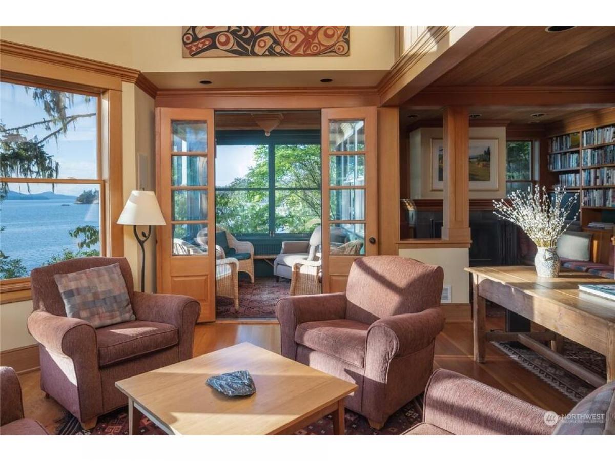 PEACEFUL ISLAND OASIS-a gated, tree-lined drive delivers you into the midst of tasteful, mature grounds where you'll find a timeless 2 BD/3BA home overlooking Lopez Sound on 582 ft of WF. Its quintessentially NW design boasts features like a fireplace nook with built-in seating, 2 screened-in porches to expand your living space, soaring clear cedar ceilings, fir floors beautiful woodwork with walls of bookcases. Extra finished rooms add flexibility. Nearby is the well-built studio/office. Stone steps lead to the beach with kayak storage great crabbing. Set on 3 deer-fenced parcels, totaling 3.24 acres, there's plenty of opportunity for future expansion. Right in the heart of good kayaking.