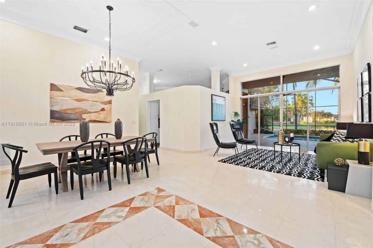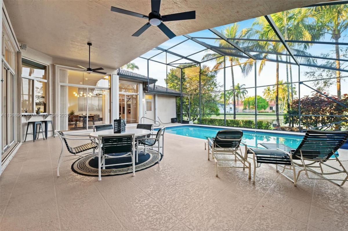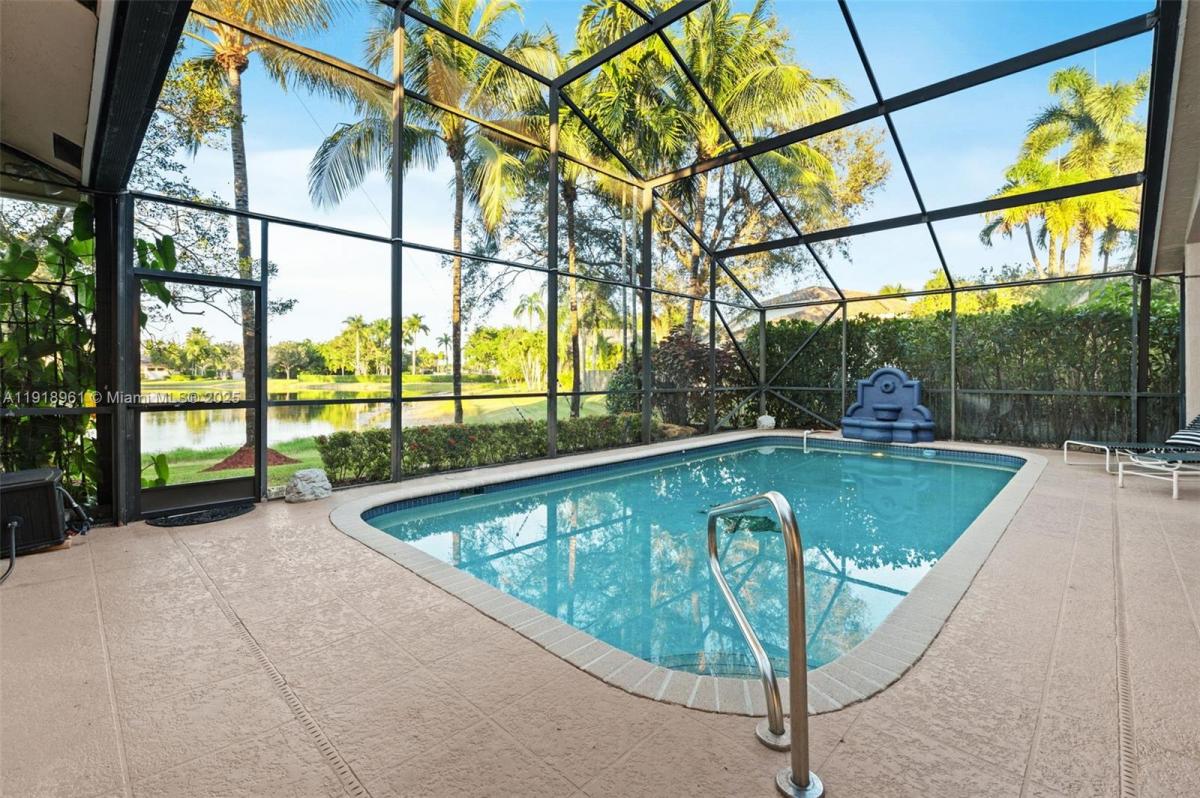 I invite you to tour my newest listing in Prestigious Weston Hills Country Club, a desirable, upscale community in the City of Weston offering peaceful ambiance and excellent security. This exquisite 4 Bed, 3 full Bath, Pool, home is situated on a serene lakefront lot and features its own distinctive blend of Elegant Luxury & Farmhouse Chic. Enter through glass French (impact) doors into an open foyer, with living & dining rooms overlooking the pool, patio & lake. The unique blend of this home's casual sophistication is alluring & inviting. Exquisite. Timeless high-quality marble flooring in the foyer, formal living & dining rooms, master bedroom, & the luxurious master bath. The heart of the home is the spacious kitchen with cabinets galore, vented exhaust, and a pantry. The kitchen, family & breakfast area offer wood flooring. Master, & all living areas overlook the pool, patio, & the lake. Floor plan offers a 3-way split, 12 ft volume ceilings, and crown molding, with all secondary bedrooms featuring wood flooring. The 4th bedroom is adjacent to the Cabana Bath, making it ideal for in-laws or teens. The 3rd bedroom, currently used as a home office, has a built-in closet and could be used as a guest room. Oversized 30x13 covered patio is perfect for entertaining with a pass-through (impact) window from the kitchen & two ceiling fans. Weston schools are A+ rated & Money Magazine has ranked the master-planned City of Weston among the top 10 places to live in the US.