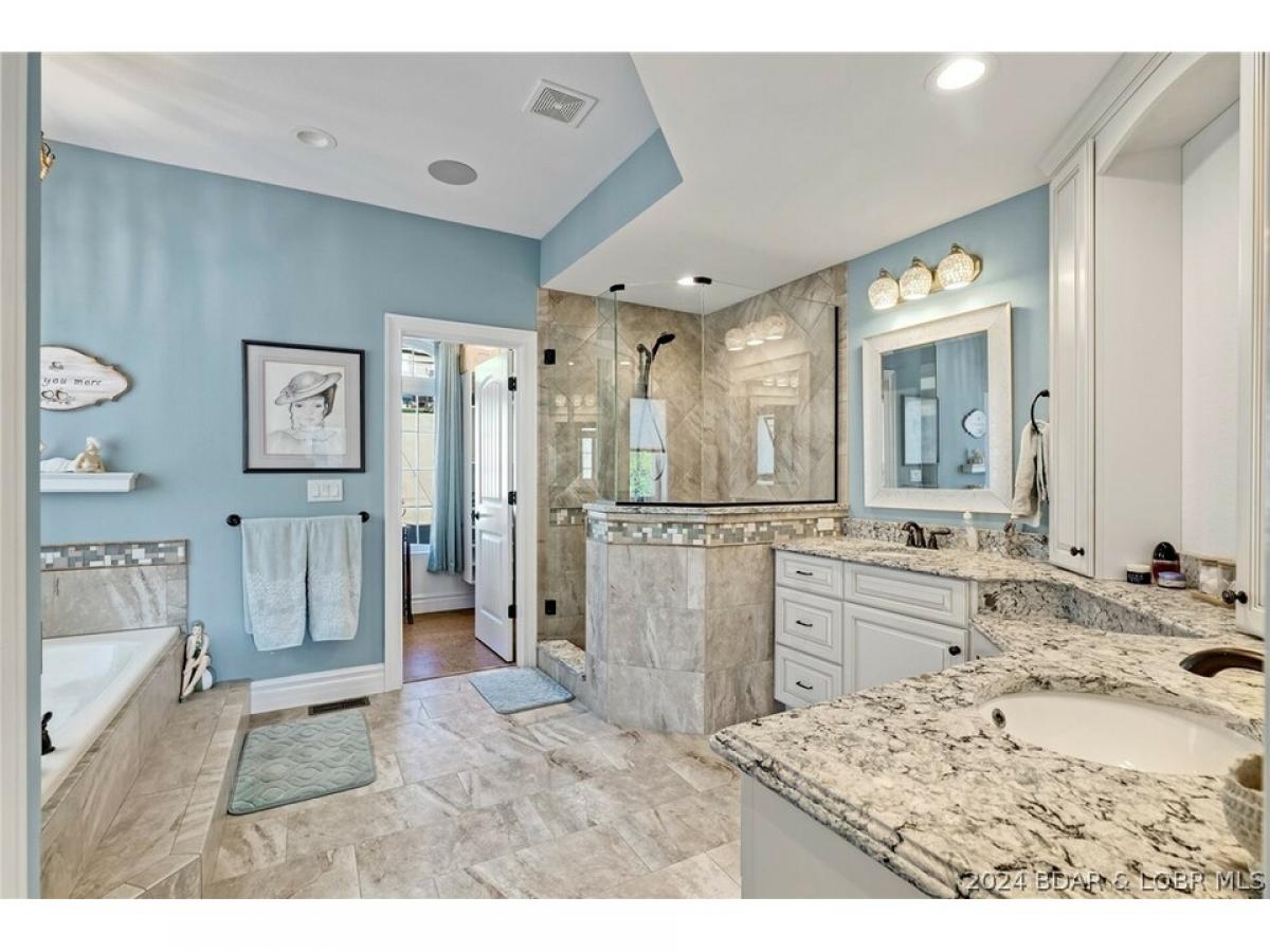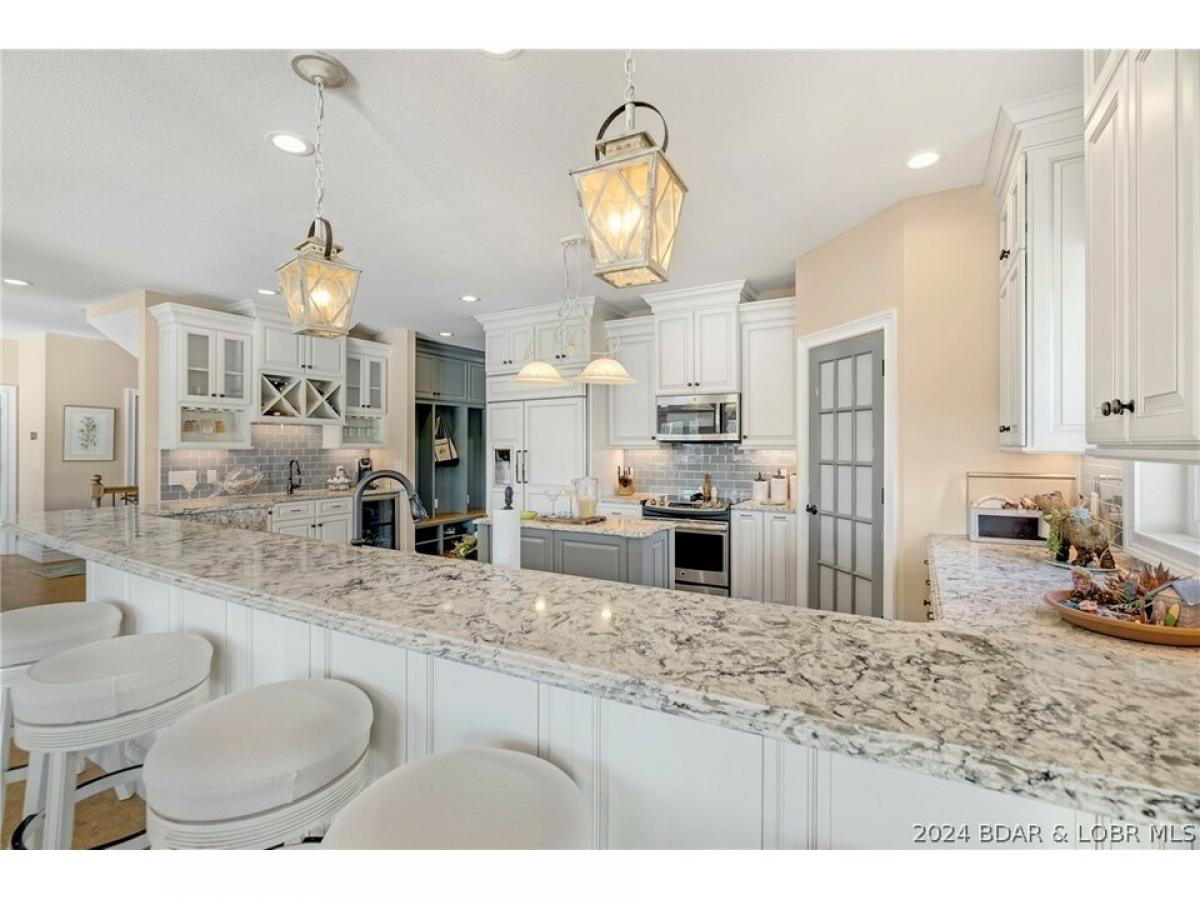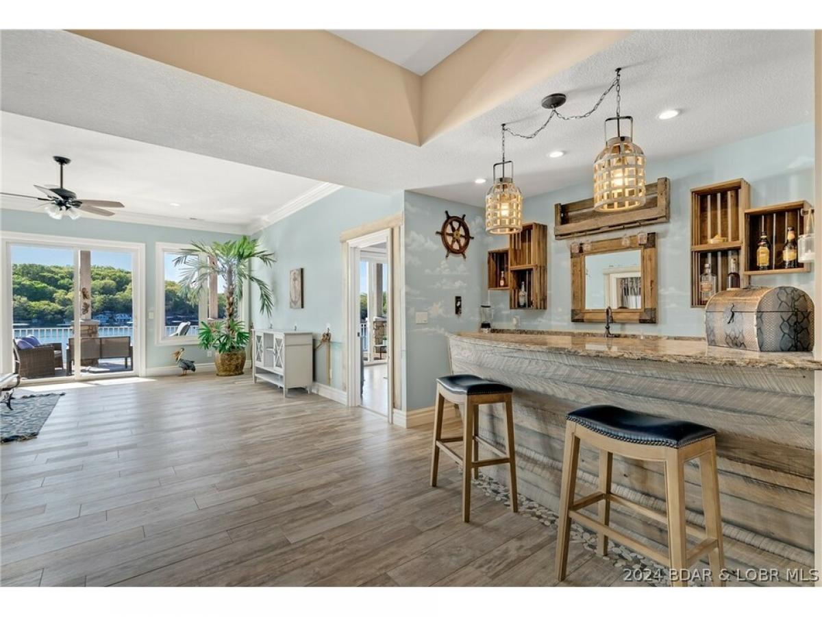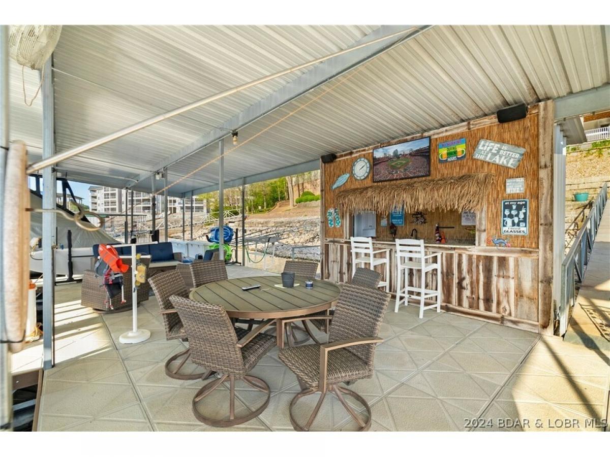 This is the quality & package a person expects when they spend this kind of money. Experienced St. Louis home builders personal home that embodies quality and comfort. Unbelievable views with the perfect Lick Branch Cove Location all situated in Timberlake Village. A community of nice homes with cartability to several amenities including clubhouse, pool, & playground. Walk in to the main level and be captivated by the sparkling water views. 3 levels of wonderful patios and decking with beautiful stamped concrete floors, tongue and groove ceilings and even a hot tub and 1/2 bath off of lower patio. Plenty of room for guests with 6 bedrooms/5 full and 2 half baths and home comes furnished. James Hardy siding, Anderson Windows, corked floors, custom bunk room, plenty of parking, and even a cart path to the dock/firepit area. This dock is amazing, a party pad all on its own! 3 slips plus pwc spots, slide, wet steps, fish cleaning station & a tiki bar. You won't leave the dock all day, why would you! Owner is an artist and has added some wonderful touches to the home. There isn't room to describe all of this homes beauty, look at the pictures so you can understand what makes it special.