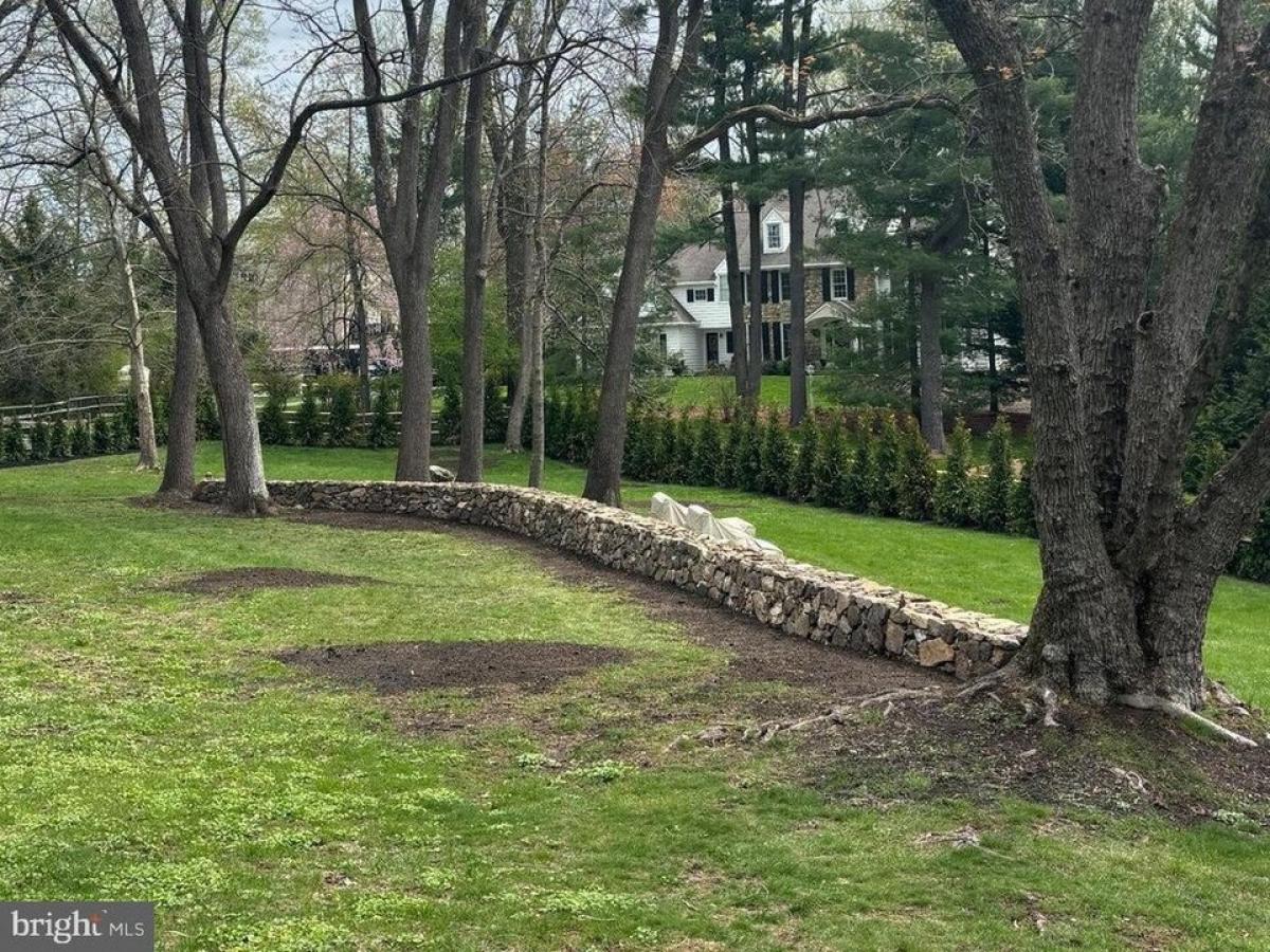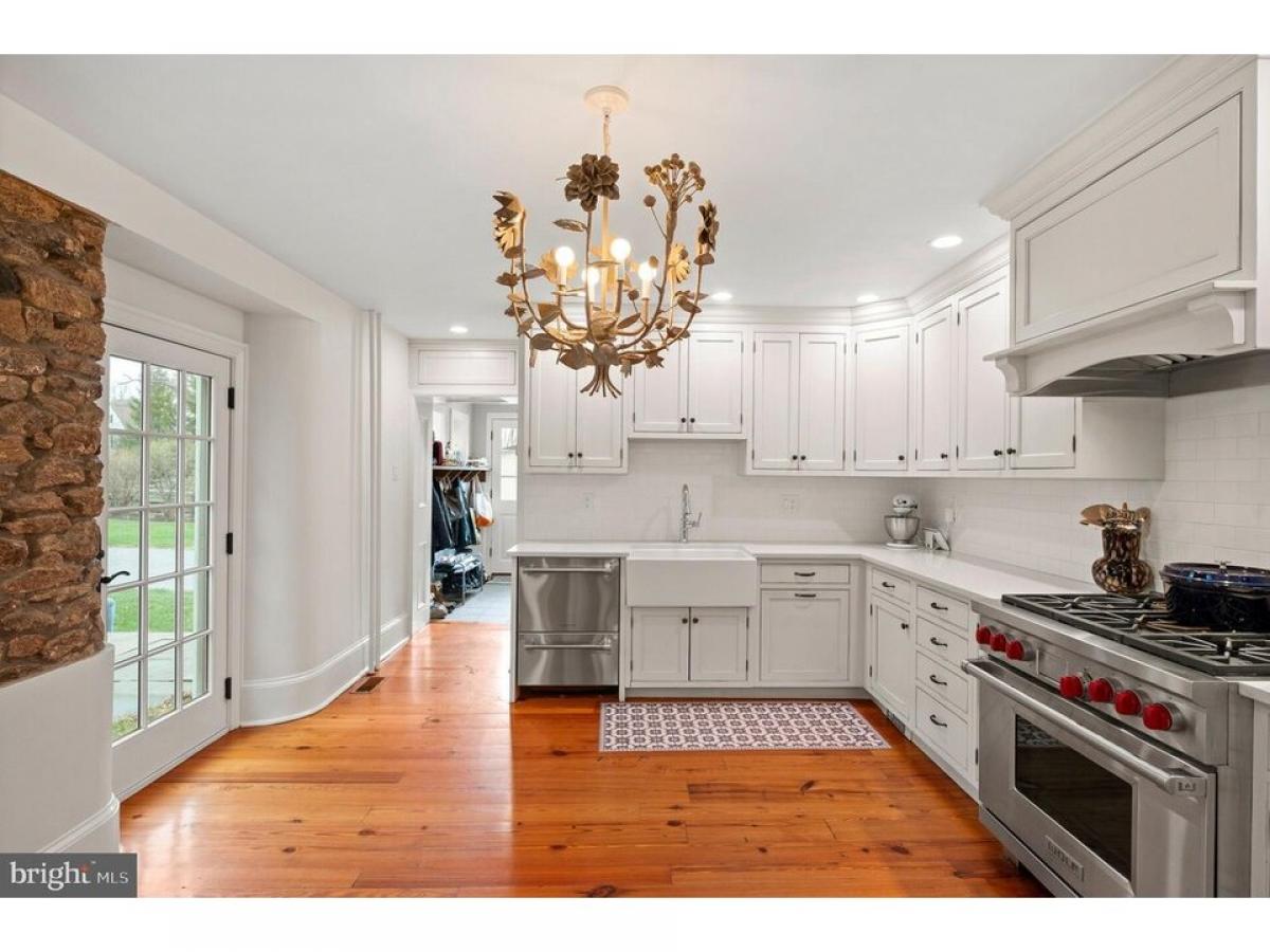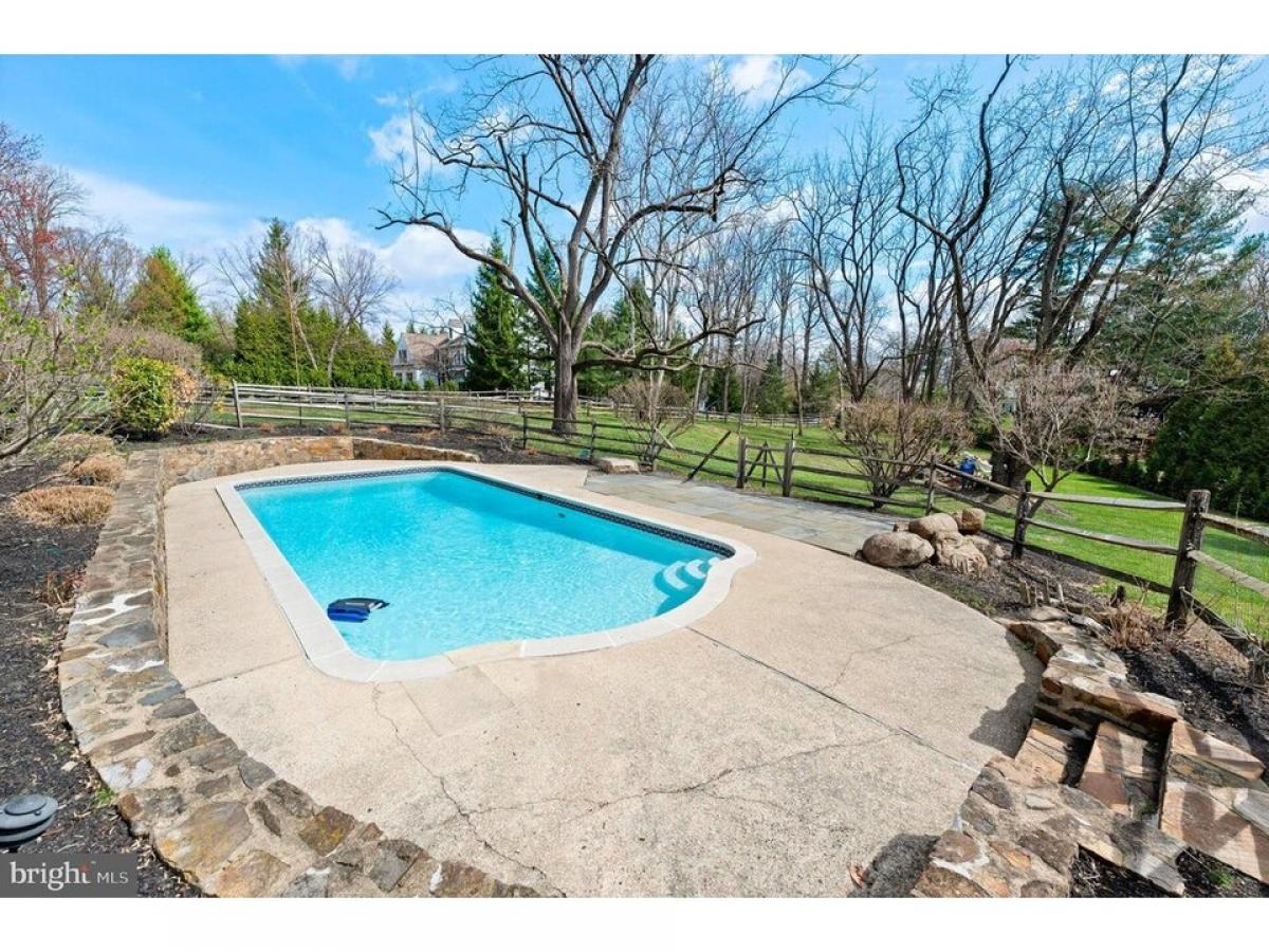Enjoy this unique opportunity to own the beautifully restored 18th-century Lewis Lewis home, set on an impressive 1.84-acre lot that features a lovely heated pool and party barn, all located within a desirable and peaceful walking neighborhood. This exquisite stone farmhouse is filled with natural light and spacious rooms designed for modern living. It includes four fireplaces, stunning restored wide-plank pine floors, original moldings, detailed millwork, and neutral plaster walls. As you enter, you are greeted by a welcoming front-to-back foyer that leads to a bright living room with deep-set windows, a fireplace, and built-in shelving. The large dining room also features a fireplace, while the timeless white kitchen is equipped with custom cabinets, quartz countertops, and high-end appliances. The adjacent family room has large windows that provide views of the meticulously maintained expansive property. Additionally, a generous mudroom includes a new laundry area and a powder room. The serene primary suite features leaded glass windows, restored pine floors, a sitting area, and a renovated white en-suite bathroom. The home also includes spacious second and third bedrooms, each with a classic white-tiled bathroom. The third floor offers ample space, with fourth and fifth bedrooms and a custom hall bathroom. Do not miss the incredible 750-square-foot party barn, complete with a vaulted beamed ceiling, a fireplace, and scenic views of the private grounds. Extensive landscaping, fencing, and full dry stone wall restoration make this oasis-like setting a true gem in Newtown Square. Conveniently located near renowned schools, golf and equestrian facilities, hiking trails, and various shopping and dining options, as well as all forms of transportation. This unique property welcomes you home!