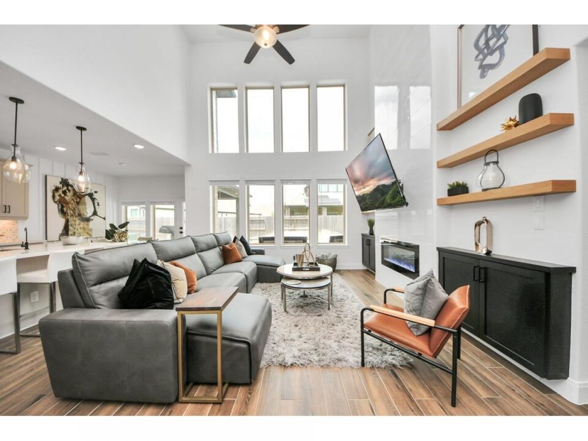 Stunning and energy-efficient 4-bed, 3.5-bath home with a 3-car garage on a quiet cul-de-sac in Fulbrook on Fulshear Creek! This spacious home features a whole-house generator, formal dining, private study, game room, and media room. Designer finishes throughout include a dramatic floor-to-ceiling fireplace, custom built-ins, accent wall designs and a gourmet quartz kitchen with high-end appliances, an oversized island, and a sleek under mount sink with pull-down faucet, reverse osmosis system, and water softener. The primary suite offers a sleek, oversized walk-in shower and a custom closet. Step outside to your private backyard retreat with a covered patio, custom spool/spa w/jets,and full outdoor kitchen with granite counter and fridge, perfect for entertaining. Foam insulation keeps energy bills low. Enjoy all the community amenities including multiple pools (within walking distance),fitness center, scenic trails, and clubhouse. This home truly has it all-schedule your tour today.