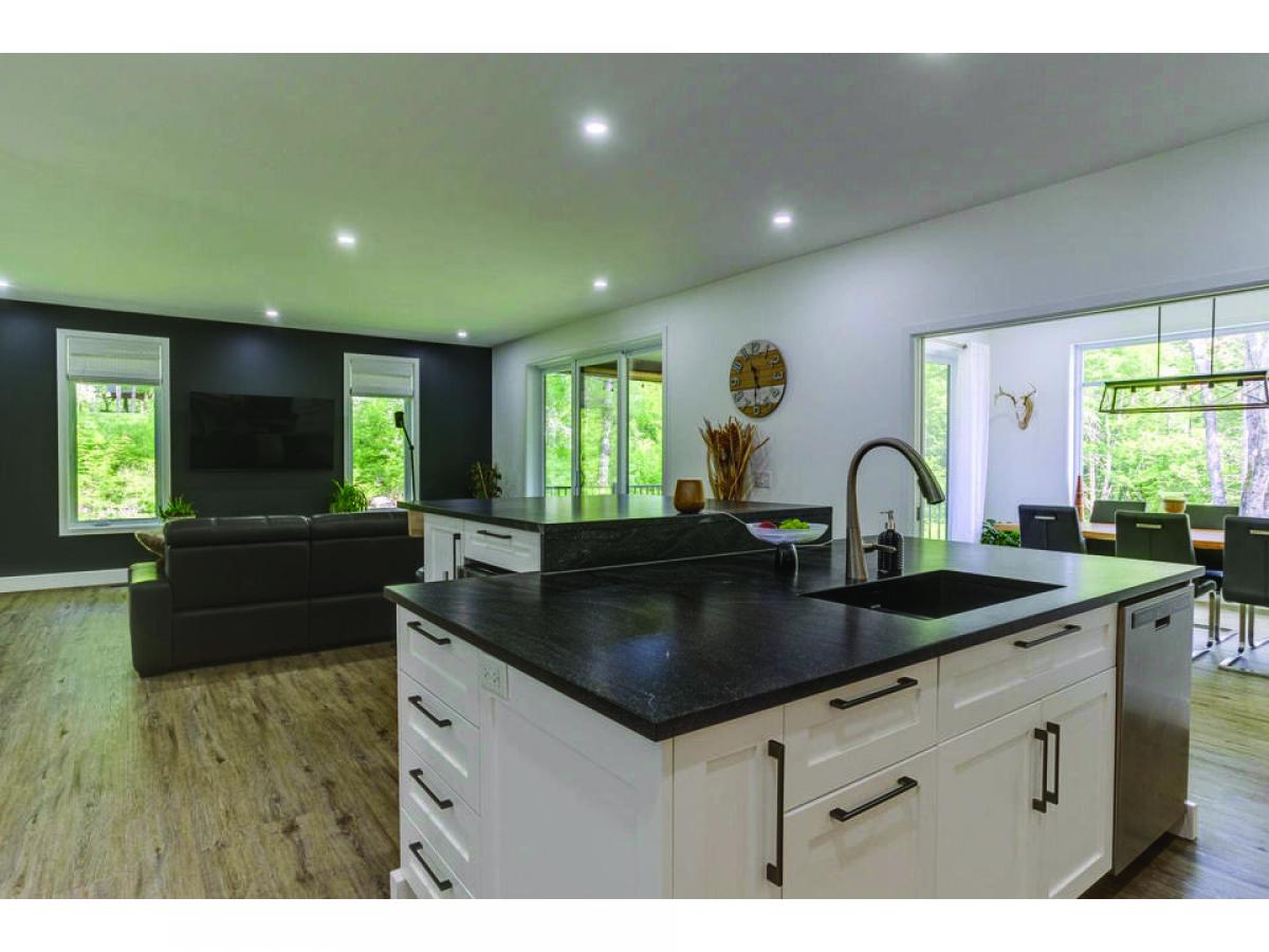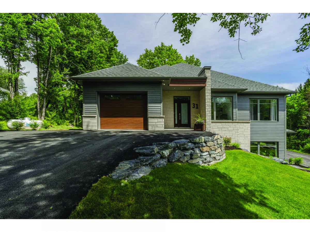 Splendid property built in 2021 on 5.6 acres, this modern bungalow offers 3 spacious bedrooms, 2.5 bathrooms, 3 garage spaces. With 9' ceilings, central heat pump, radiant floors and a permanent generator, you'll enjoy great comfort in an enchanting setting.The private street is owned by 8 co-owners, ensuring a safe, friendly environment perfect for a peaceful yet active lifestyle.This property will enable you to settle in quickly and enjoy the surrounding attractions, including Mont Orford. A true haven for nature lovers and mountain enthusiasts!