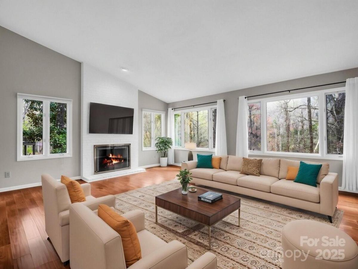 Welcome to Hunting Country Trails, a hidden gem tucked away in Tryon#039;s historic hunting country, yet only minutes drive into the charming towns of Tryon amp; Landrum. This end-unit townhouse is spacious and features a large primary bedroom suite with 2 walk-in closets and en-suite bath on the main level. There is also a guest bedroom and full bath on the main level, as well as laundry. You are sure to love the oversized living room with gas logs FP, formal dining area, lots of windows for natural light and views of the creek and lush back yard. The kitchen has a breakfast area amp; lots of storage. The lower level features 1 BR/BA, and an large den with wood-burning fireplace, (which looks like it#039;s never been used). Outside the den is a 34x8 covered patio, (could be screened in) with direct access to the inviting back yard. There is a large unfinished area in the basement with great space for hobbies, workshop and tons of storage! This secluded townhouse community is beautifully maintained.