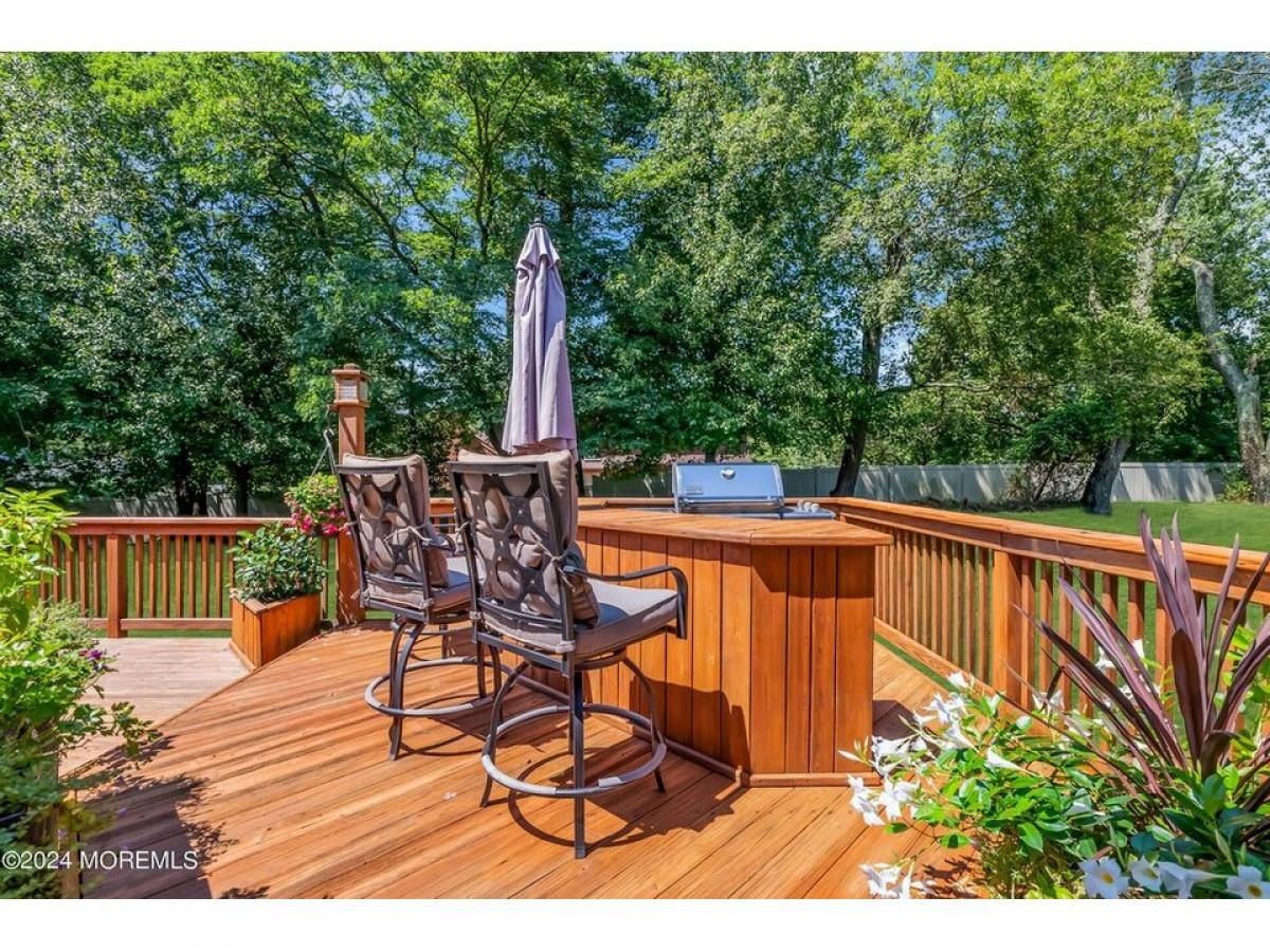 Well Maintained Large Private Property in Wayside- 5 bedroom, 3 bath, colonial that boasts pride in ownership situated on an oversized lot in highly sought after neighborhood. This property features an open flow concept from foyer flanked by den and dining room to family room and kitchen. Family room offers fireplace and natural light from skylight. Anderson windows throughout and slider off kitchen to large rear yard deck. This outdoor oasis is perfect for entertaining, complete with bar, built in planters and bench. Upstairs, you#039;ll find four generous-sized bedrooms, including a luxurious primary suite featuring a walk-in closet and an en-suite bathroom. The home is equipped with a brand new 2 zone HVAC system, Nest thermostats, and a plug-in generator that powers...