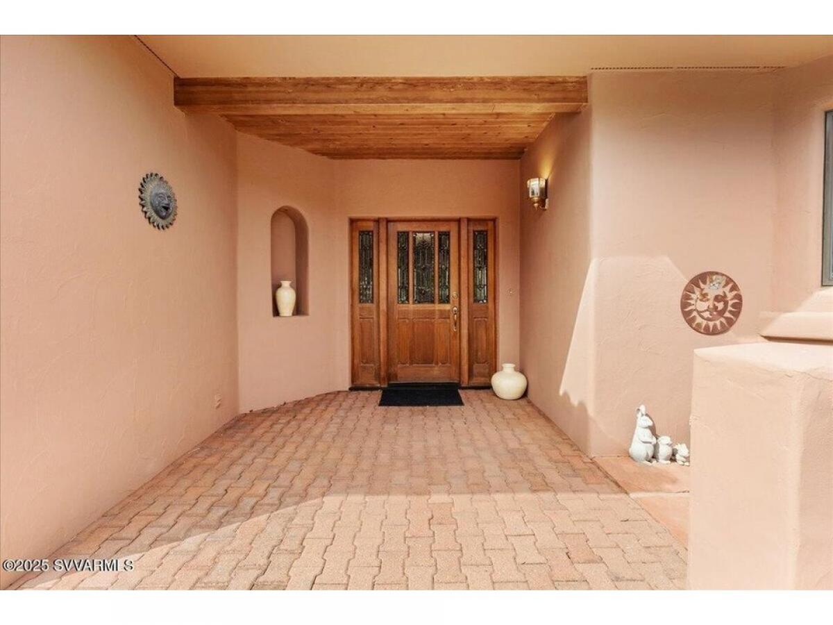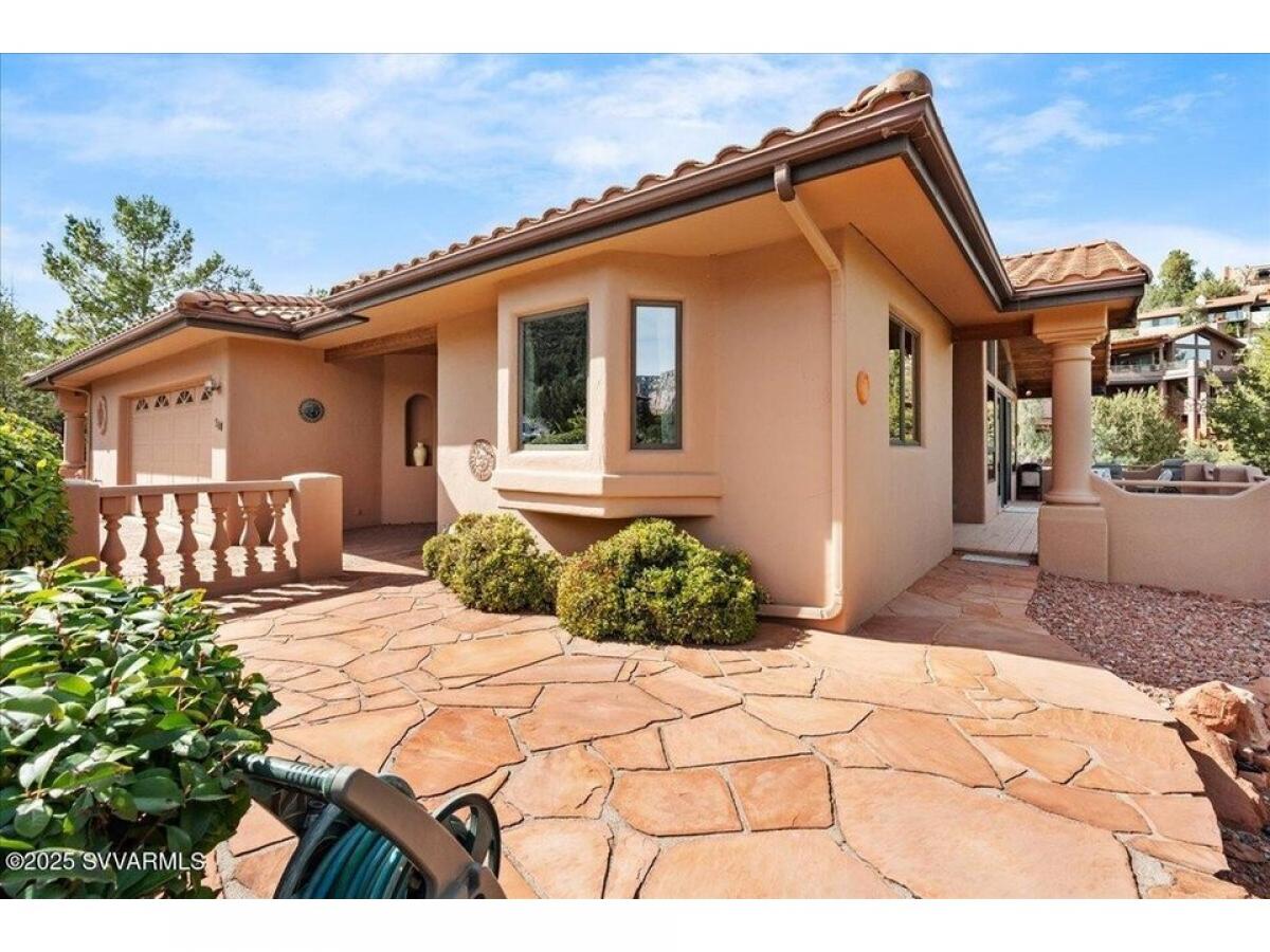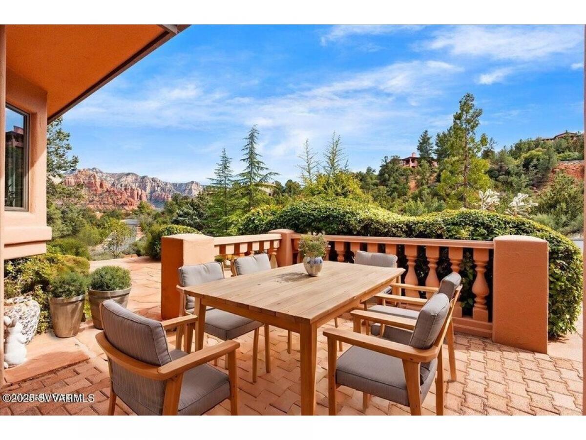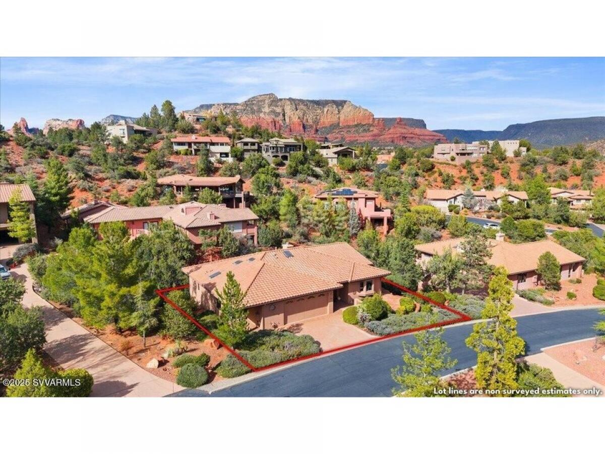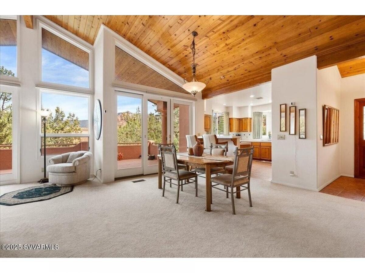 Spacious design with gorgeous vaulted ceiling and stunning red rock views from your living room, kitchen, outdoor decks amp; patios. This home is nestled within the prestigious luxury gated Les Springs community and surrounded by nature and beauty. Featuring floor-to-ceiling windows, a stunning cathedral wood ceiling, and a cozy fireplace. The great room floor plan offers a large kitchen open to the dining and living room. Bedrooms have walk-in closets. The primary suite has deck access and a spacious bathroom with a soaking tub and a separate shower. Les Springs has a community pool, pickleball courts, an exercise room, clubhouse. Dues include water, trash, landscaping, and gate maintenance.Live the Sedona lifestyle where your everyday living feels like a vacation.