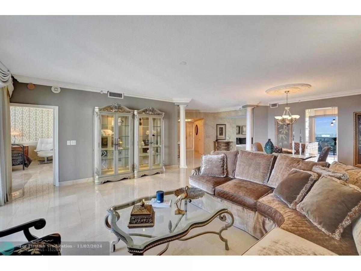 This flow-through residence offers a large open living amp; dining space with stunning direct ocean views. The primary bedroom includes a spacious bath and large walk-in closet. A second bedroom also ensuite has Intracoastal and city views. The open den can easily be converted to a 3rd bedroom. Other features include a powder room, marble floors, 9#039; ceilings and 2 expansive balconies. Nicely furnished and move-in ready or perfect to update and add your own personal touches. L#039;Hermitage sits on 10 acres of direct oceanfront with gated security, 24/7 manned lobby, a concierge amp; valet services. Two tennis courts, 2 pools, poolside cafe, fitness center, outdoor grills, and beach cabanas. Walking distance to an array of shops, restaurants, stores, banks, pharmacies amp; more!
