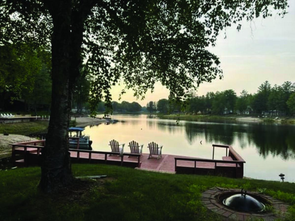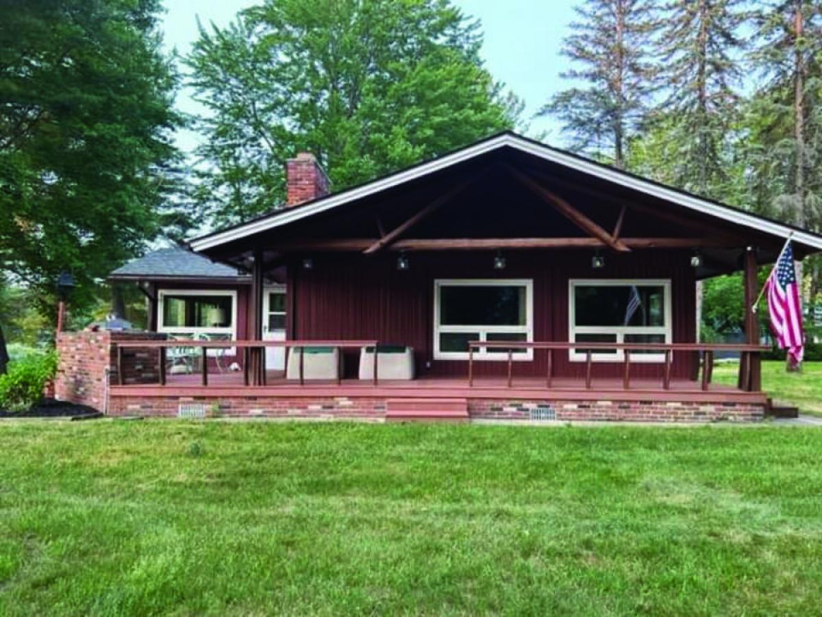 Lake front home features over 200' of frontage and 2 wooded lots. Approximately 1600 sf, 3 bedrooms, 1 full bath with additional living space above 2 1/2 car detached garage with bedroom, bath in apartment like suite. 2 docks, and private boat launch on point with unparalleled views of the lake. $409,900.