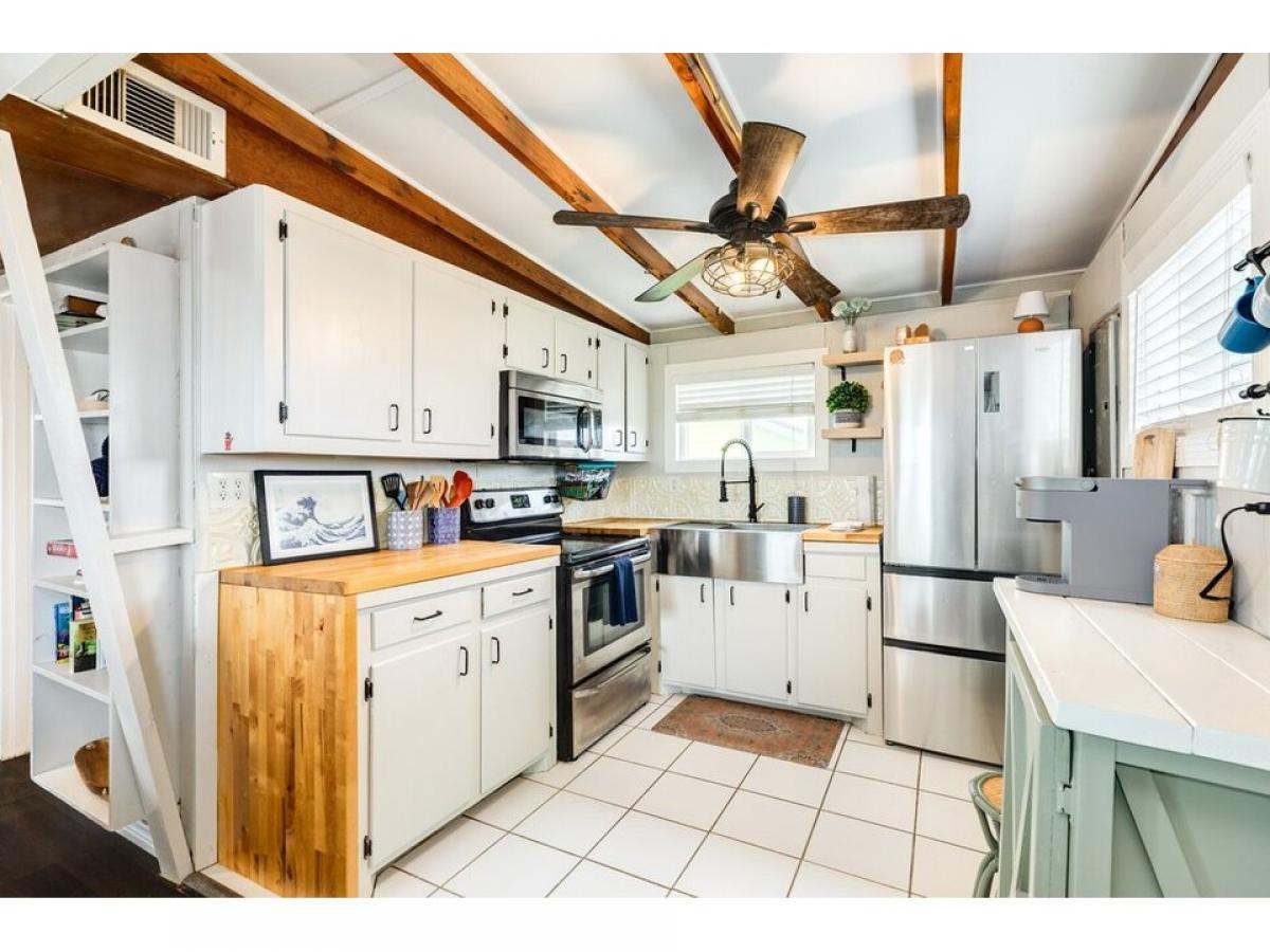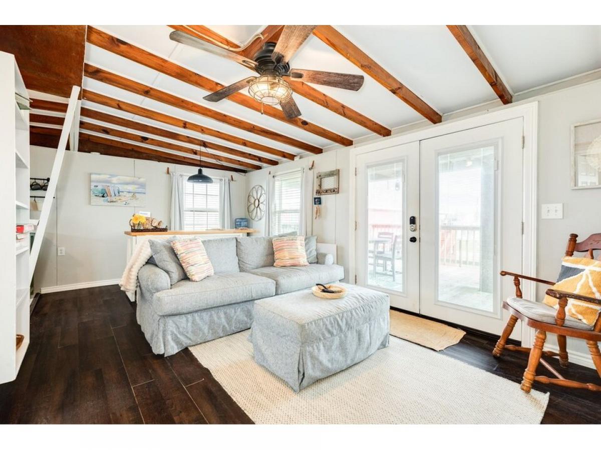 This cute cottage is just steps away from the Gulf and provides for all of your beach vacation needs or wants. It has a partially covered deck with a quick view of the ocean along with a firepit and bbq grill to make your entertaining carefree. An open concept living area with an eat in bar allows room for tv watching and game playing. Did I mention there is a full-size washer/dryer complete with 2 spacious bedrooms along with a step in shower to rinse off the sand. The complete kitchen has a farmer#039;s sink, new refrigerator, microwave and stove if you are wanting to take advantage of eating in. Outside there is space underneath for more grilling or just enjoying the sea breeze. Two storage areas make it easy to keep your beach equipment organized and ready for your next visit. A small fenced in area for your furry friends and a foot washer and outdoor shower to keep the sand downstairs complete the amenities downstairs. Just a quick trip from Houston and this home can be yours