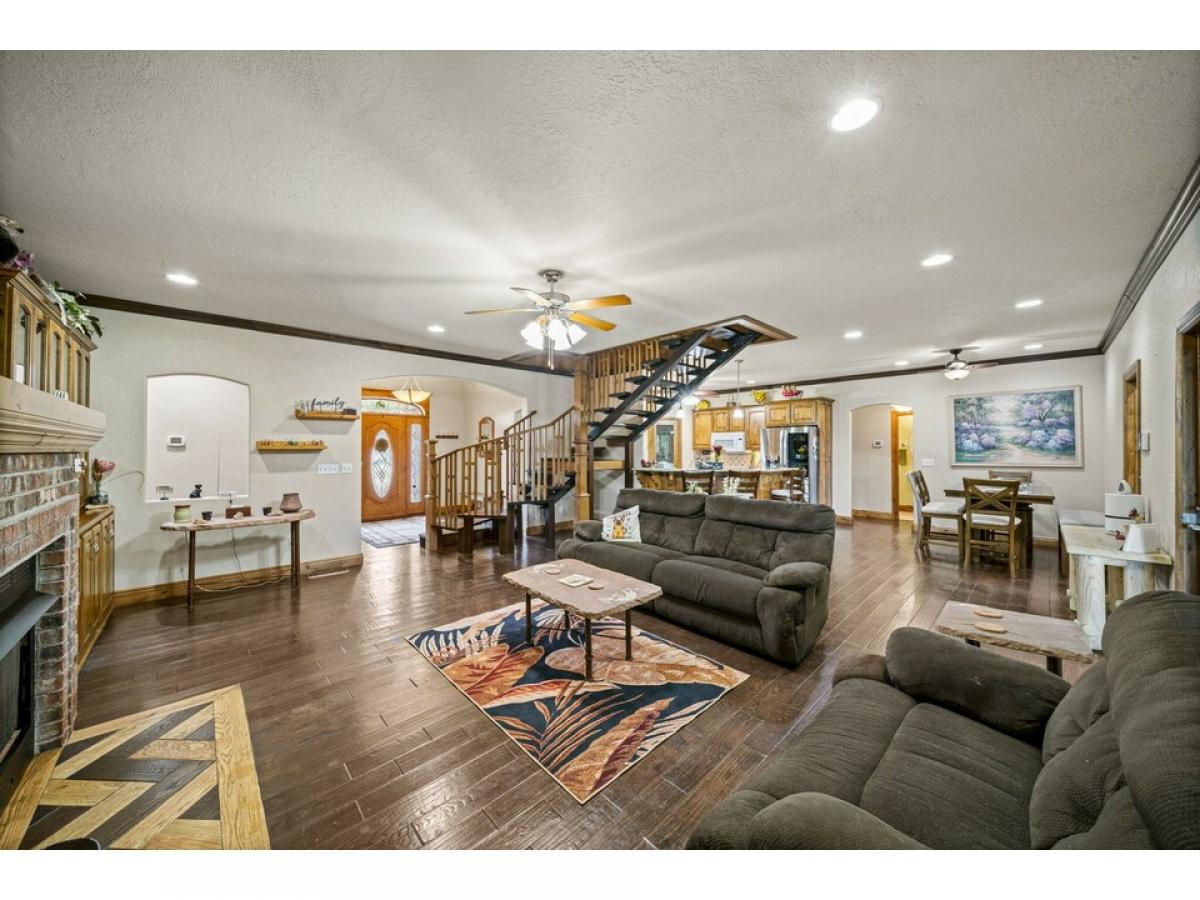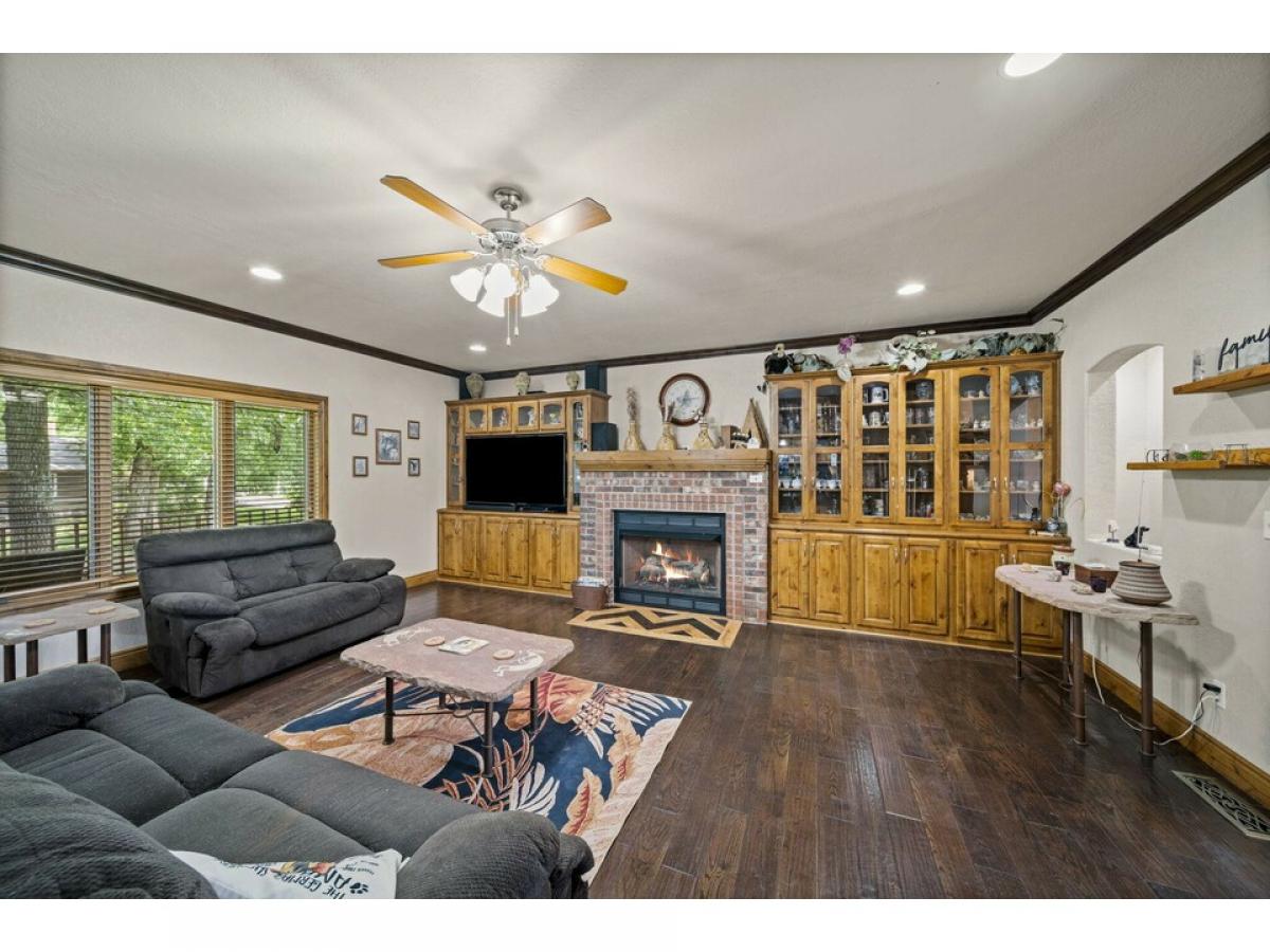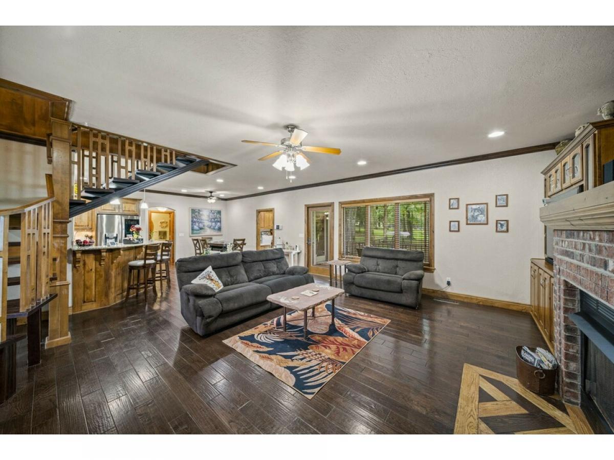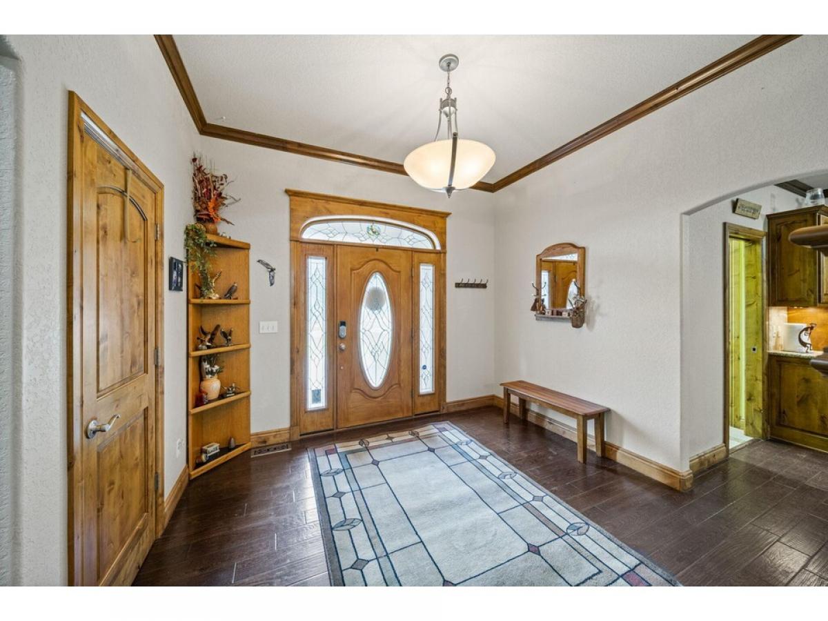 Situated on a large corner lot in Buffalo Shores South, this stunning home offers 3 bedrooms, 2.5 bathrooms, an office, & a spacious upstairs bonus room. The split floor plan features hardwood floors throughout, with carpet in one bedroom. The primary bedroom includes an ensuite bathroom with a custom tile shower, a jacuzzi, & a walk in closet. The kitchen features granite countertops, soft-close cabinets & drawers, double ovens, & bar seating, with a dining area nearby. Additional features include an instant hot water system, central vac, & an intercom system. The property also features a circle drive, a 3-car garage with a storm shelter, & RV hookups. The fenced backyard, covered deck, & climate controlled workshop in the basement add to its appeal. Optional HOA! Call today!