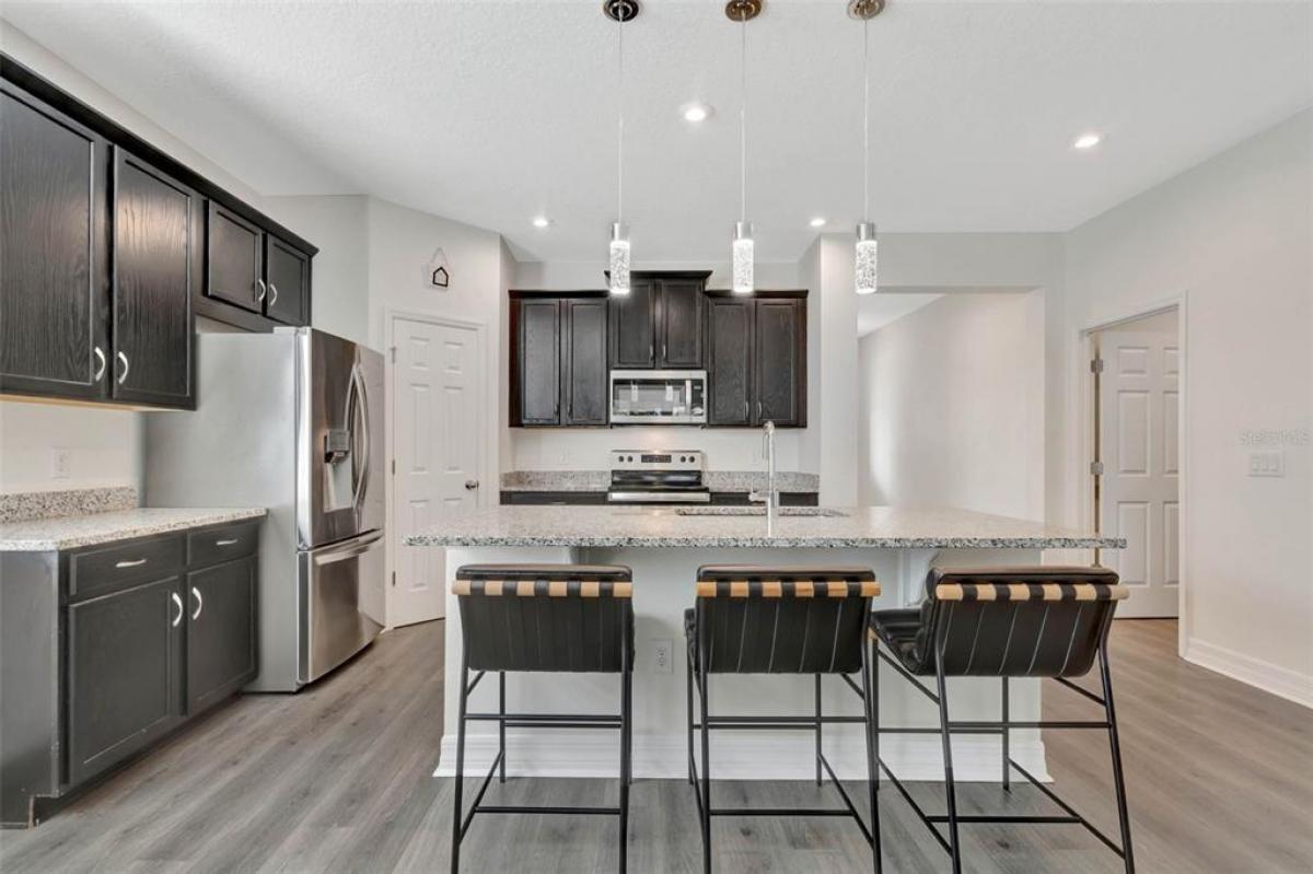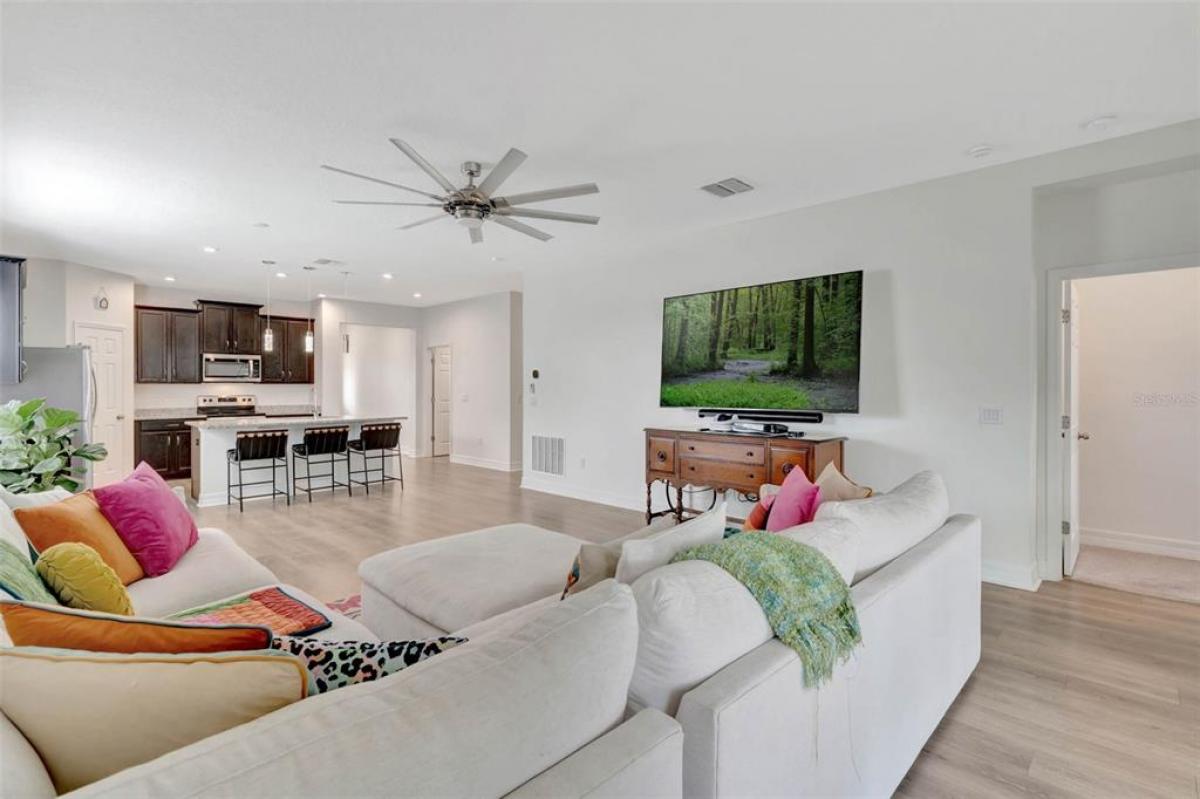 Location, location, location! This move in ready, light and bright home is located in the highly sought after gated Waterbrooke community, steps from the community amenities and with easy access to the Turnpike. It doesn't get better than this. This charming home features convenient one level open concept living with 3 bedrooms, 2 bathrooms and a flex/bonus space that can be a home office/den/living room/play room, or anything your lifestyle desires. The primary suite has an oversized closet with custom closet system as well as a second closet. The great room and dining room are open to the gourmet kitchen with center island, granite counters, stainless steel appliances and walk in pantry with custom closet systems. The great room opens to the covered, screened patio area with pavers and looks onto the expansive, fenced back yard that is perfect for outdoor activities. The yard is oversized with room for pool and still have plenty of play space. The home sits on a corner lot allowing for the extra size as well as privacy. Inside laundry room with custom mud area shelving. The home sits steps from the community resort style amenities that include a pool, clubhouse, gym, playground, dog park, walking trails and lake. Easy access to the Turnpike, 429, downtown Clermont, downtown Winter Garden, downtown Orlando, hospitals, shops, restaurants and the attractions. Come see this immaculate home - why wait to build when you can have it today!
