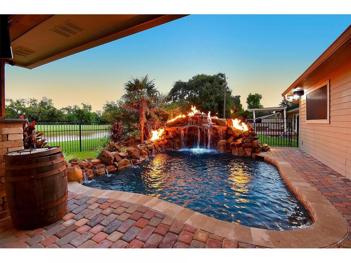 LUXURY CUSTOM RANCH STYLE HOME ON GOLF COURSE LAKE W/BACKYARD OASIS! Serene view of lake w/water spray! No expense spared! Better than new construction. 3 BDRMS/3.5 Baths/Gameroom/2 Car Oversized Garage w/epoxy floor cabinets! Whole house water filtration! Heated/CHILLED Pool w/waterfall lava rock fire feature! Large covr'd patio w/cedar ceiling, Paver decking wraps around house, Pergola w/wood benches, auto-outdoor lights front back w/Sprklr Sys+Sonos sound POOL BATH w/teakwood cabinets! Stamped concrete drive, ALL windows DBL pane Low E, ROOF (2022), Leaf filter Gutters, PEX Pipes, 400 AMP service, LED lights, ceiling fans, solar screens, attic floored! Stacked stone walls, Knotty wood doors, cedar closets! Living w/vaulted ceiling, fireplace view of golf course! Kitchen ALL baths 100% renovated w/custom cabinets, granite, fixtures, tile, commodes, glass doors! Hardwood floors! Vivint alarm system! Must see feature sheet video tour! Never flooded! LOW taxes/HOA dues!