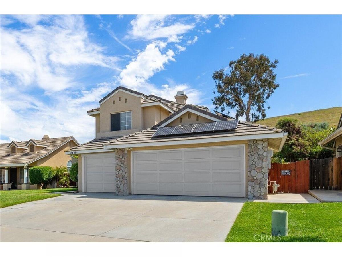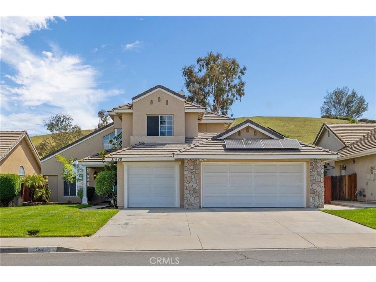 Welcome to this beautifully appointed 2-story home in Menifee, California. This spacious residence features 4 bedrooms and 3 bathrooms, providing ample space for family living. With a generous 3-car garage, parking and storage will never be an issue. Step inside to find a formal living room and dining room that create an inviting atmosphere for gatherings. The updated kitchen is a highlight, offering modern amenities to inspire your culinary adventures. For added convenience, there#039;s a laundry room located downstairs. The outdoor space is a true gem, featuring a large patio cover and a deck off the master bedroom, perfect for relaxing or entertaining. Enjoy the beauty of your backyard with multiple fruit trees and the added benefit of no rear neighbors, ensuring your privacy. The wide streets contribute to the spacious feel of the neighborhood. Stay comfortable throughout the year with a newer AC unit. This home is a perfect blend of comfort and style, ready for you to create lasting memories.