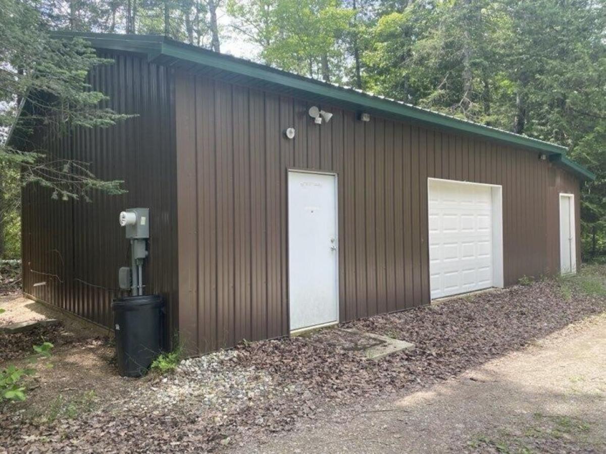 Nestled on a serene, wooded five-acre parcel, this property offers a charming two-bedroom cabin that exudes rustic charm and modern comfort. Accompanied by a spacious 28x24 foot pole barn with a 7x20 addition, which is fully insulated, equipped with water, electricity, and features both heating and air conditioning, this property is perfect for year-round use and versatile for various needs. Additionally, two sheds provide ample storage for outdoor equipment and tools. The lush, forested surroundings create a tranquil retreat, making it an ideal spot for nature lovers and those seeking a peaceful escape from the hustle and bustle of everyday life.Room measurements are approximate and buyer will need to verify dimensions.