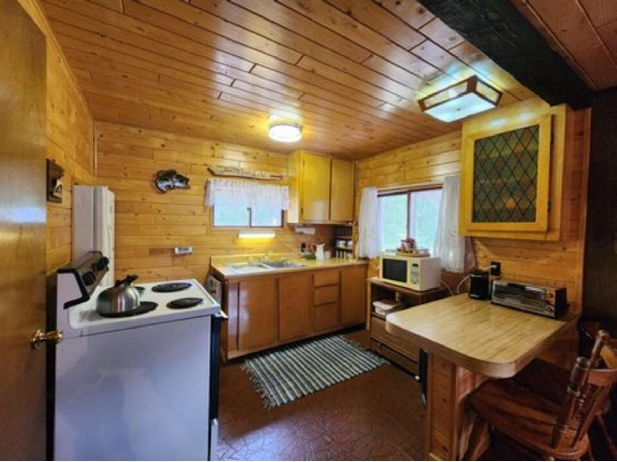 Saddleback Lake Frontage. 2-Bedroom, 1-bath cabin with a cedar tongue-and-groove ceiling, wood stove, and washer/dryer hookups. Several outbuildings, including a 24x32 pole barn with electric and concrete floors. Mostly wooded parcel. Comes furnished, including a flat-bottom boat and lawn mower. Located in a rural area just north of Comins.