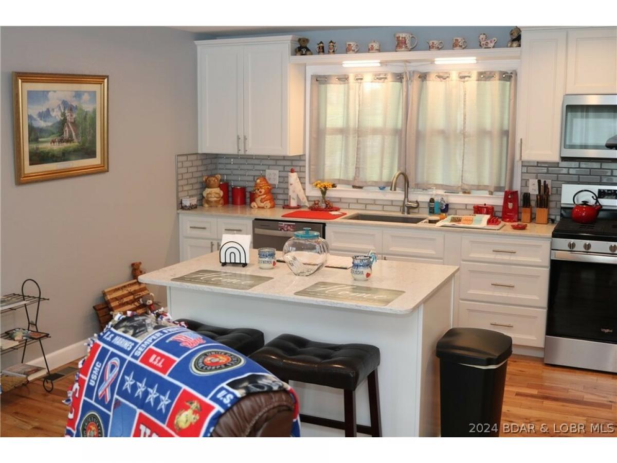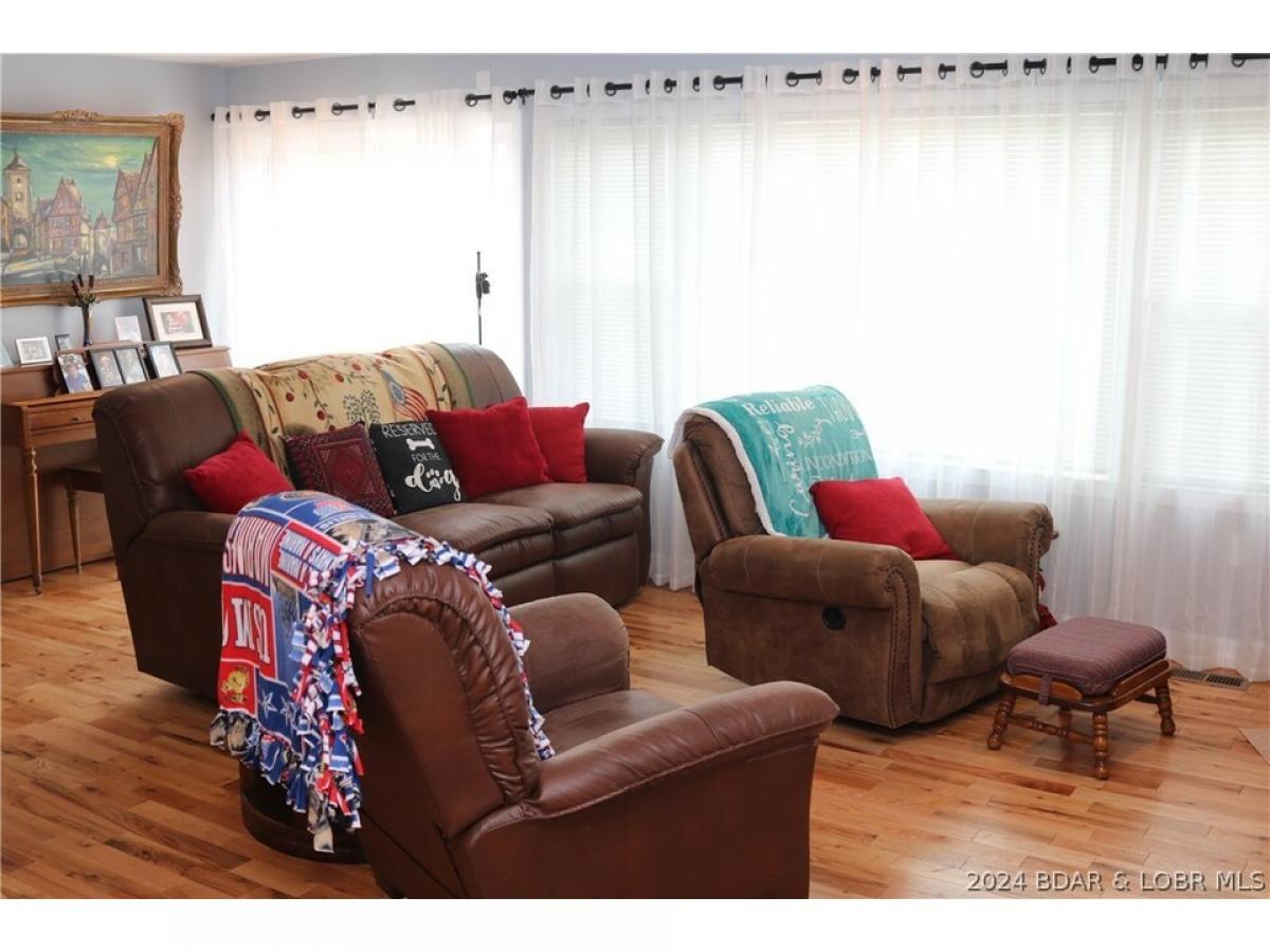 Welcome to the Iconic gated community of Tony's point on the coveted Gravois arm. Enjoy all living on the entry level of this beautifully updated lake view home. Drop dead gorgeous hardwood floors, granite counters, stainless appliances with gas stove. Generous master suite with walk in closet and grand walk in shower. Plenty of space on the lower level for family and friends to spread out. Laundry hookups on both levels. Enjoy outdoor entertaining on the new deck and patio overlooking the panoramic lake views. Also a very nice covered porch roadside for relaxing and visiting. Pretty much every inch of this home as been redone inside and outside to bring years of care free living. Large 30x36 oversized garage/workshop with concrete floor. This community comes with 2 extra special lake easements, one with fishing dock for community members and then the world famous Tonys point with private boat ramp for community members. All mint condition black top roads in the community and State highway O to the gate for easy access. Central sewer and water round out this exceptional package with premium location. The boat can be thrown in with an acceptable offer to the seller.