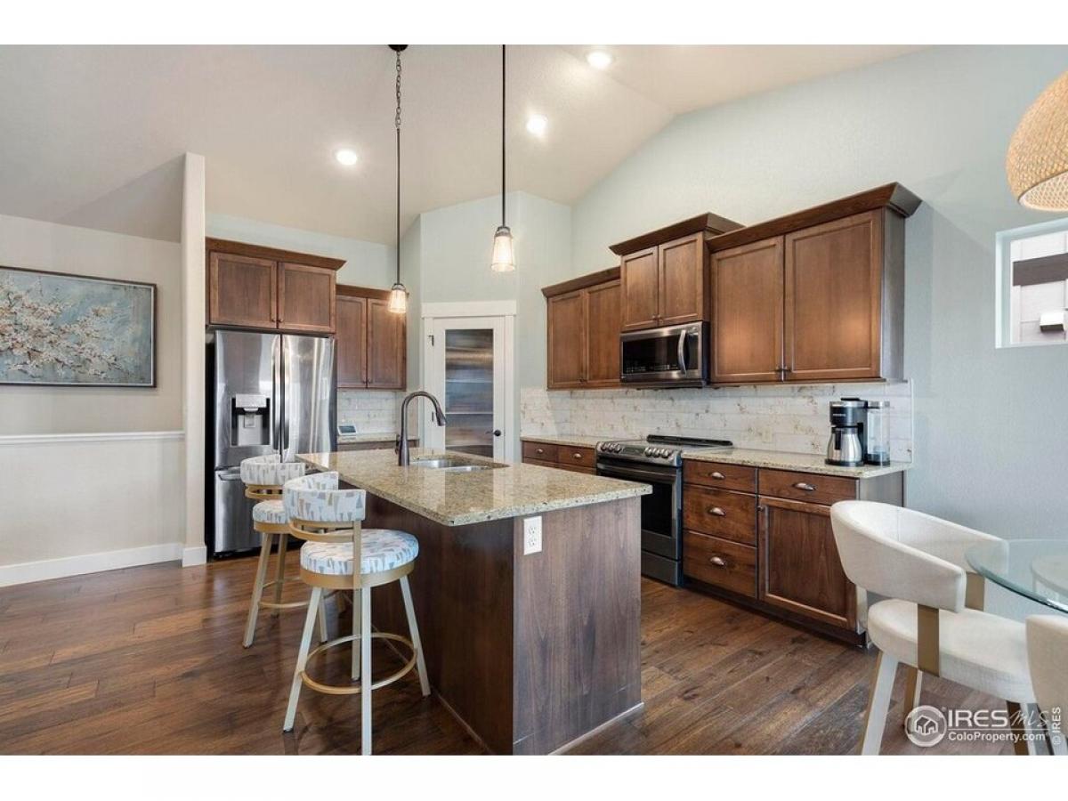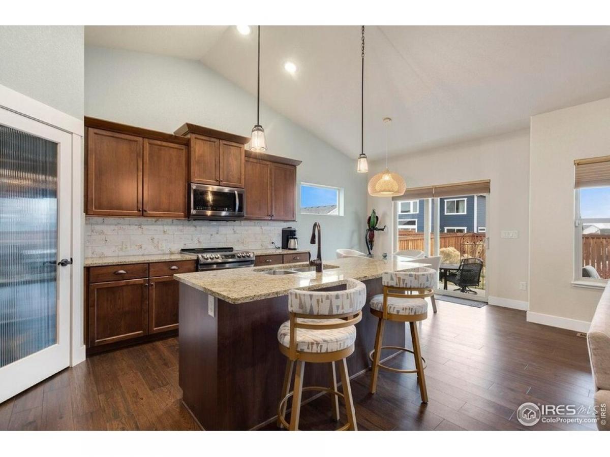 Beautiful 3-bedroom, 2.5-bath ranch-style home featuring a spacious, insulated 3-car garage, a full unfinished basement, and a large covered back patio. The professionally landscaped and fenced backyard adds to its charm. Less than four years old and in excellent condition inside and out. Situated on a great lot in a quiet neighborhood with a west-facing driveway. Fantastic floor plan with a spacious open kitchen and great room, vaulted ceilings, an island, and a pantry. Loaded with high-quality options and upgrades! Includes radon mitigation, an induction oven, smart home technology, a security system, and a refrigerator. Also features a gas line to the covered patio for grilling and upgraded shingles for potential insurance savings. Located in a wonderful neighborhood with no metro district, low HOA dues, and non-potable irrigation water included. This home is priced competitively and move-in ready. A quality-built Stillwater Ranch plan by Sage Homes. Home was completed in September of 2021.