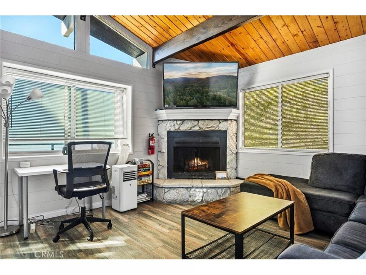 Turnkey refuge perched above the clouds in the heart of Running Springs. Seller has recently painted exterior and redone all decks to composite for low maintenance, making this a complete turn key package, whether you are looking for a part time getaway or a full time retreat. Walk in to a large mudroom with washer and dryer and primary bedroom leading to remodeled primary bathroom. Up the stairs you will find the open living area with a fireplace, vaulted ceilings, and sweeping views of twinkling city lights at night and gripping views of the mountain and valley landscape by day. Remodeled kitchen with a side deck in a wooded setting as well. Located minutes from snow valley mountain resort, downtown running springs, and sky park santas village. If you are looking for something recently updated and remodeled and with a view, look no further!