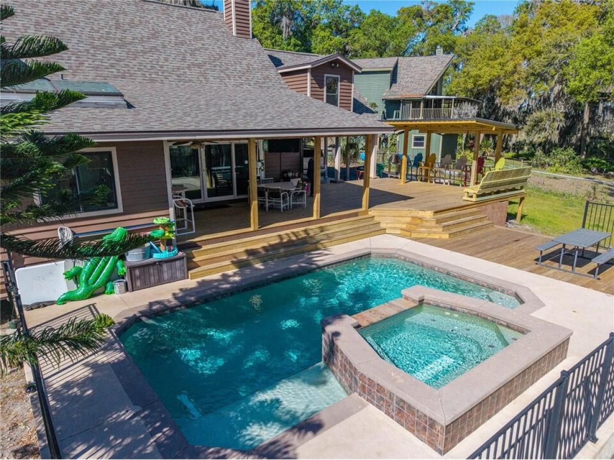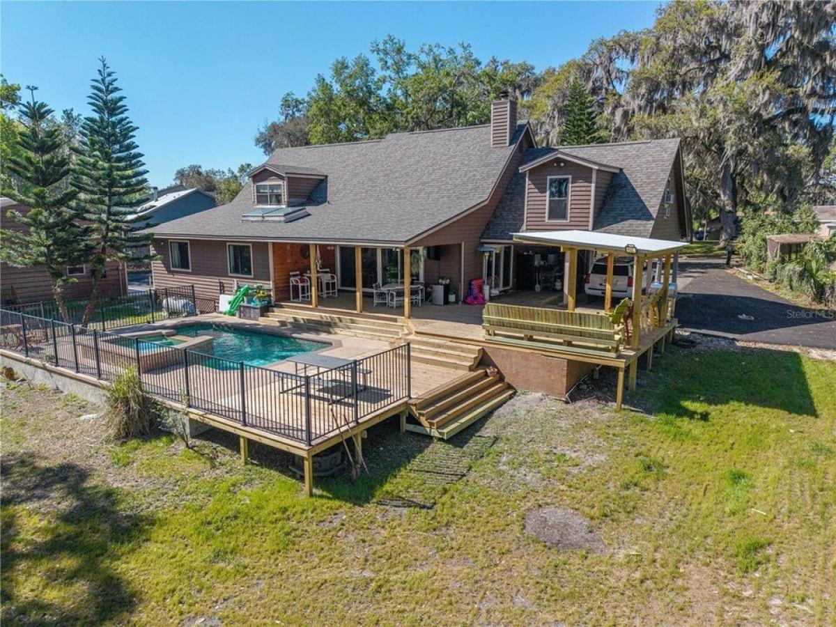 One or more photo(s) has been virtually staged. This stunning 4-bedroom, 2.5-bathroom lakefront home offers the perfect blend of luxury, comfort, and functionality. Nestled on a privately maintained road, this property provides both seclusion and breathtaking lake views. Step into the home and notice the vaulted ceilings and heavy wood beams, the expansive kitchen and counter space all perfect for hosting guests or everyday living. The home features fresh interior paint, beautifully updated bathrooms, and modern flooring throughout, creating a bright and inviting atmosphere. The spacious master suite includes a private office with a skylight, allowing natural light to pour in while offering serene lake viewsmdash;an ideal space for remote work or quiet relaxation. Step outside to your backyard oasis, where a sparkling pool and hot tub with a tranquil waterfall overlooks the lake, the expansive decking makes it the perfect place to unwind or entertain. For those in need of ample storage and parking, this home includes a two-car attached garage, a three-car detached garage, a shed, and a carport, providing room for vehicles, tools, and recreational equipment. With its thoughtful upgrades, stunning surroundings, and prime location, this property is a rare gem that combines elegance with everyday practicality. Donrsquo;t miss your chance to experience lakefront living at its finest. Roof 2023, some windows replaced 2022, 28x40 detached metal building 2018, 26x32 pool 2015.