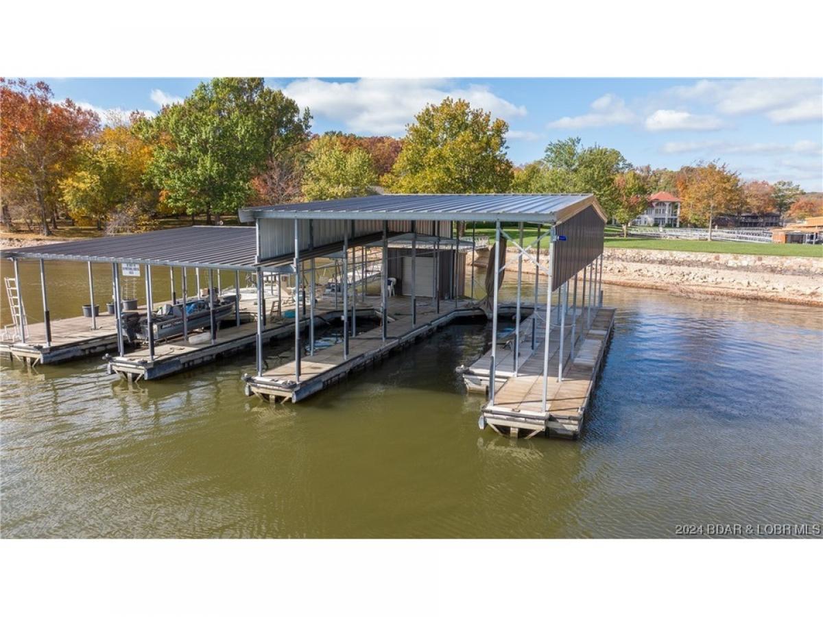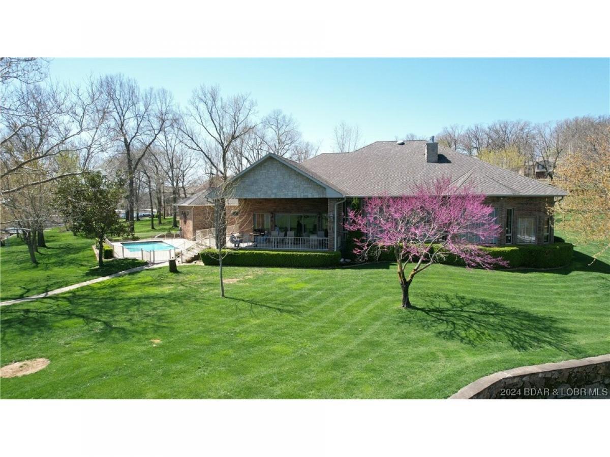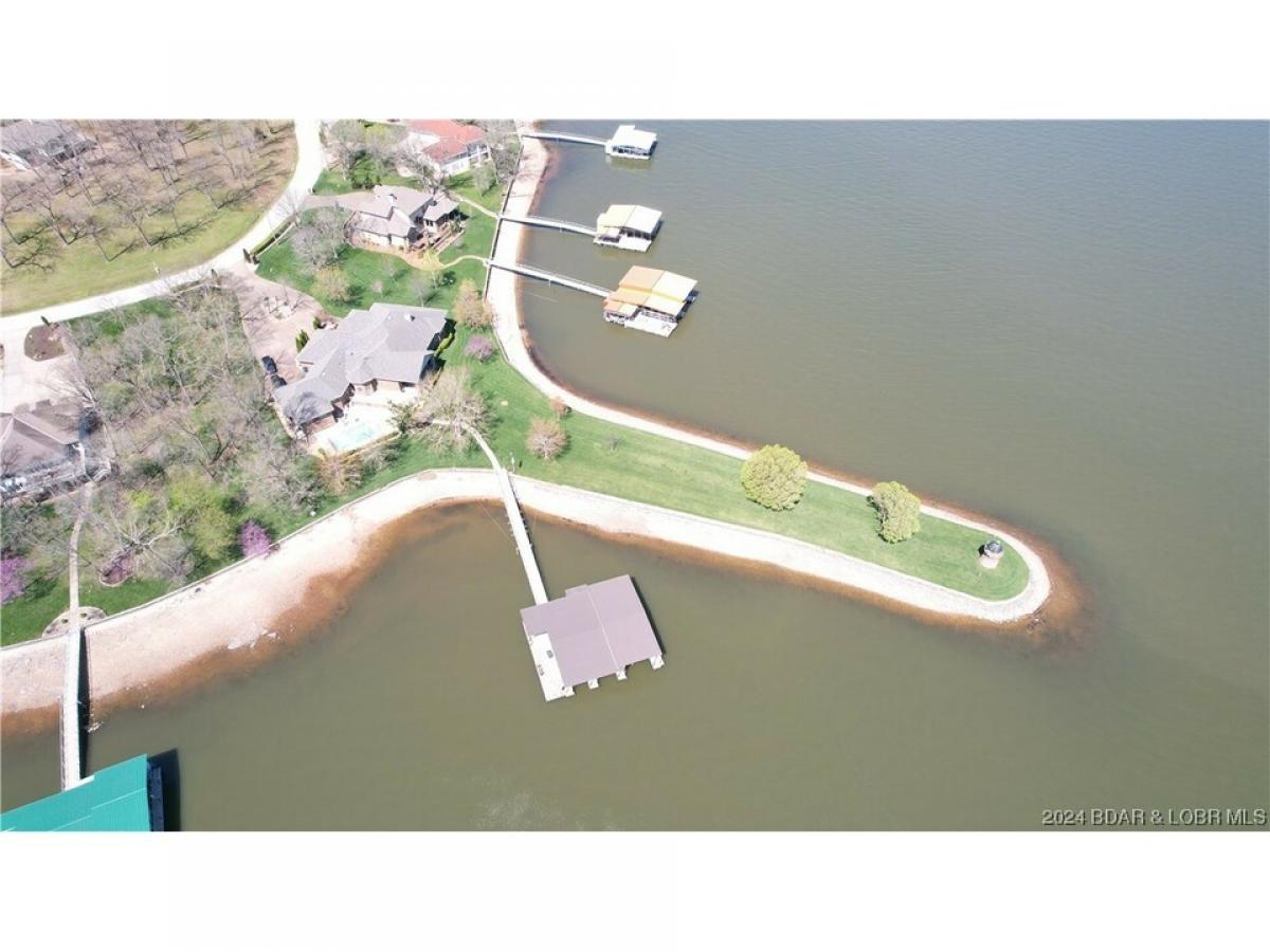 Iconic Light House estate at Porter Mill Bend Estates with over 900+ feet of Lakefront, a 3 well dock, in ground pool, expansive level lot & a 5000+ sq ft estate, all on one level with 4+ car attached garage! This brick home was the developers personal estate & every detailed was covered. Besides the perfect setting, you will love the size of every room, featuring custom amish handcrafted doors throughout, a great room for large parties showcasing your art collection, open floor plan into the full bar area & dining room to living room & customized kitchen with two large islands, butler's pantry & breakfest nook. All tile floors are heated & high end sub zero appliances, dual wall oven & so much more. The Primary suite has a gas fireplace, his closet or office & her walk in closet with a tiled shower for two! Guests will enjoy two private en-suites & can easily convert the large office into a 4th bedroom. Can't beat the views, lighthouse lot, all the upgrades & the craftsmanship! This Estate has over an acre of almost perfectly flat ground, unparralleled views of the lake with a great protection for your large cruiser dock & have a blast blowing the Air Horn at boaters.