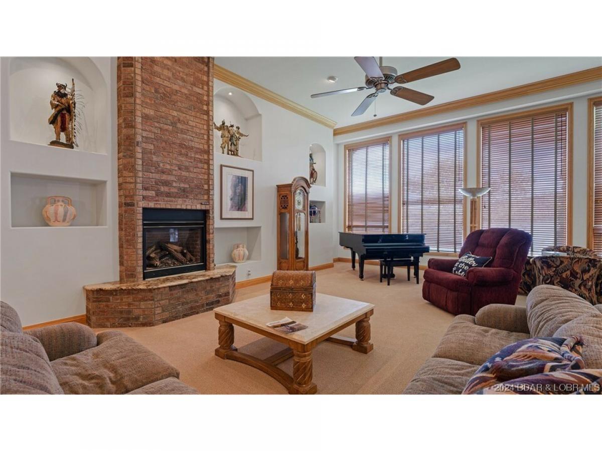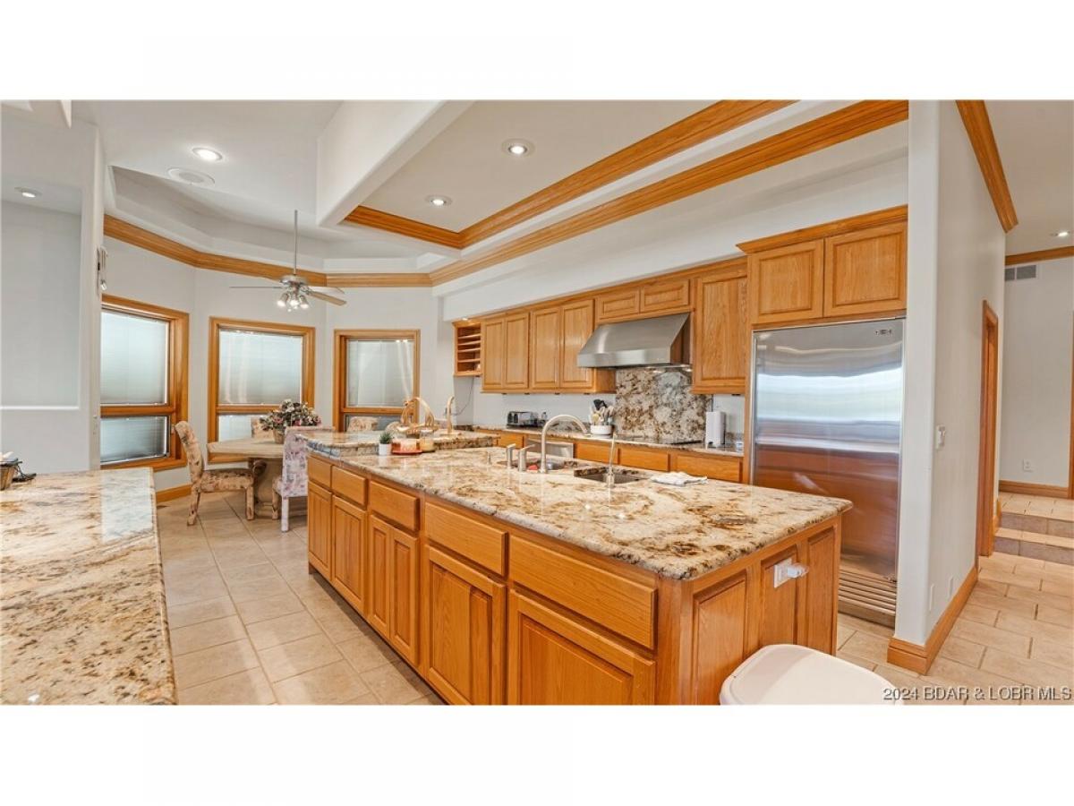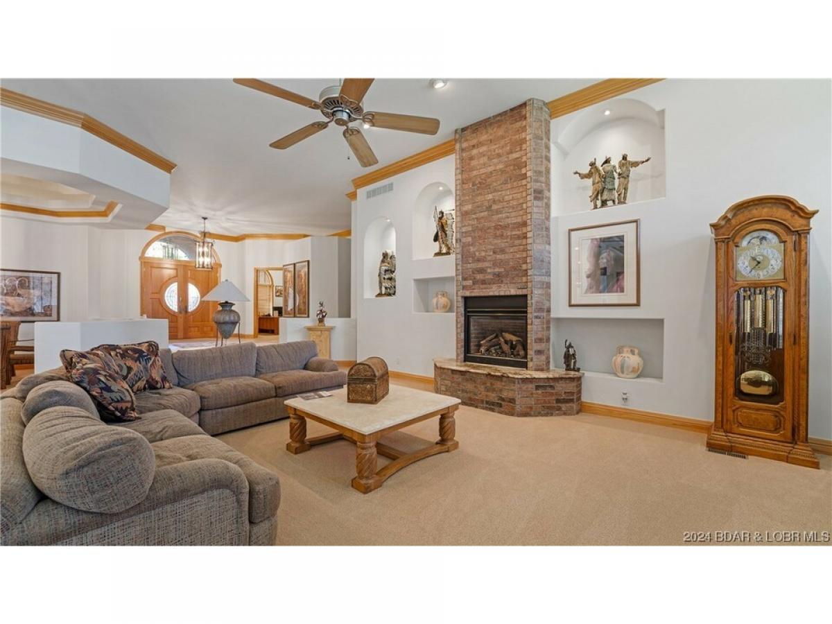 Iconic Light House estate at Porter Mill Bend Estates with over 900+ feet of Lakefront, a 3 well dock, in ground pool, expansive level lot & a 5000+ sq ft estate, all on one level with 4+ car attached garage! This brick home was the developers personal estate & every detailed was covered. Besides the perfect setting, you will love the size of every room, featuring custom amish handcrafted doors throughout, a great room for large parties showcasing your art collection, open floor plan into the full bar area & dining room to living room & customized kitchen with two large islands, butler's pantry & breakfest nook. All tile floors are heated & high end sub zero appliances, dual wall oven & so much more. The Primary suite has a gas fireplace, his closet or office & her walk in closet with a tiled shower for two! Guests will enjoy two private en-suites & can easily convert the large office into a 4th bedroom. Can't beat the views, lighthouse lot, all the upgrades & the craftsmanship! This Estate has over an acre of almost perfectly flat ground, unparralleled views of the lake with a great protection for your large cruiser dock & have a blast blowing the Air Horn at boaters.