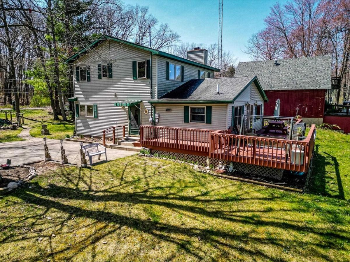 Discover the perfect retreat at this charming waterfront home nestled on the shores of the picturesque all sports Little Long Lake. Enjoy year-round bliss in this spacious residence offering over 1700 square feet of living space, thoughtfully designed for both comfort and entertaining. This two-story home boasts a welcoming ambiance with its open living areas and cozy fireplace, ideal for gathering with family and friends. With four bedrooms and two bathrooms spread across its floors, there's ample room for everyone to relax and unwind. Each floor features generous closet space, ensuring storage is never an issue. Outside, the property is complete with a 28x20 garage, a large deck perfect for enjoying the lake views, an aluminum dock for easy water access, and parking for up to 4 vehicles. Little Long Lake, spanning 43 acres, offers depths of up to 50 feet, ensuring plenty of opportunities for playing in the water, whether you're just looking to swim at the shore, take out the boat, pull the kids on tubes, or have a day of fishing, including a stock of trout for fishing enthusiasts. Whether you're lounging in the inviting family room overlooking the serene water or exploring the pristine lake, this home promises a lifestyle of tranquility and recreation amidst a beautiful natural setting. Don't miss your chance to make this waterfront oasis your own!